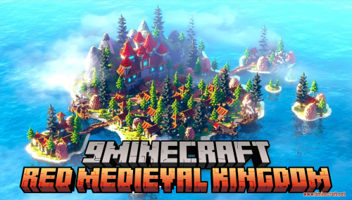 Red Medieval Kingdom Map (1.21.10, 1.20.1) invites you to explore a grand island realm rising from the ocean mist. Featuring a magnificent castle, bustling villages, tall towers, and a lively…