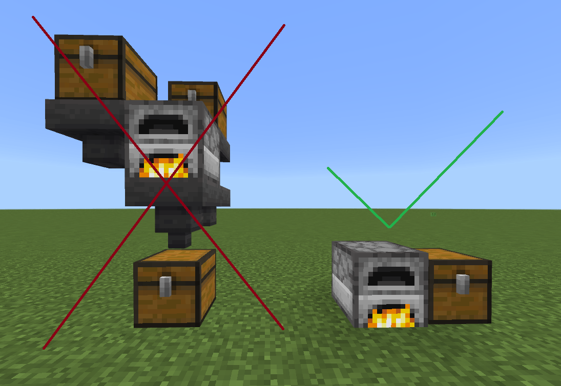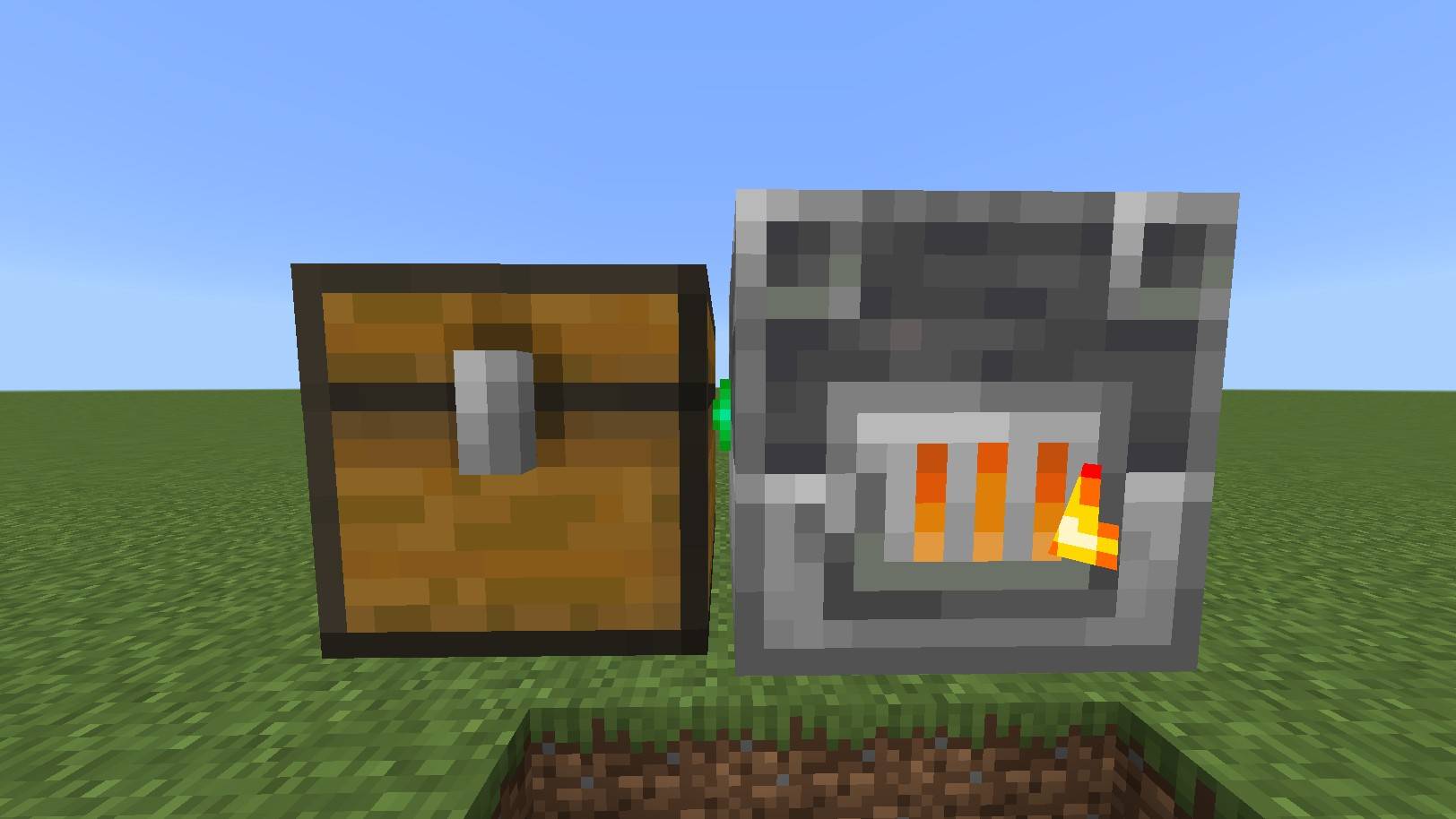 TC Simple Furnace Addon (26.1, 1.21) allows furnaces to automatically link with surrounding chests or containers to retrieve cooking materials, add coal, and eject finished products. This process occurs on all six sides of the furnace and does not require redstone. When the furnace is placed, the system will search for adjacent containers to begin working. The connection lines between blocks are clearly displayed through visual effects.