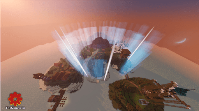 TEF Battle Royale Map (1.21) is a battle map on the Bedrock console. Players jump from planes onto islands to collect weapons from the Aplok Guns map. The playing area shrinks every minute to force players to meet each other. There are two crates containing dropped items during the match. The last player standing receives a victory notification effect.