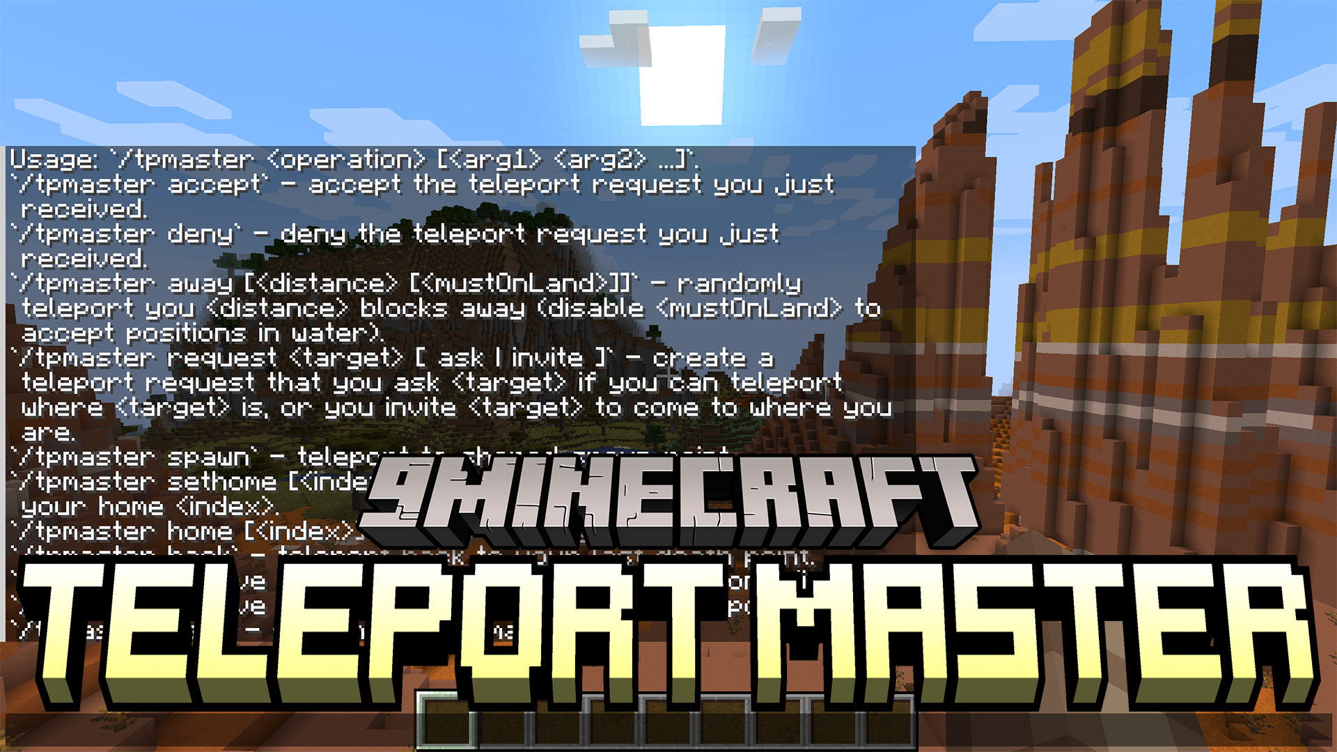 - The mod allows players to send teleport requests to others or invite them to their location with the command tpmaster request <target> [ask|invite]. The recipient can choose to accept with tpmaster accept or deny with tpmaster deny.
