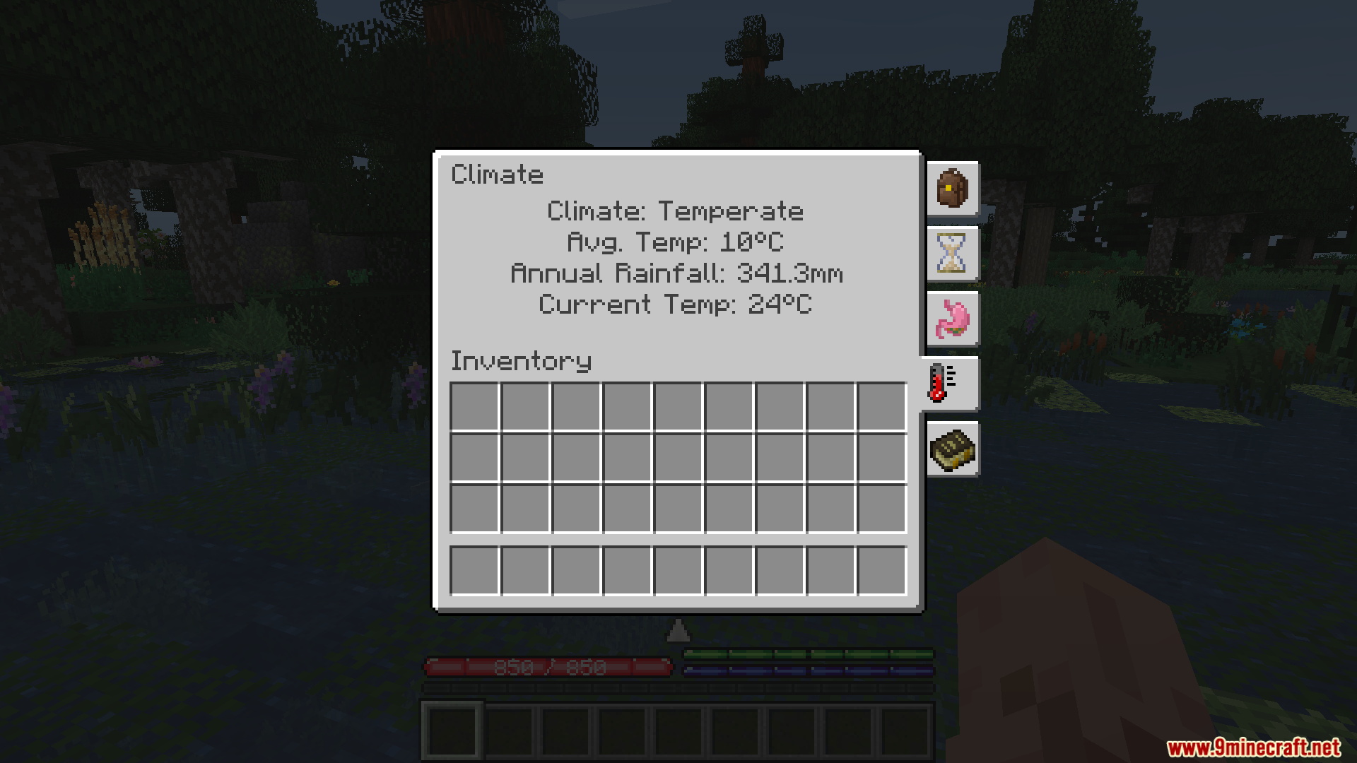 - Potency System: Every modifier (block, item, biome) has a heat value and potency, affecting how quickly it changes your body temperature.