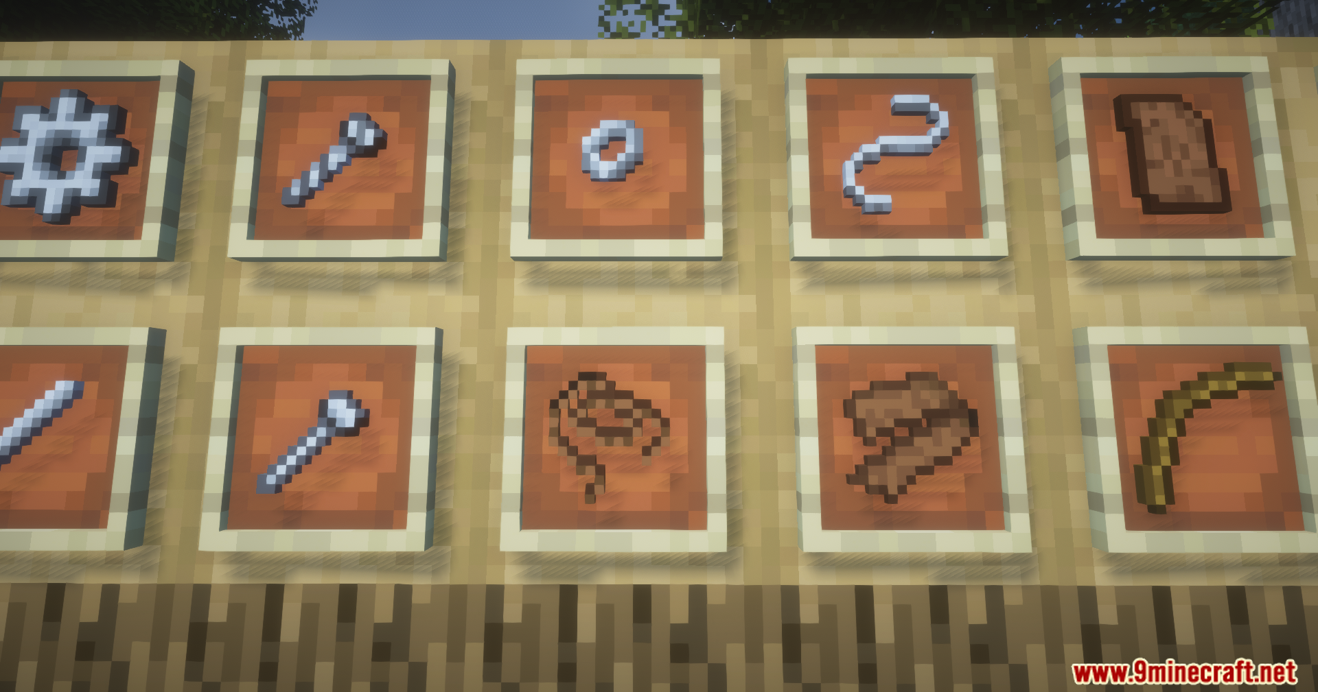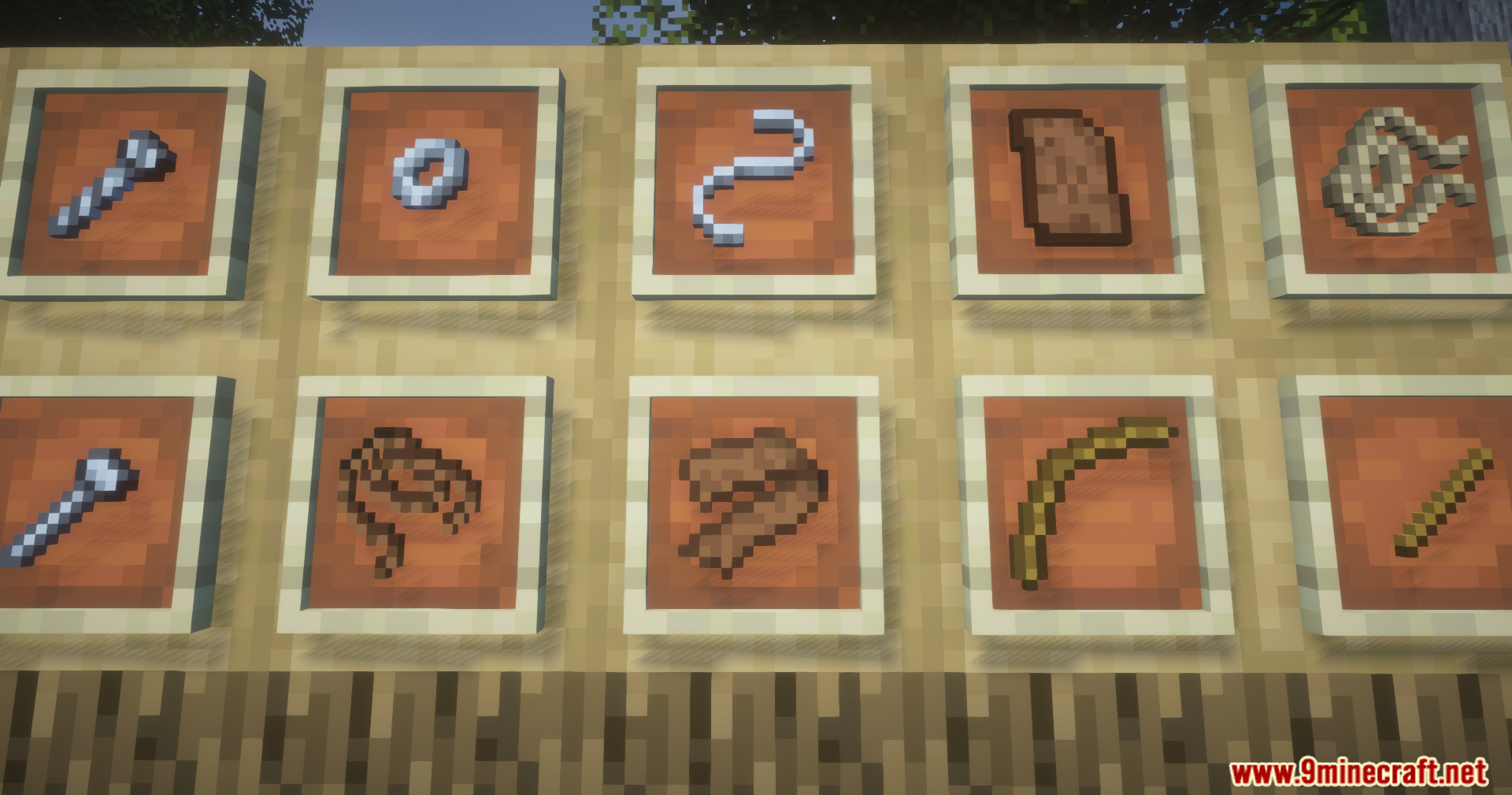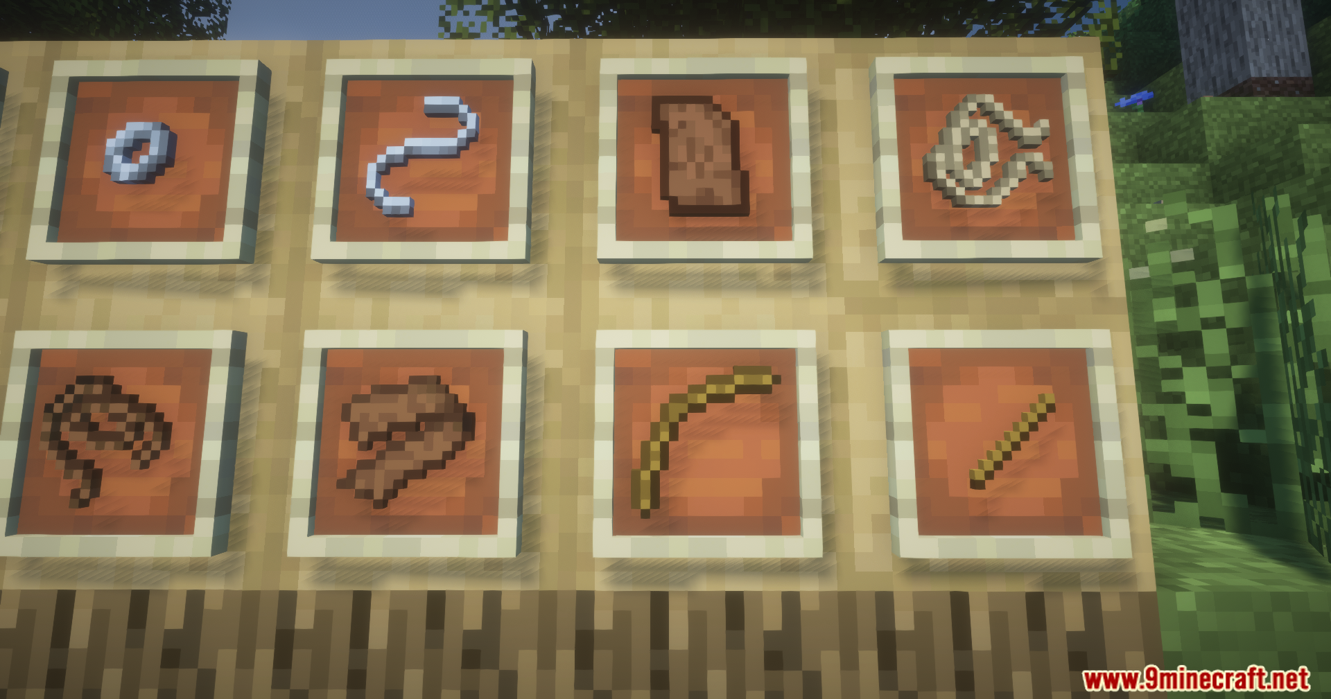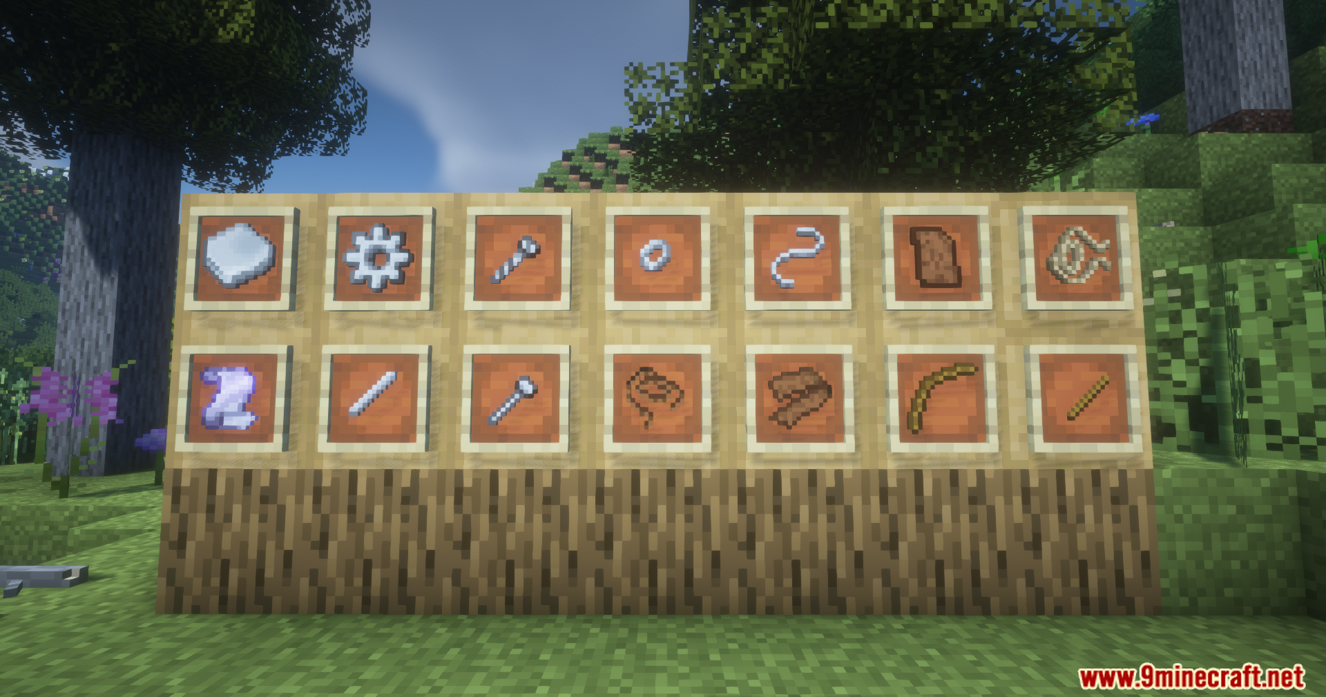 TFC More Items Mod (1.21.1, 1.20.1) introduces a wide range of intermediate components and crafting parts. It expands available materials for recipes, covering metal pieces, leather elements, plant-based fibers, and bow components to support more detailed item and tool designs.