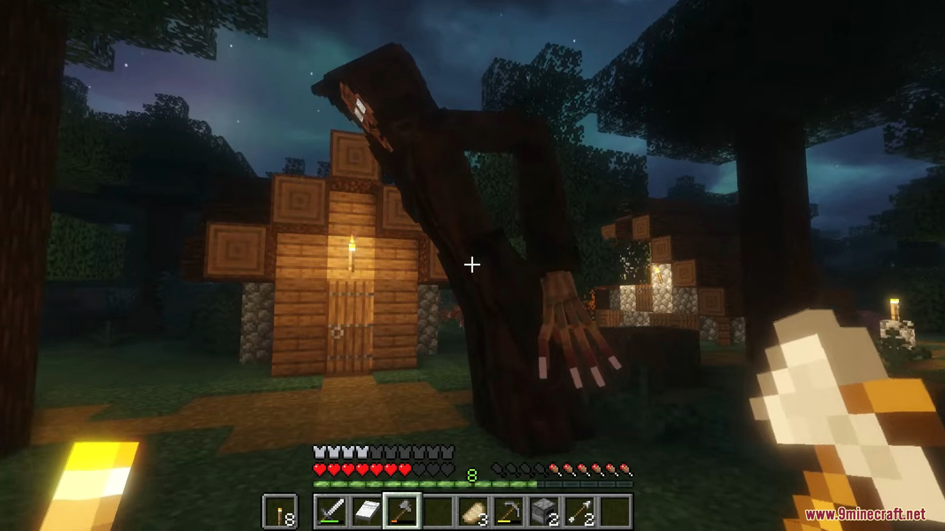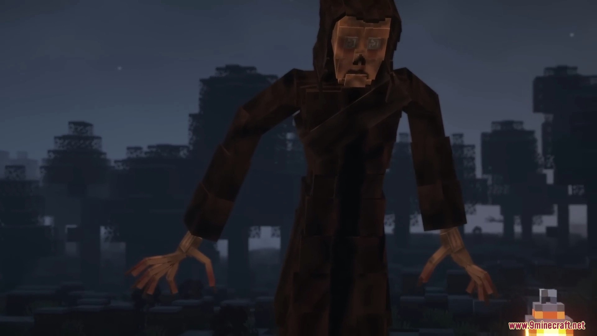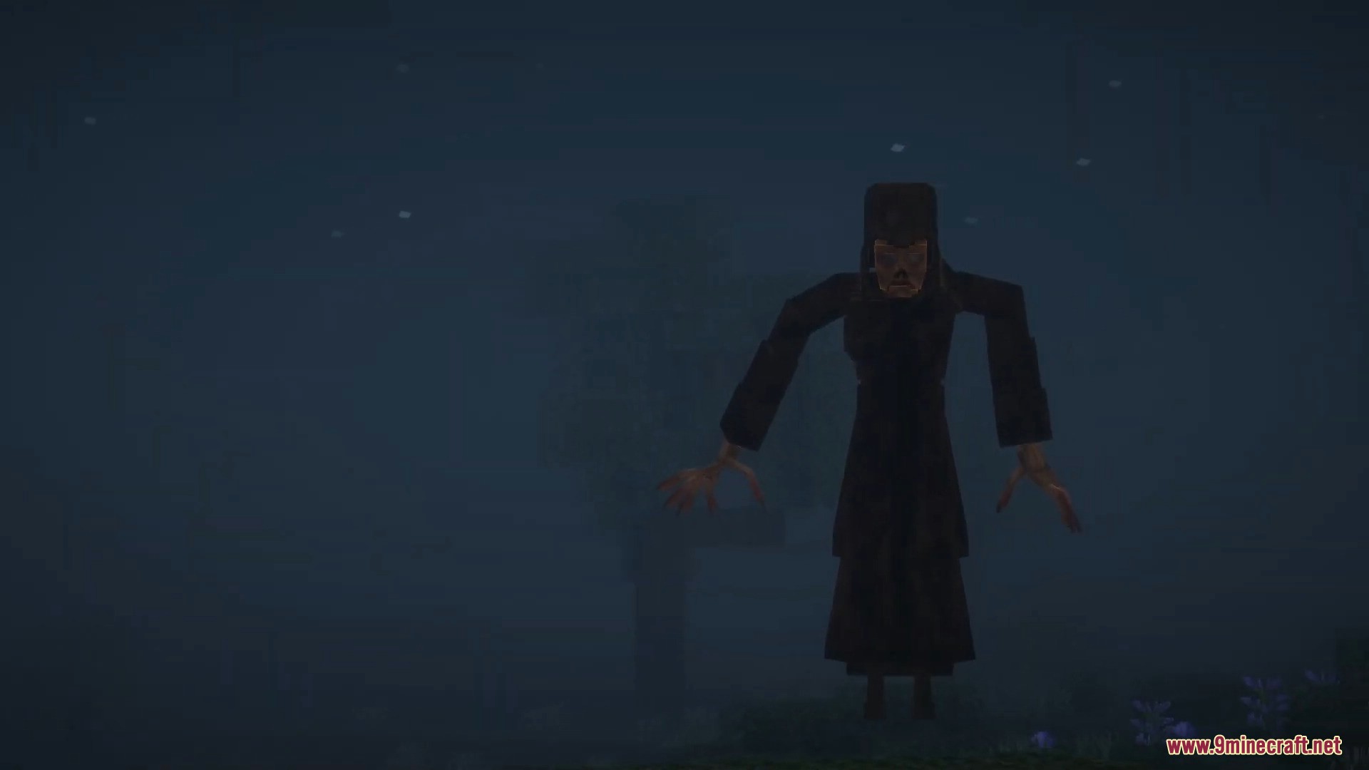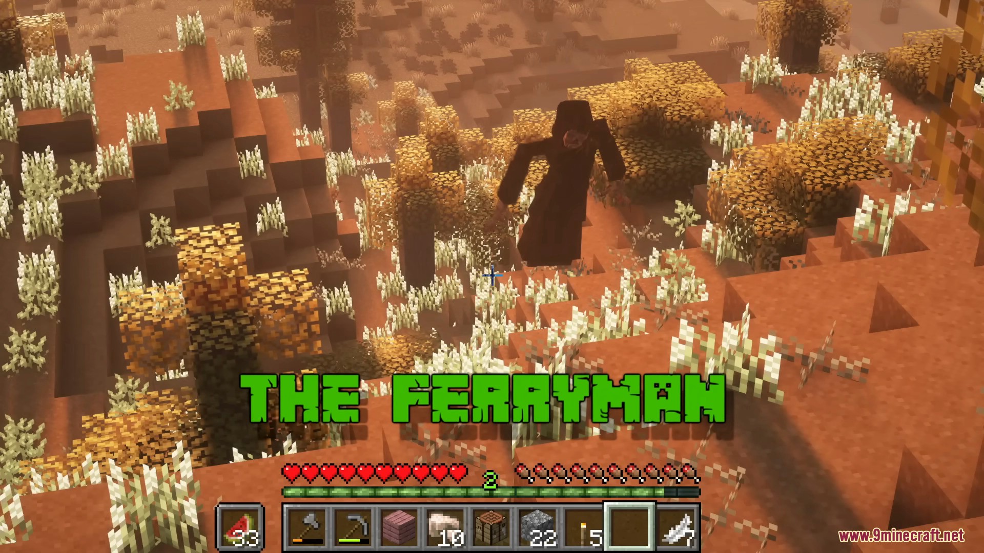 The Ferryman Mod (1.20.1, 1.19.2) is a shadowy horror entity that appears between realms and relentlessly hunts the player. It phases through barriers and moves silently, guided by eerie chimes that signal its approach.