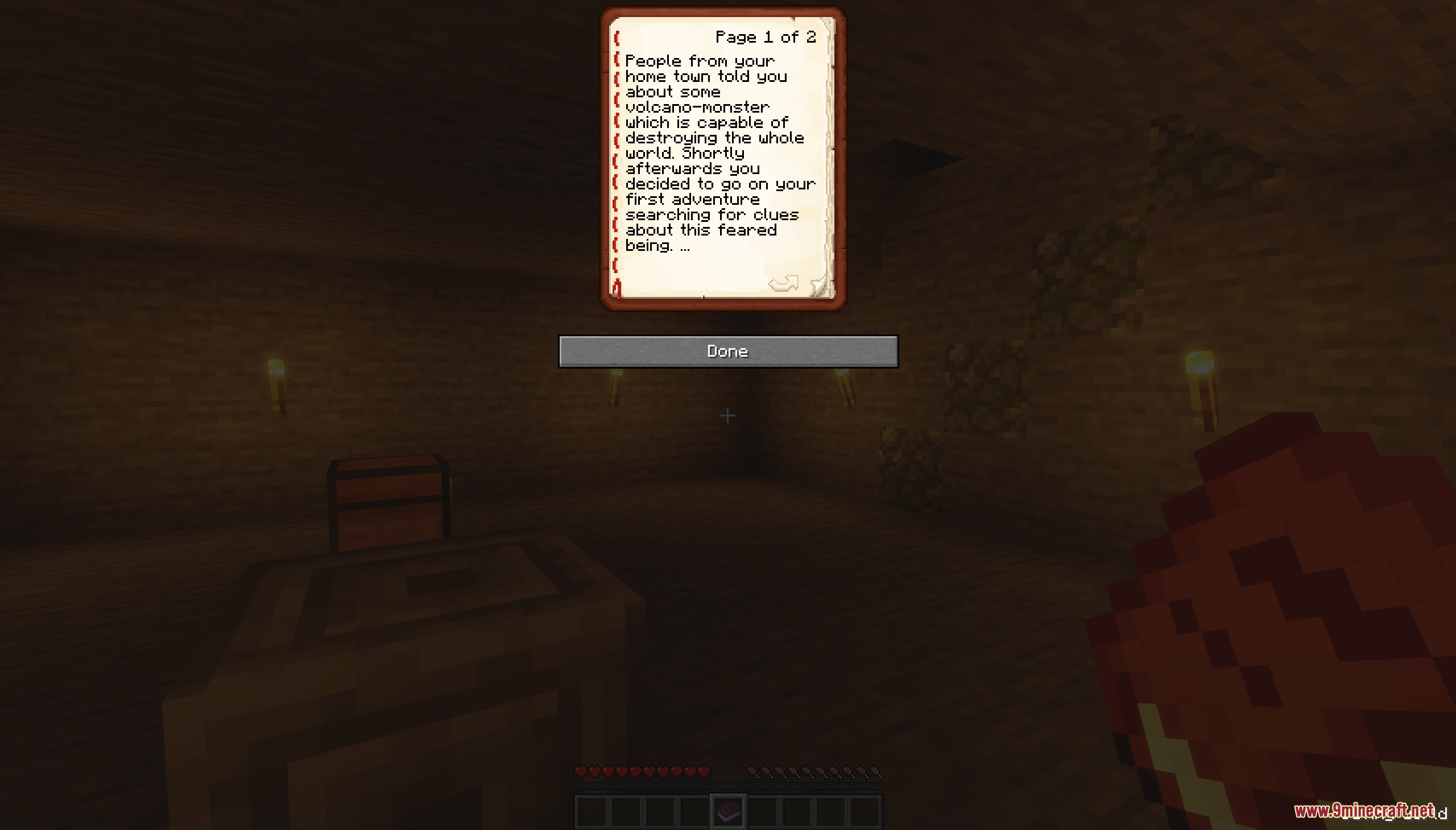 The First Adventure Map (1.21.11, 1.20.1) is a story-driven Minecraft RPG map where you play as a young adventurer who has just left the town of Turcavia to stop a dangerous volcano monster threatening the overworld. Your journey begins deep in caves filled with obstacles and challenges as you search for clues about the creature’s location and how it can be defeated. Along the way, you’ll encounter puzzles, mazes, parkour sections, and combat encounters, including minibosses and a final boss battle. Combining exploration, problem-solving, and action, the map delivers a classic adventure experience where players must overcome trials and uncover secrets to ultimately save the world from destruction.
