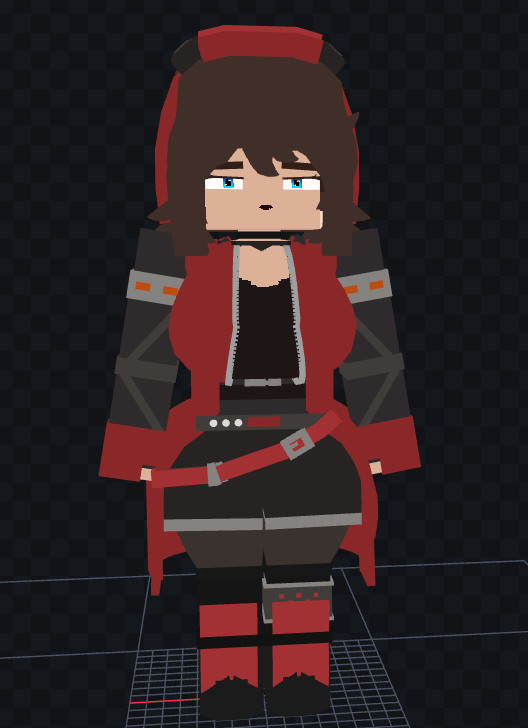 The Machinist Ellie Jenny Mod Model replaces the old model with a cyberpunk/mech anime-style design: brown hair, blue eyes, red hooded jacket with demon horns, black choker, armored shoulder pads with orange lights, red/black skirt, thigh guards/boots.
