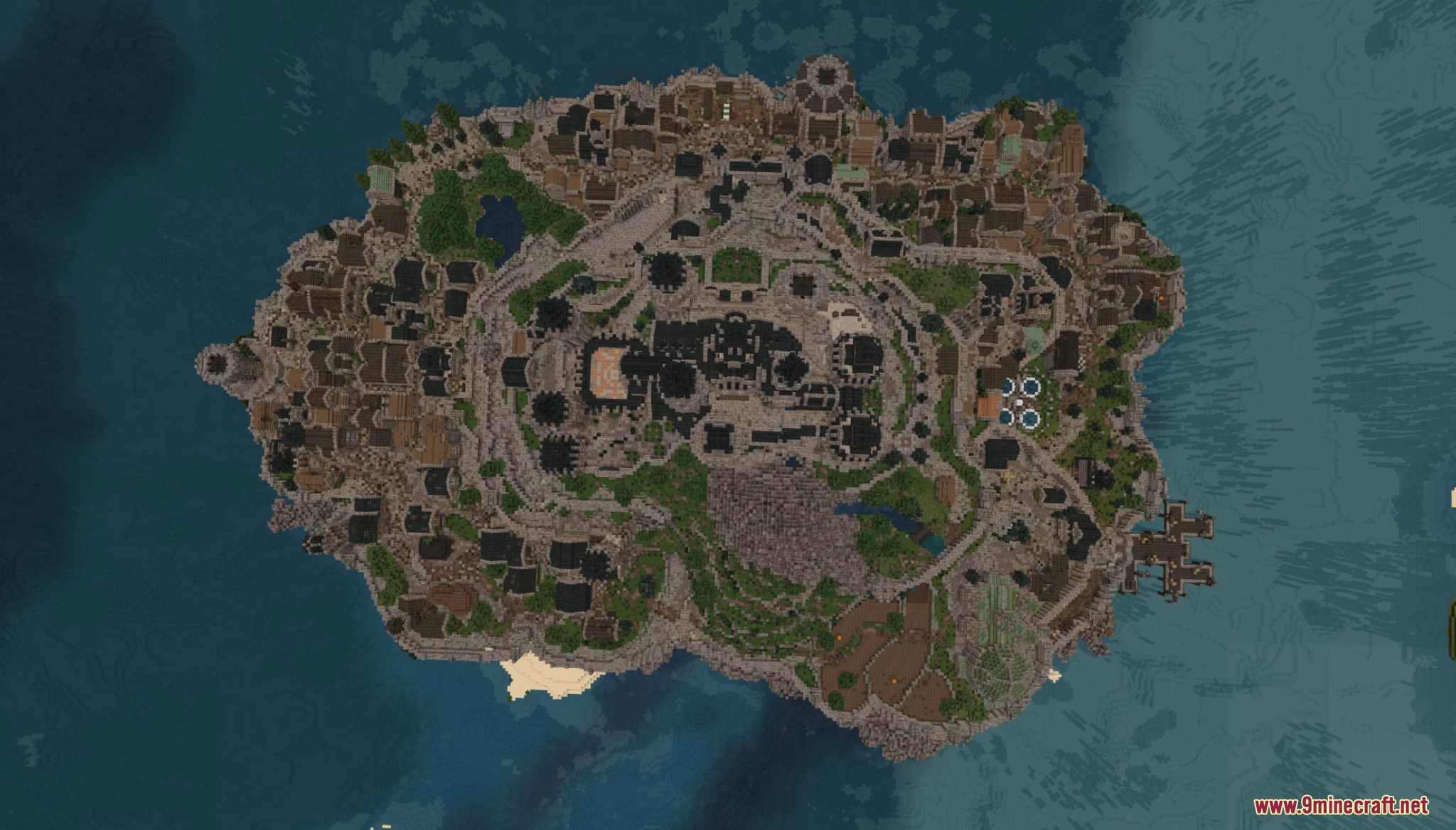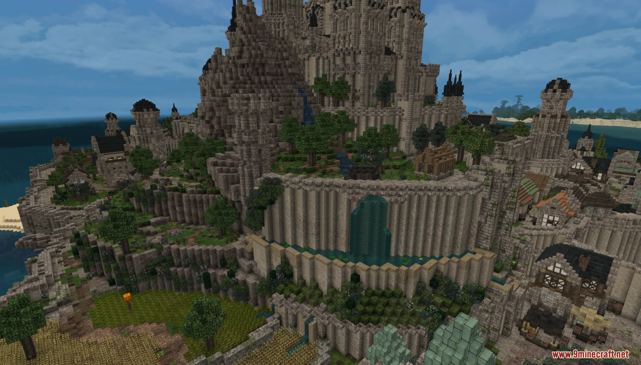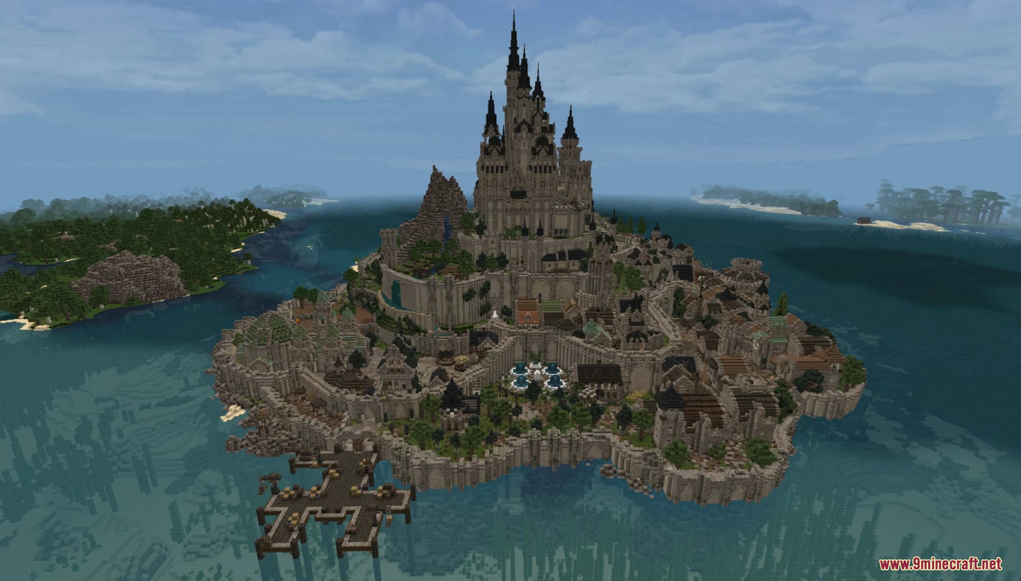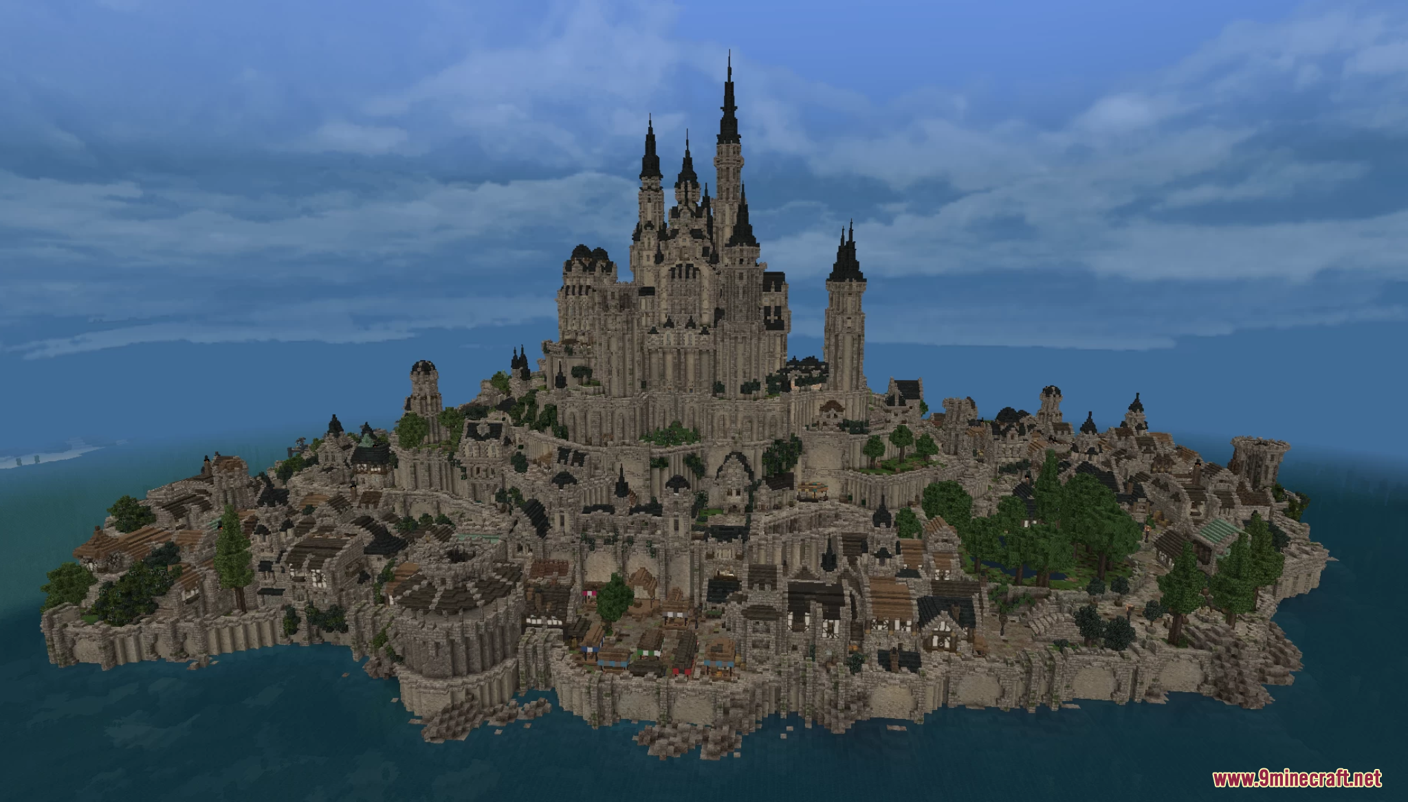 The Ocean City Map (1.21.11, 1.20.1) is a tiered fortress city inspired by Mont-Saint-Michel, rising dramatically from the sea. The map features fully furnished homes, markets, bathhouses, and docks on the lower levels, while a detailed castle crowns the top with a complete and logically designed interior. Built to feel like a living world, the city includes sewers, slums, and functional spaces, making it ideal for roleplay, exploration, or cinematic builds.