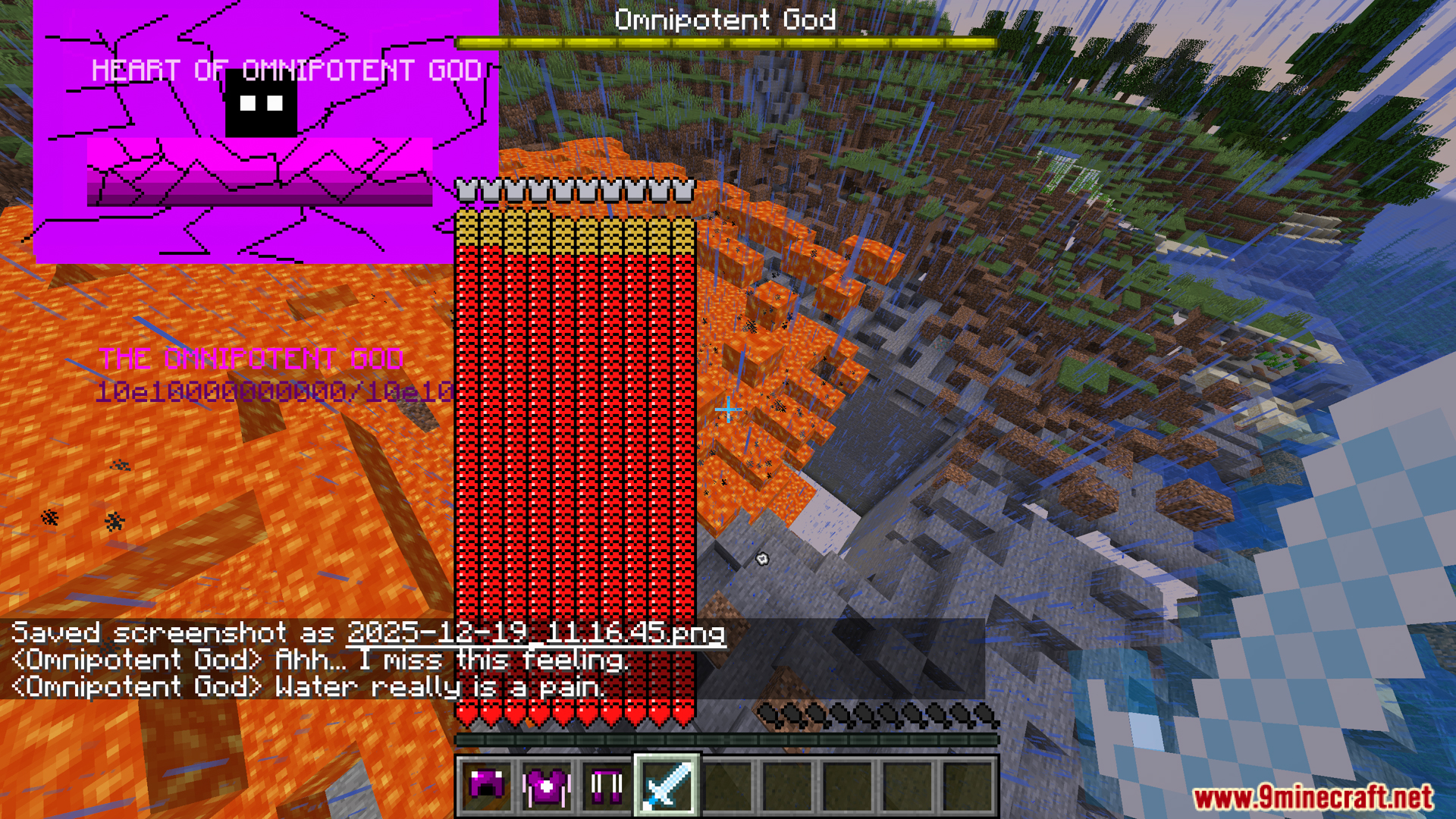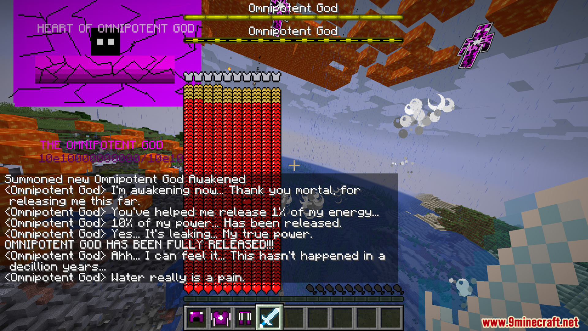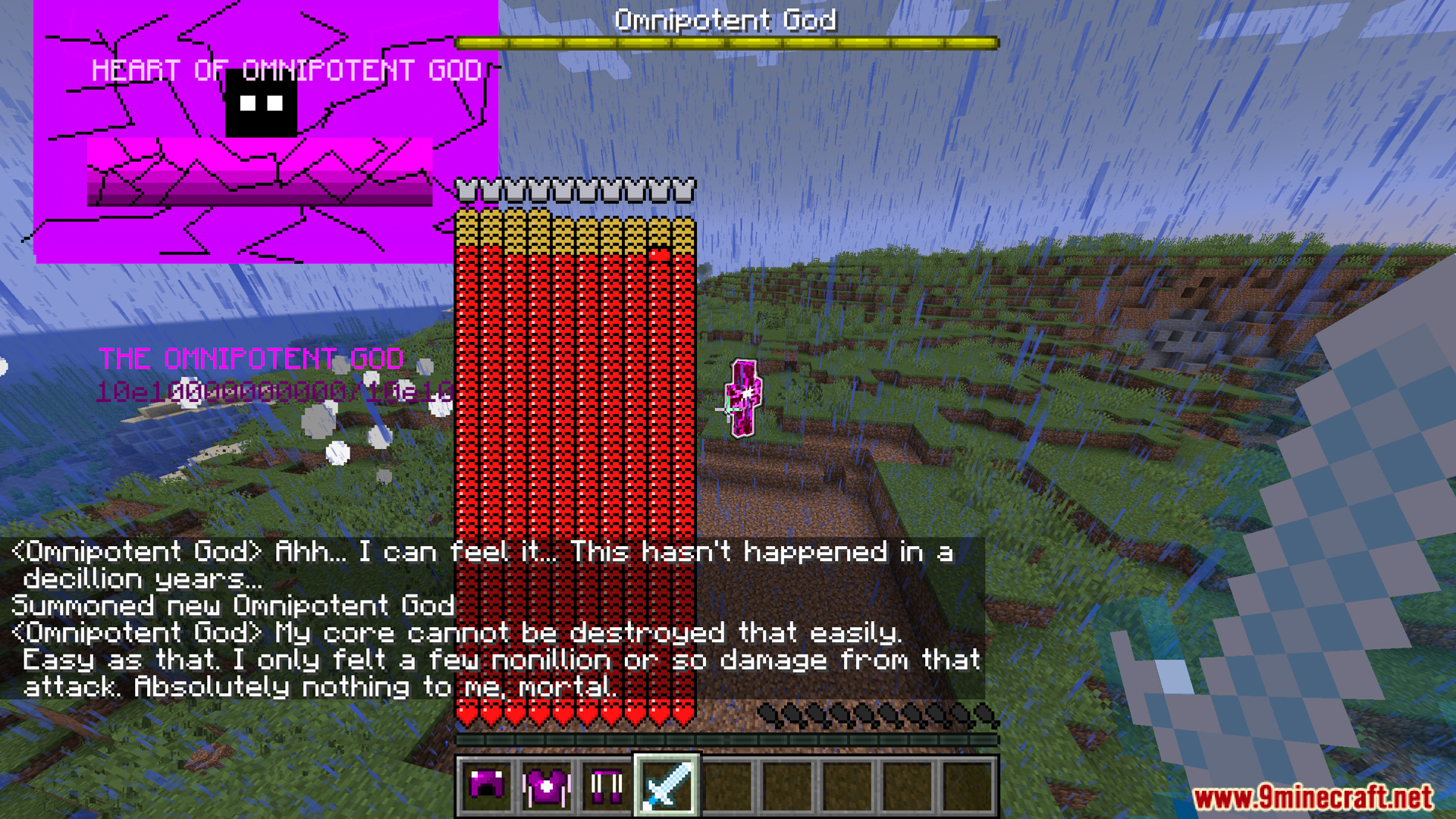 - Omnipotent Tier bosses are designed as surreal entities with extremely large amounts of HP (some bosses have “infinite omnipotent HP” or HP exceeding Minecraft’s limits), capable of manipulating space-time and creating destruction on a massive scale.