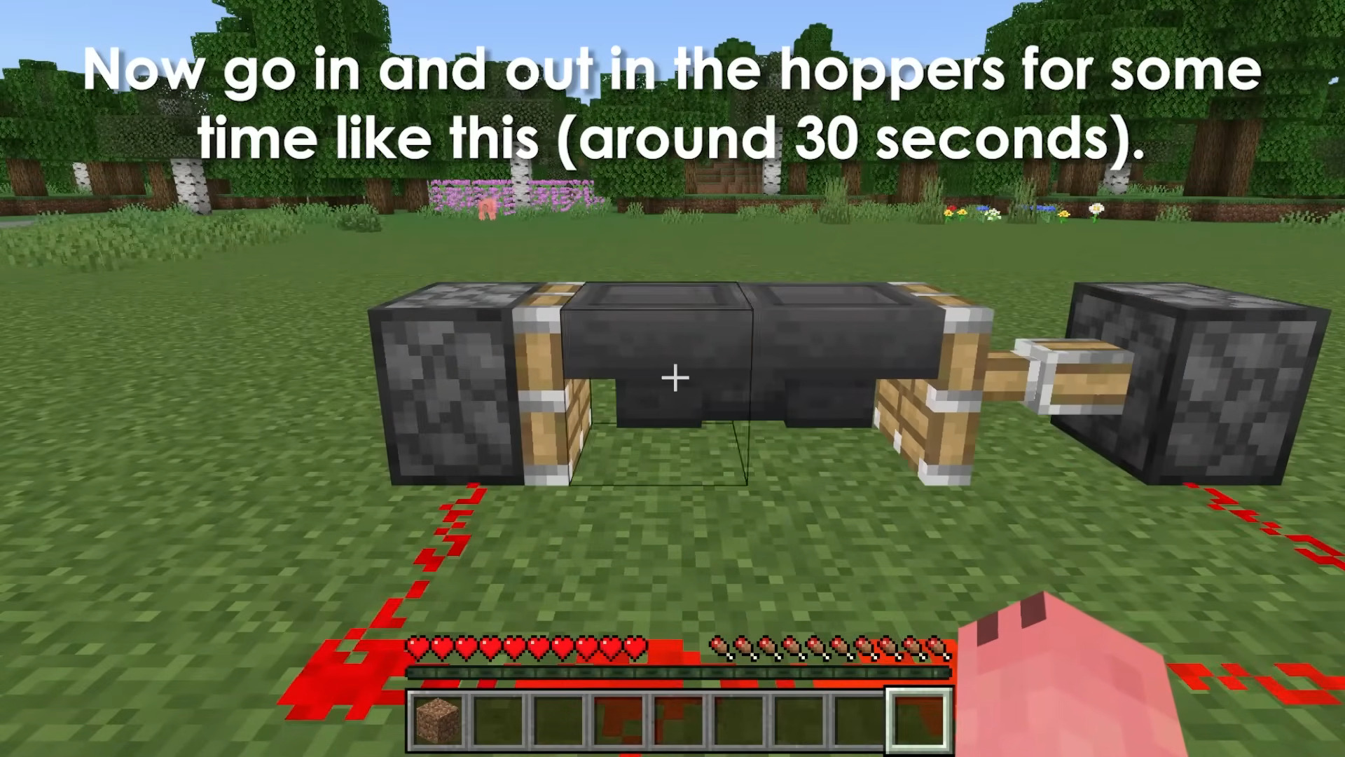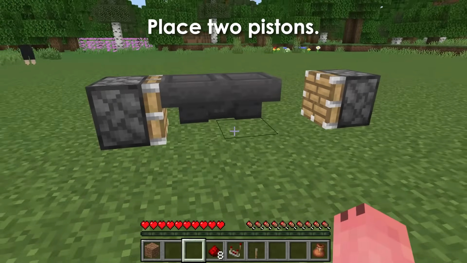 - Put two pistons — one on each side of the hopper(s) as shown in the screenshots.