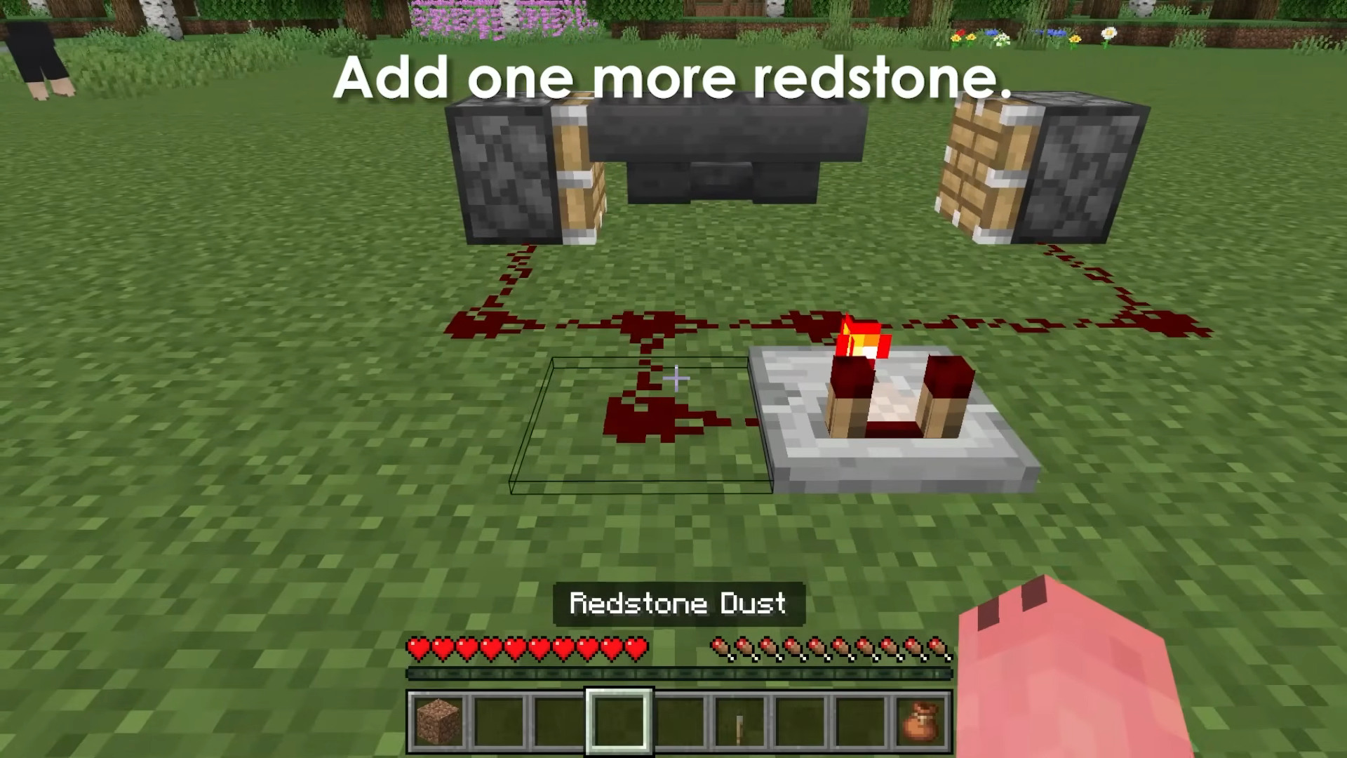 - Add one more redstone dust so the comparator output is fed back into the redstone loop as indicated.