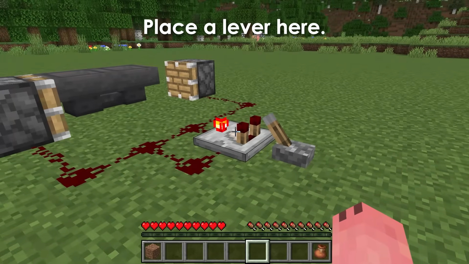 - Turn the lever off when finished, and remove any temporary blocks or extra redstone if you want a clean build.