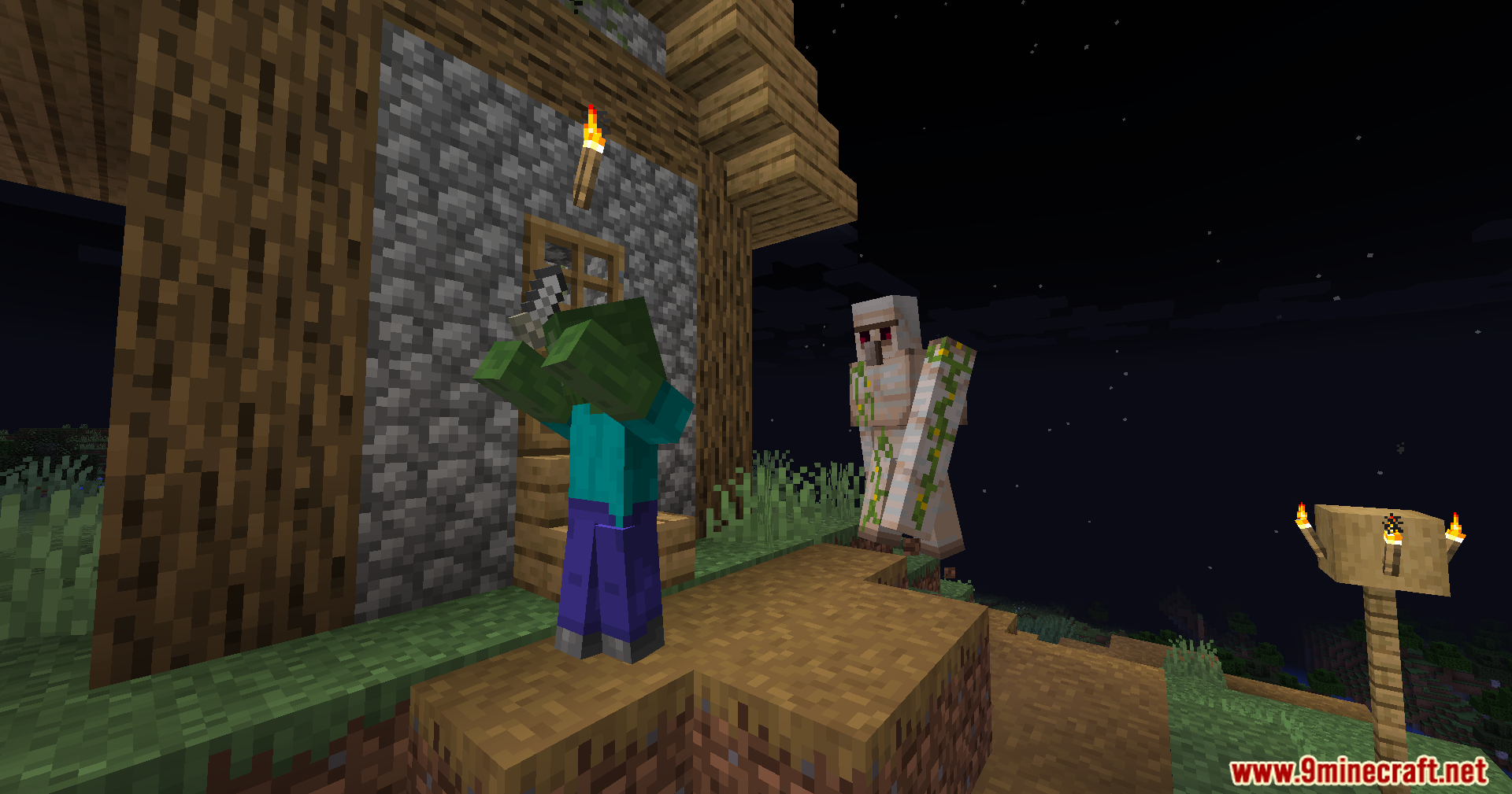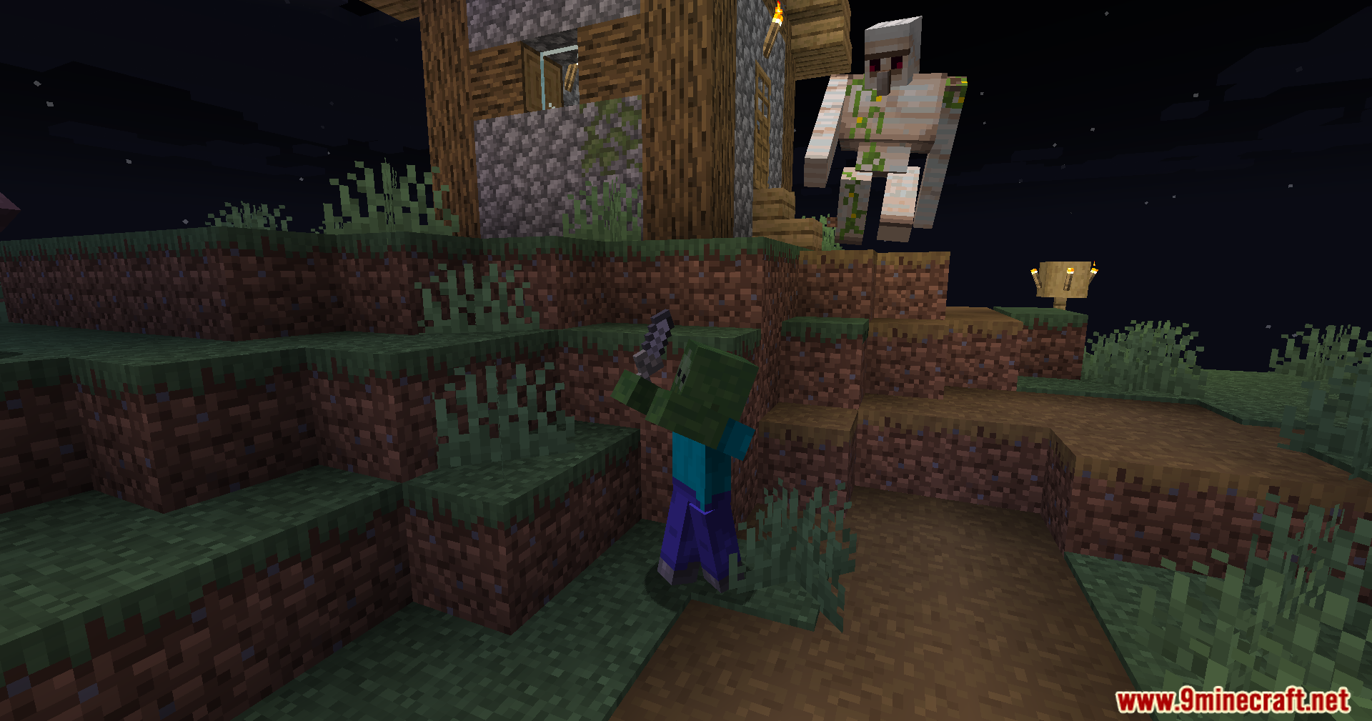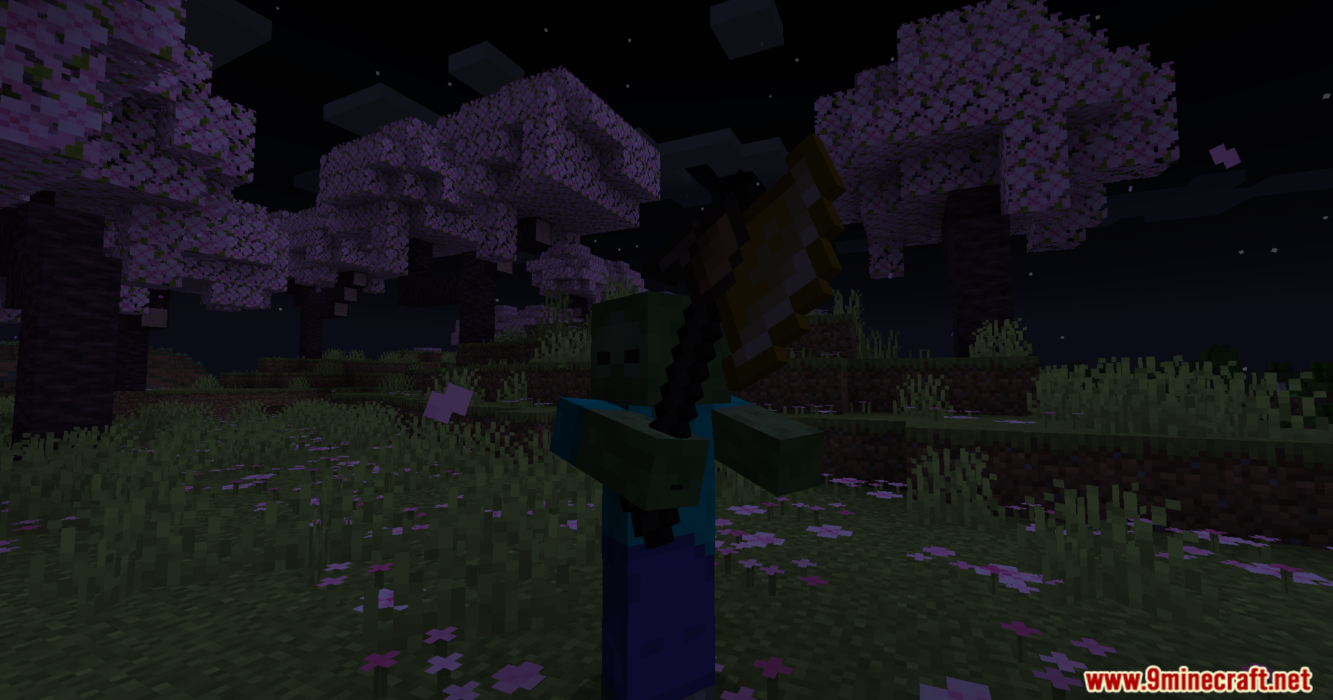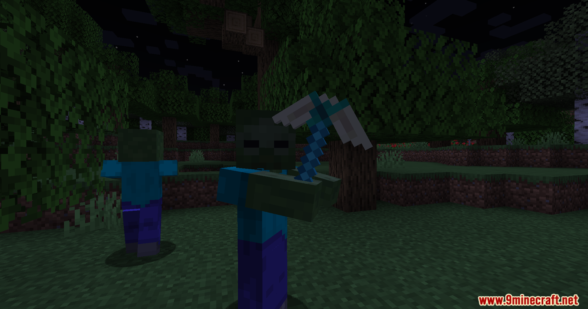 - 10% chance for mobs to spawn with Tinker weapons instead of vanilla ones.