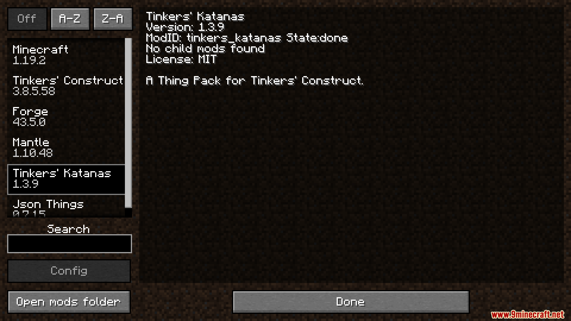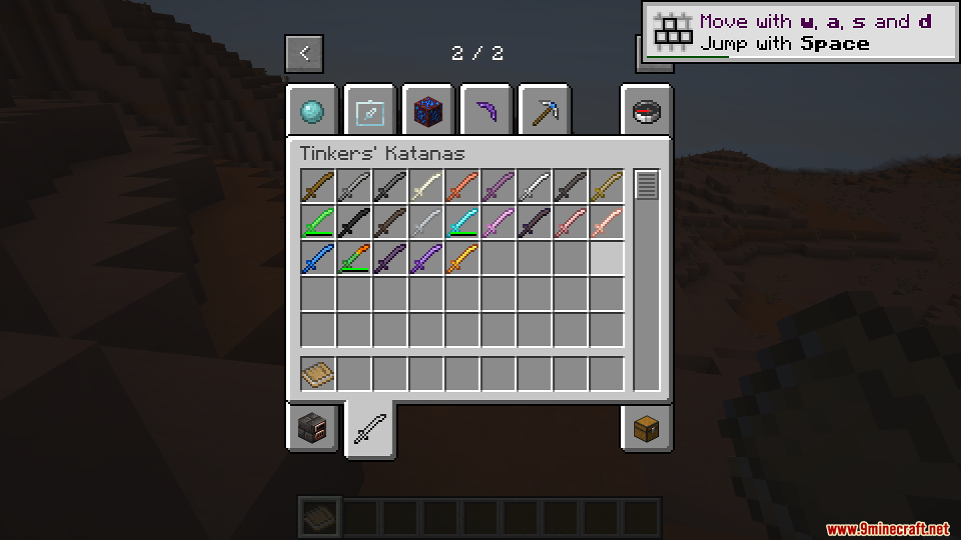 - Works as a “thingpack” addon; you craft katanas through the Tinkers’ Construct tool stations.