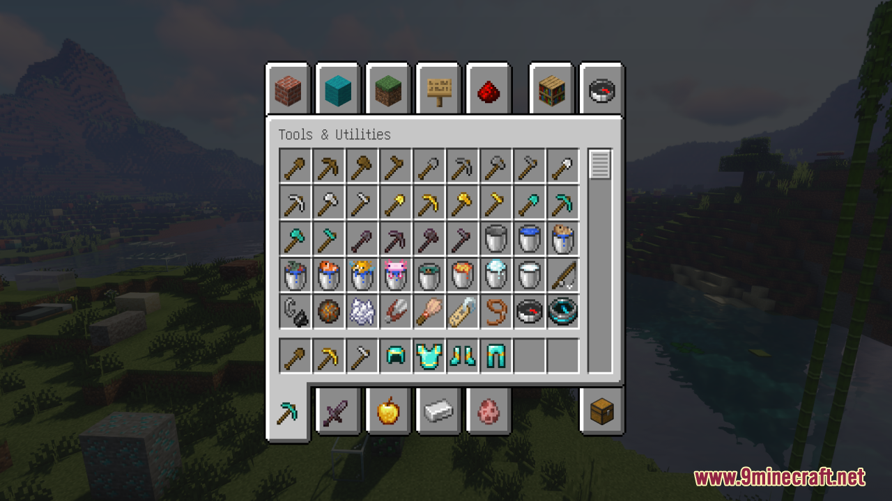 Tiny Tools+ Resource Pack (1.21.10, 1.20.1) aims to scale down the size of tools and held items in your hand, giving them a more subtle and unobtrusive appearance. By making tools smaller, the pack allows more of the player’s screen and surroundings to be visible, which can improve immersion and reduce clutter. Despite the visual shrink, all tool functionality remains unchanged – only their appearance is affected.