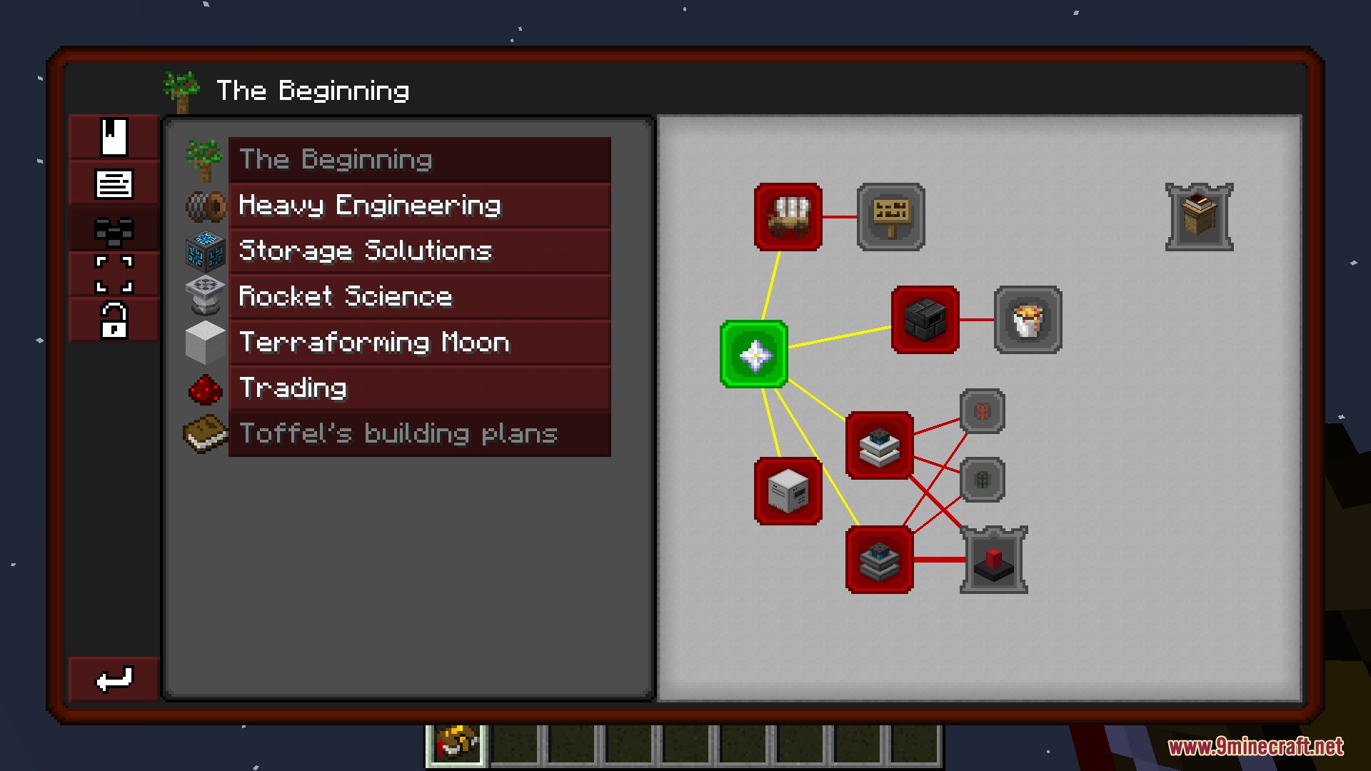 Towards Rocket Science Modpack (1.12.2) is a beginner-friendly engineering and space exploration modpack for Minecraft where your mission is simple in theory but ambitious in practice: build technology, explore space, and terraform the Moon. You will progress through a structured journey that begins with basic survival and gradually advances into warp travel and planetary engineering, with a clear focus on engineering, automation, research, and space exploration. The main objective is to reclaim and terraform the Moon, following a guided progression through chapters and quests designed to help new players learn and master each stage of technological development.