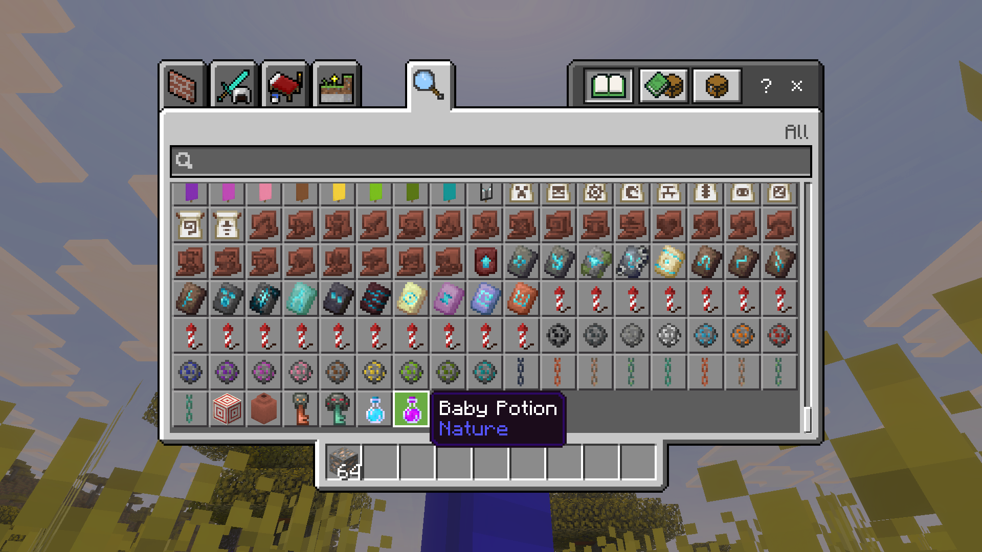 Transform Into Baby Addon (1.21) transforms the character into a small version, allowing for flexible movement. When using this special potion, the character will shrink to only 5 hearts of blood and can fit through narrow 1×1 gaps when crouching. The Addon also adds Adult Potion to help the character return to its original form at any time.