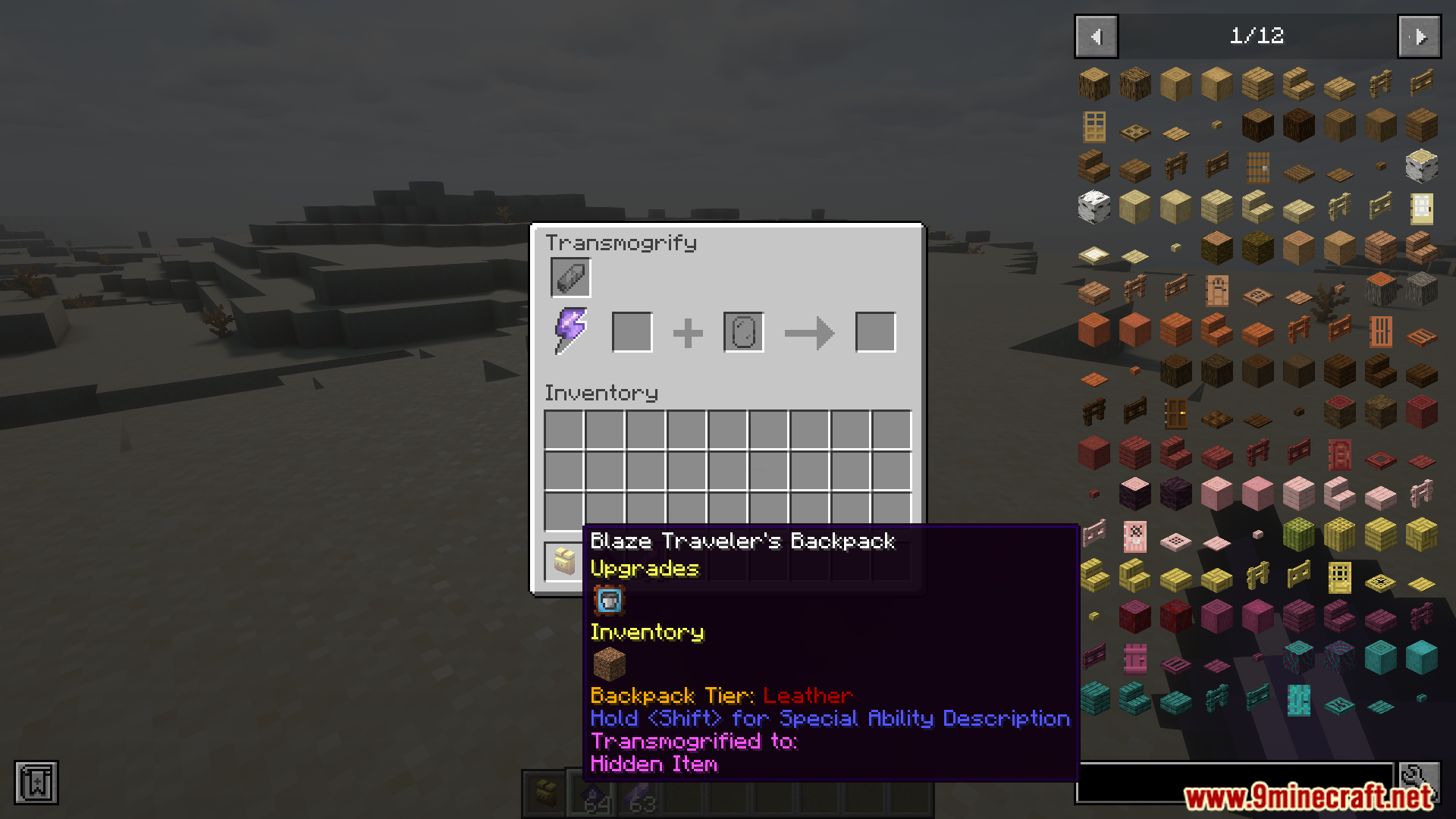 Travelers Backpack Transmog Compat Mod (1.20.1, 1.20) adds compatibility between Traveler’s Backpack and Transmog, letting backpacks be transmogged into other items while keeping their unique visuals like tank rendering and hose modes.