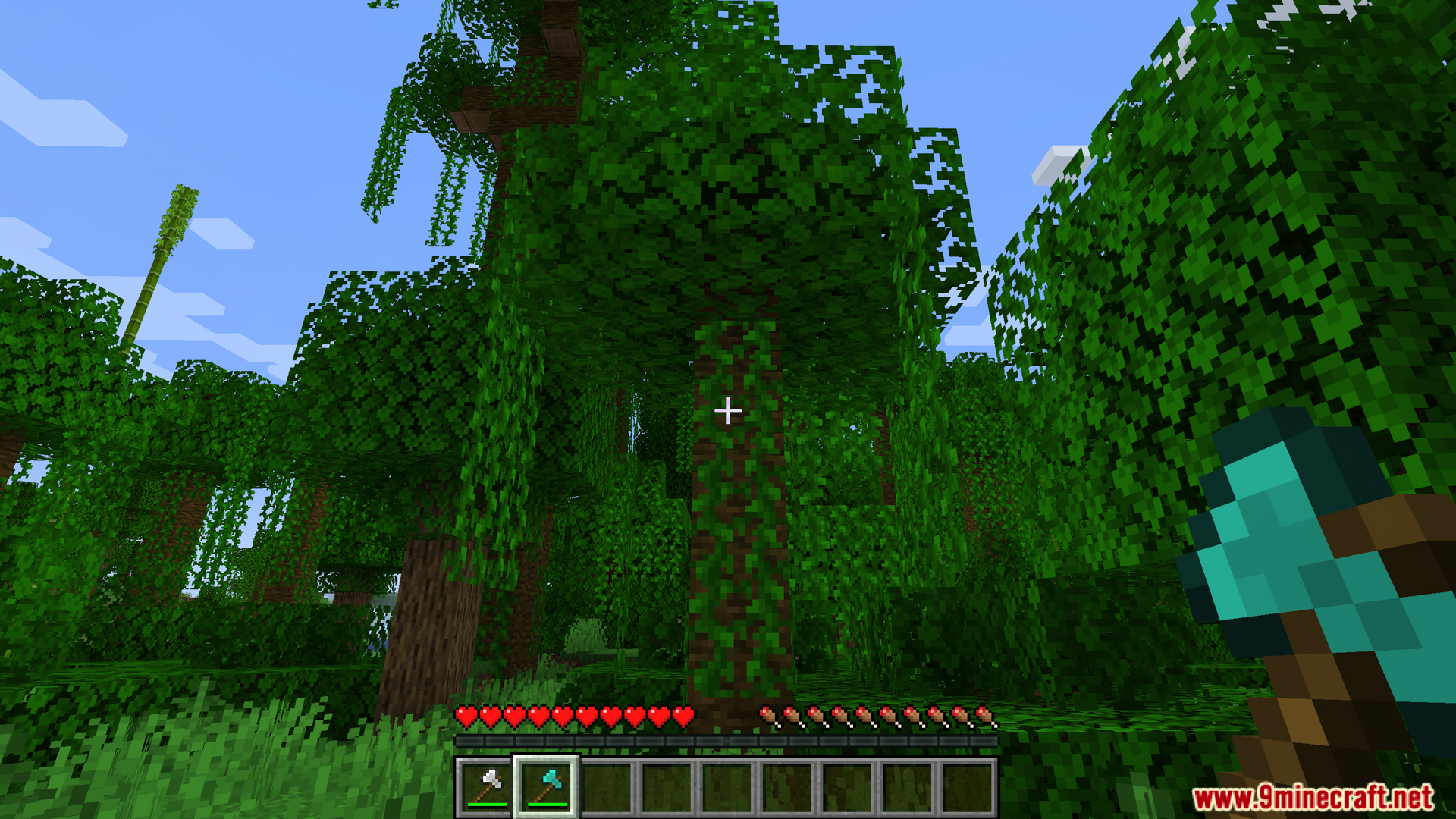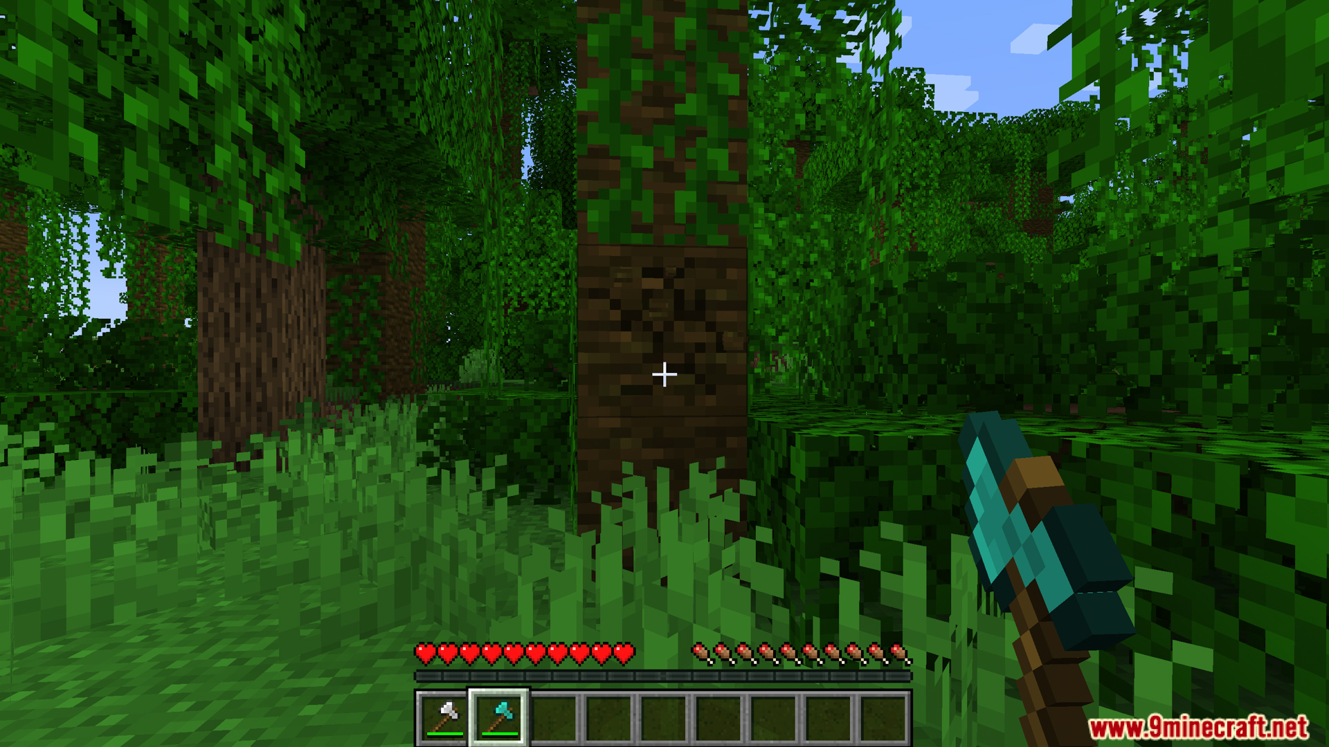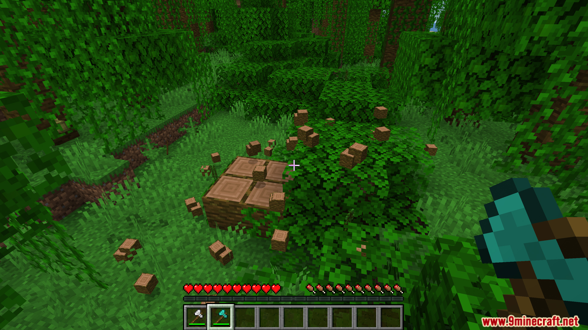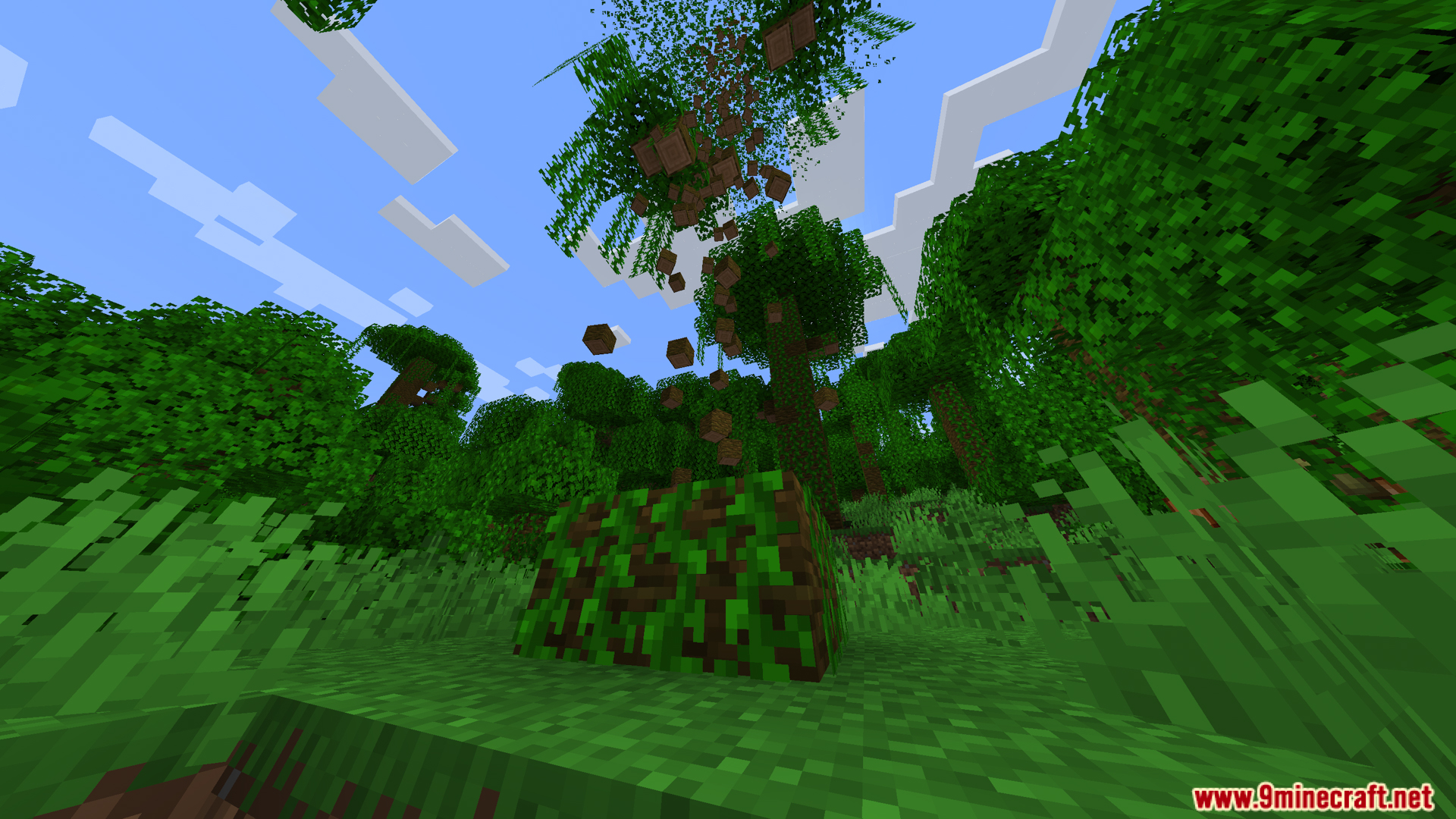- When you crouch (sneak) and smash a tree’s log block, the mod will automatically destroy all logs and leaves associated with that tree.