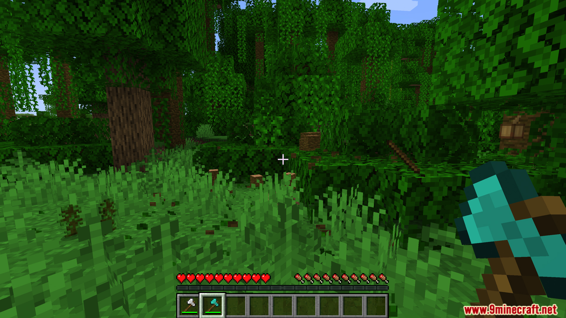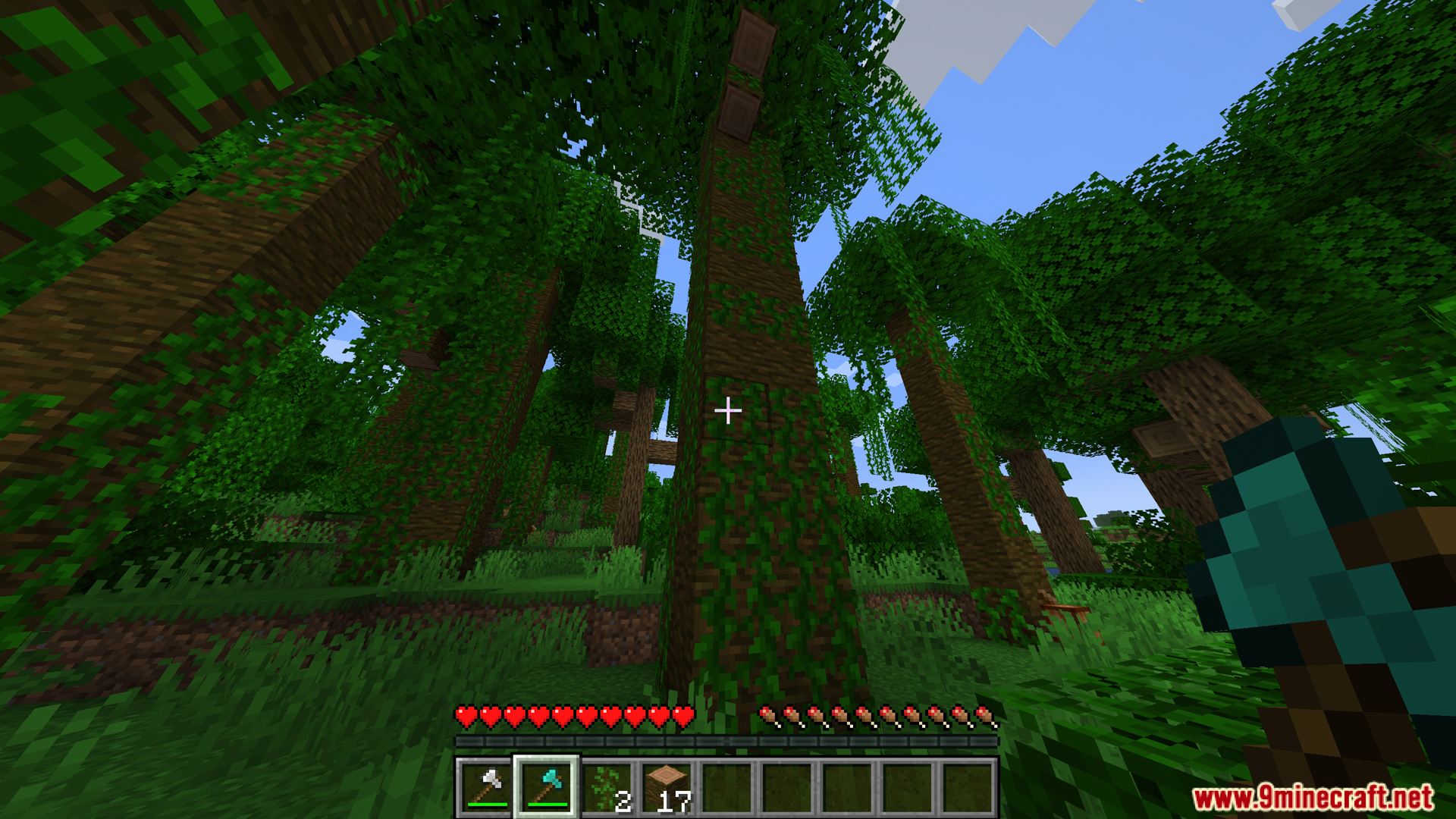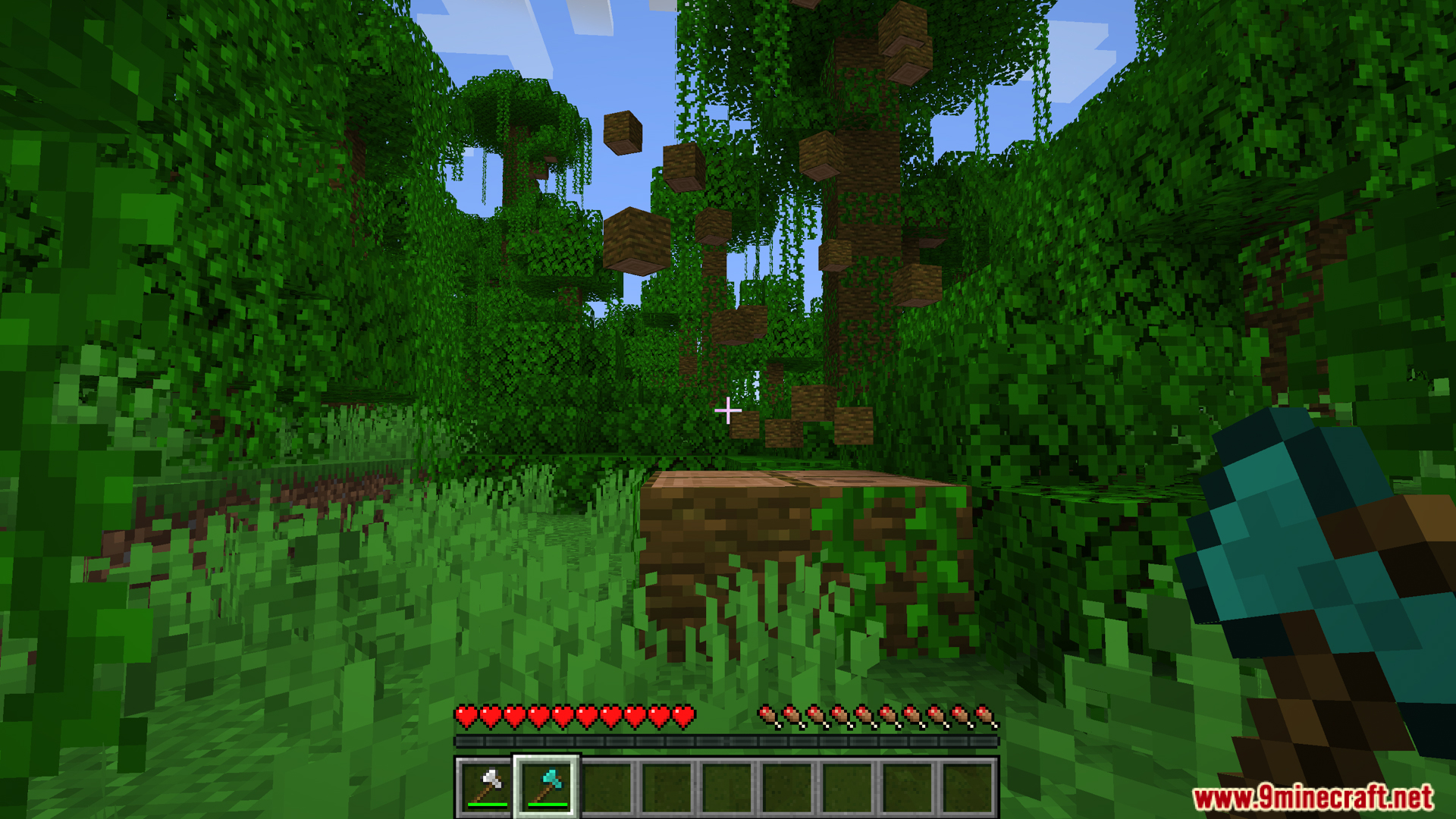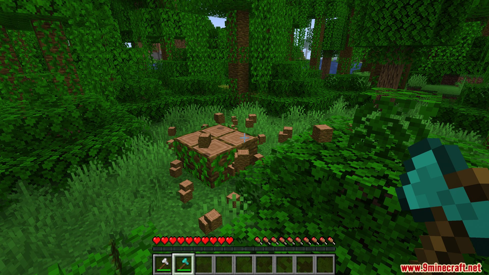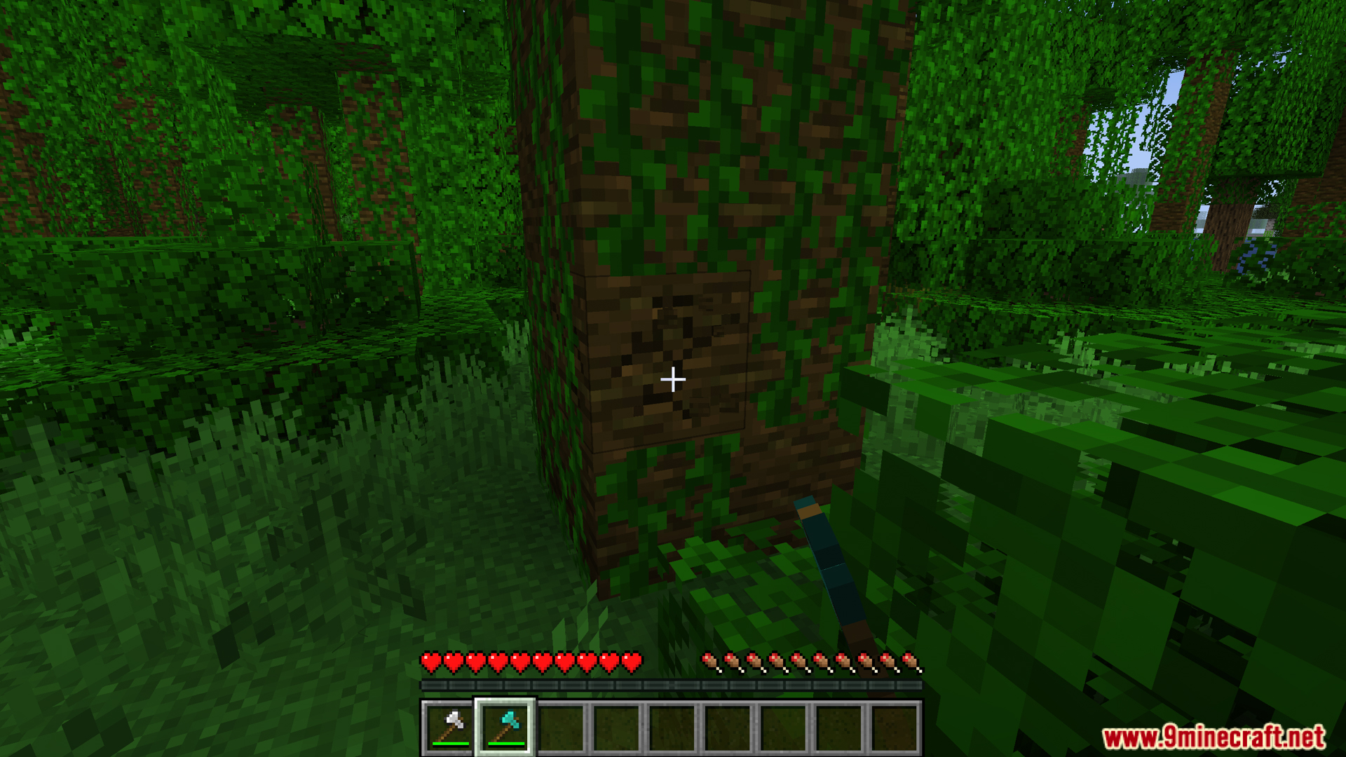 - When you crouch (sneak) and smash a tree’s log block, the mod will automatically destroy all logs and leaves associated with that tree.