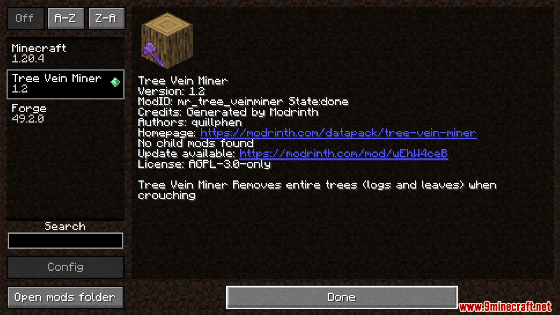 Tree Vein Miner Mod (1.21.11, 1.20.1) Download Links
