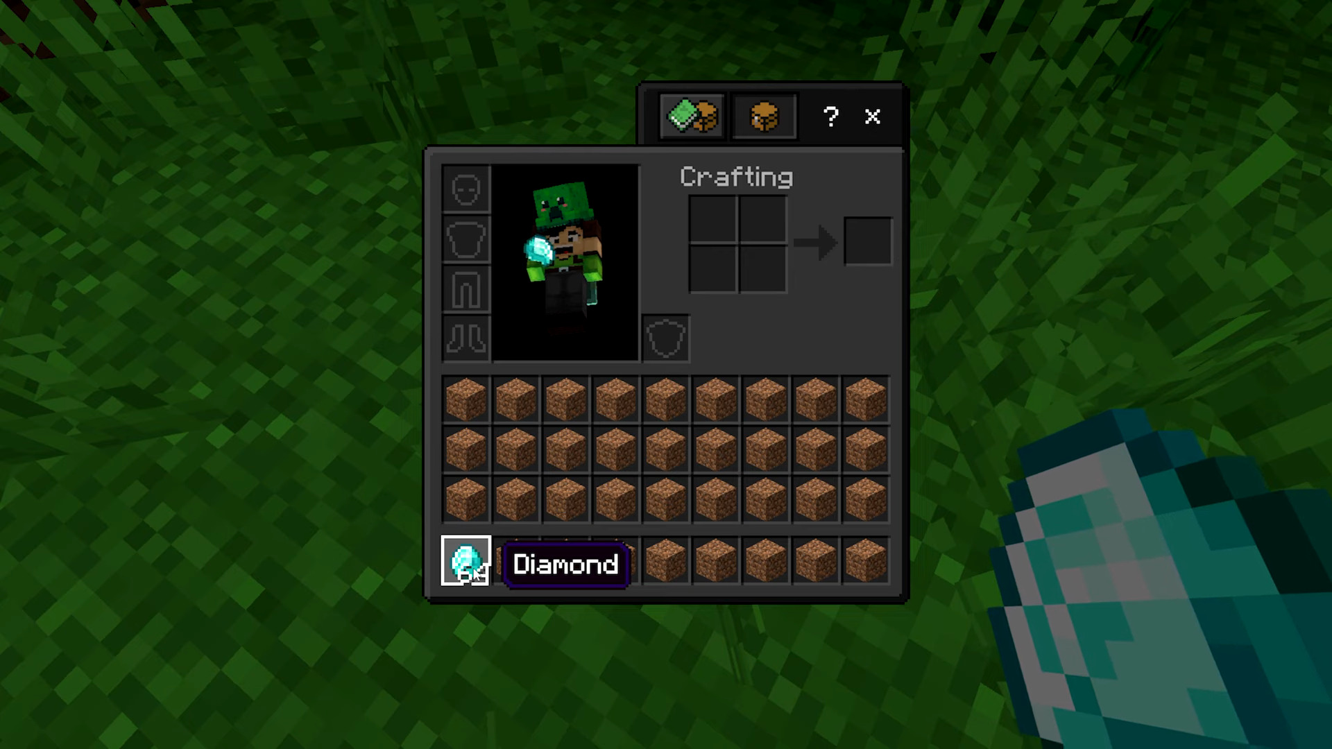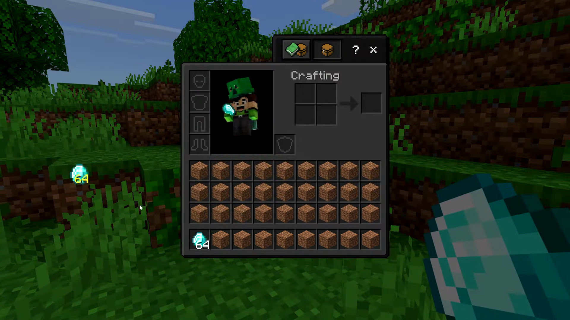 - Reopen your inventory and fill the empty slot with another random block.