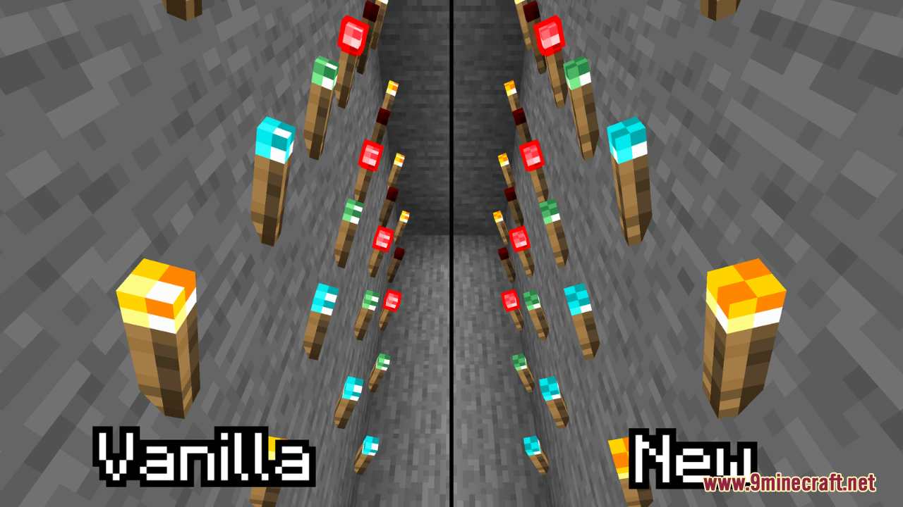 Unique Torch Tops Resource Pack (1.21.11, 1.20.1) is a small but neat Minecraft resource pack that gives every torch in the game a unique top texture – smoothing out the usual vanilla design so torches look cleaner and more consistent from above when placed in the world. Instead of the default flat pixel tops, this pack adjusts the torch tops to blend better with their surroundings, subtly improving the visual feel of torch-lit builds and pathways. This is a great little addition for players who want their lighting details to look just a bit more polished without changing gameplay or dramatically overhauling visuals.