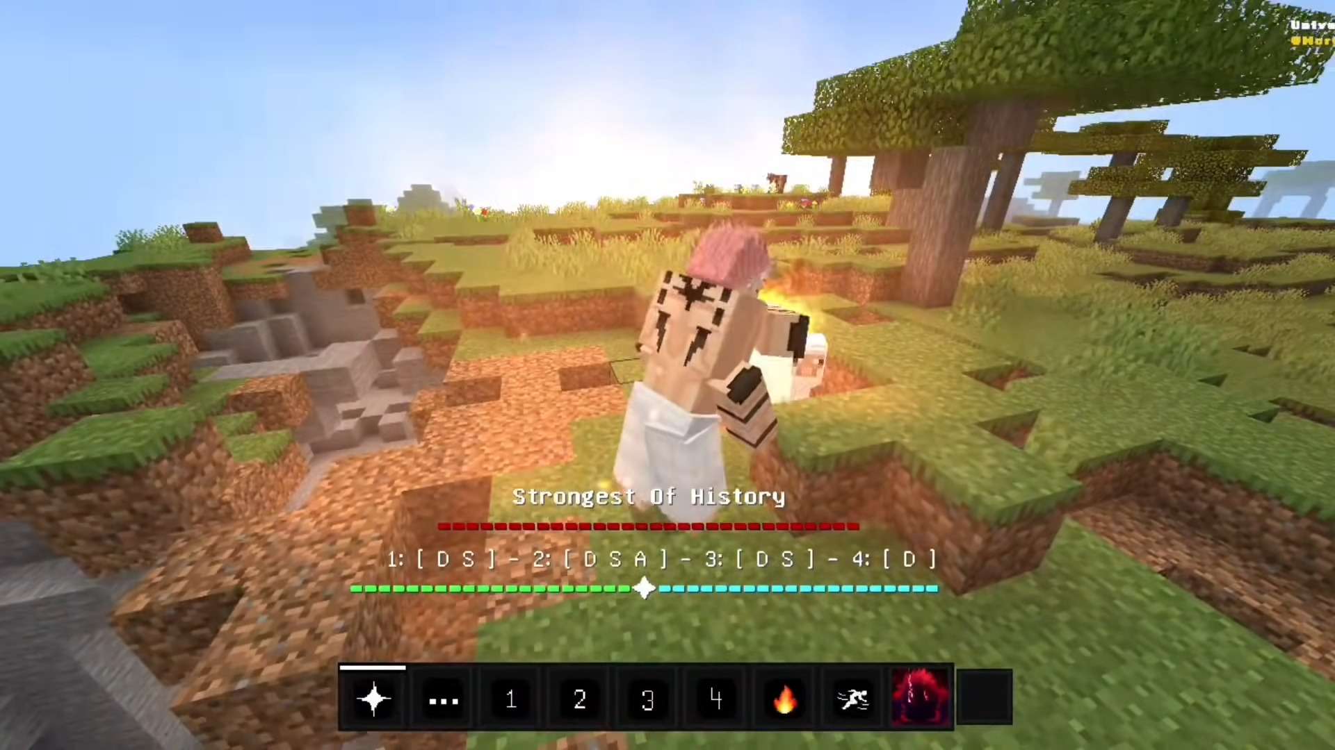 Universal Craft Addon (1.21) features a massive multi-anime crossover with playable characters from Jujutsu Kaisen, Demon Slayer, One Punch Man, X-Men, Invincible, Berserk, JoJo’s Bizarre Adventure, and more-focused on insane custom animations, 1v1 PvP clashes, domain expansions, stands, combos, and survival combat.