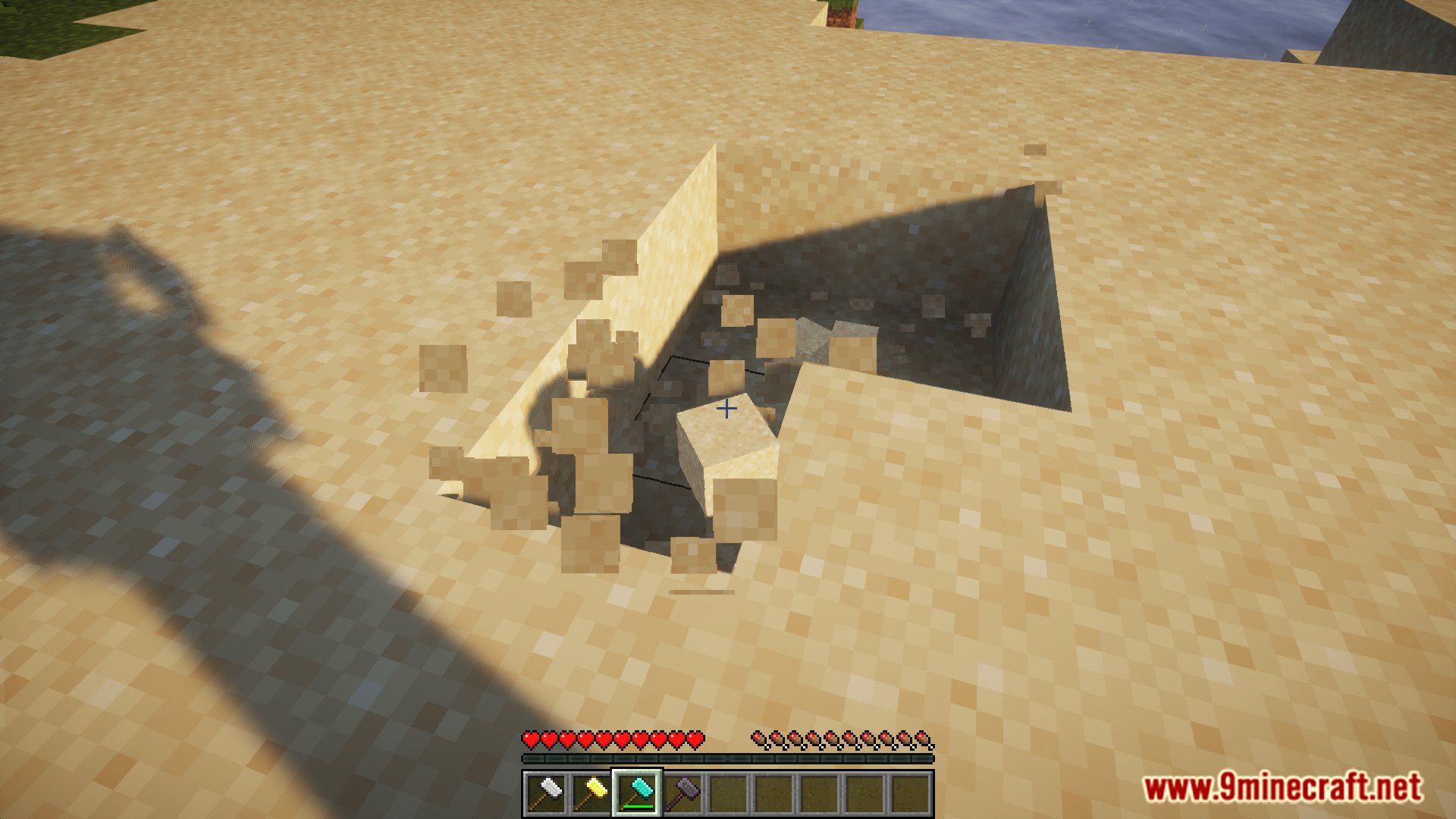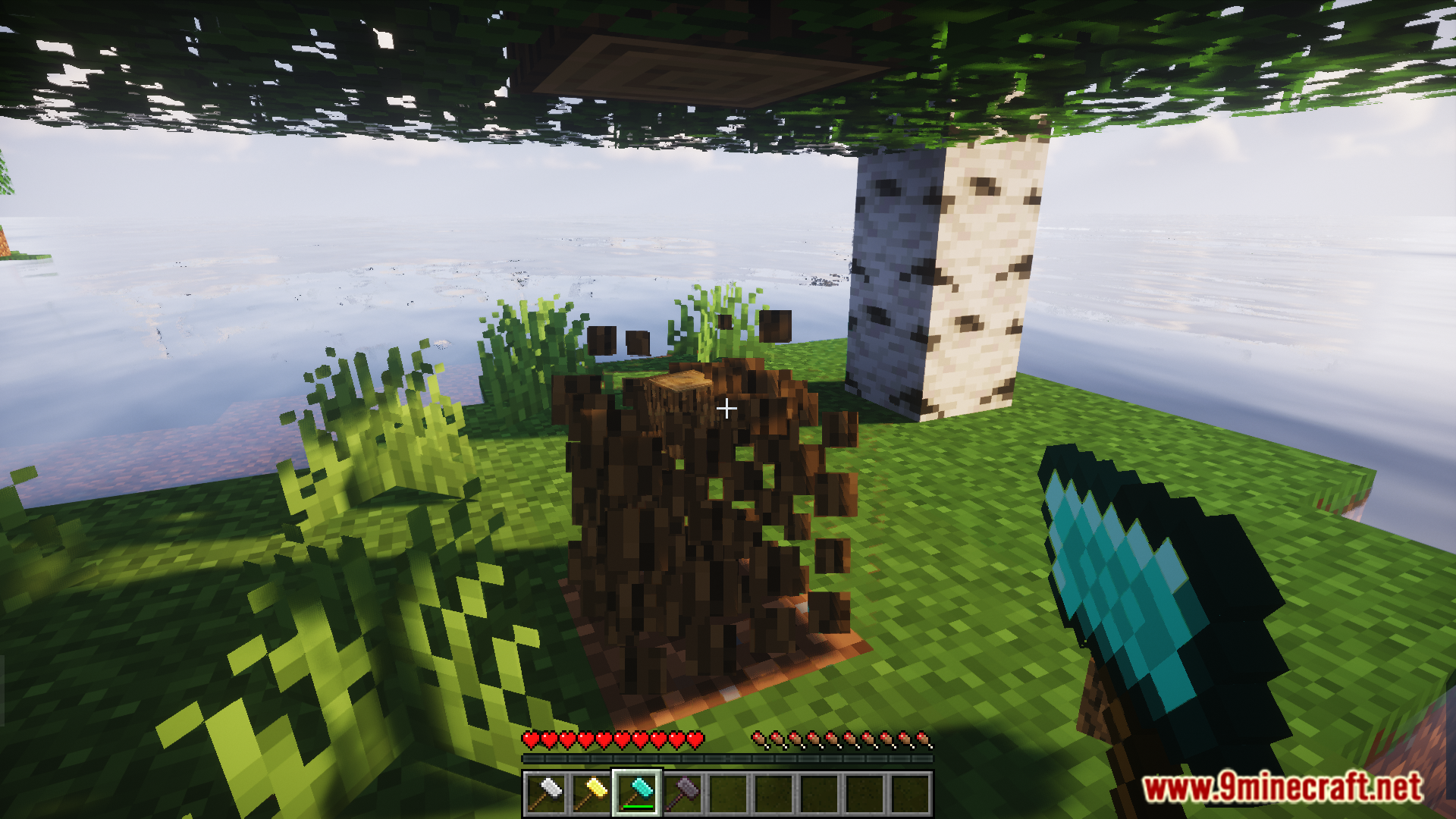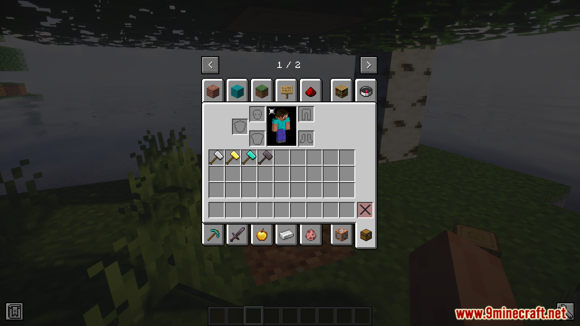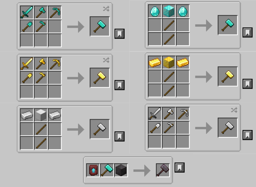 The concept of “paxels” have existed in the Minecraft community for a very long time. A paxel is a tool that is made by combining five tools/weapons – sword, axe, pickaxe, shovel and hoe. The paxel will then be able to perform the functions of all of these tools. Upgraded Tools Mod (1.20.1, 1.19.4) introduces a similar combined tool into the game, only that it is a hammer. Just like a paxel, the hammer is crafted by combining five other tools. It comes in all of the different tiers as the vanilla tools. A new enchantment called “Hammer Time” has also been introduced. More details and crafting recipes are given below.
