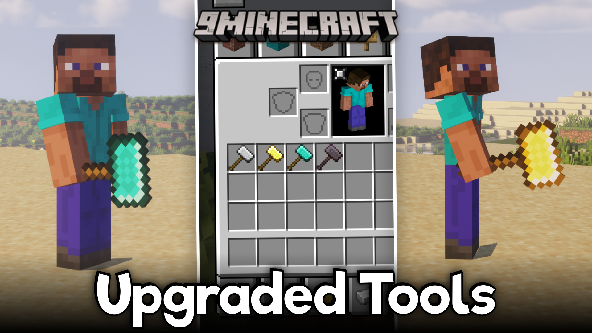 The concept of “paxels” have existed in the Minecraft community for a very long time. A paxel is a tool that is made by combining five tools/weapons – sword, axe, pickaxe, shovel and hoe. The paxel will then be able to perform the functions of all of these tools. Upgraded Tools Mod (1.20.1, 1.19.4) introduces a similar combined tool into the game, only that it is a hammer. Just like a paxel, the hammer is crafted by combining five other tools. It comes in all of the different tiers as the vanilla tools. A new enchantment called “Hammer Time” has also been introduced. More details and crafting recipes are given below.