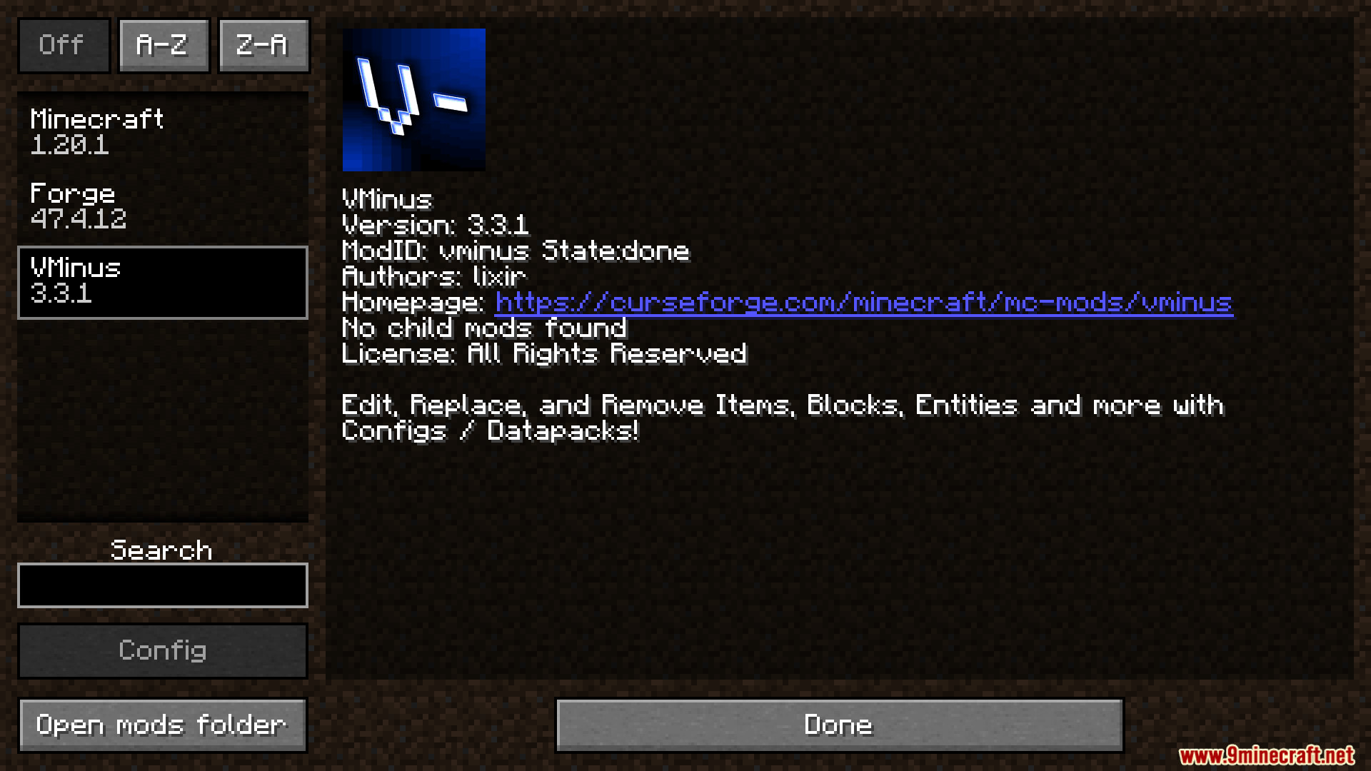 V Minus Mod (1.20.1, 1.20) – Total Minecraft Customization
