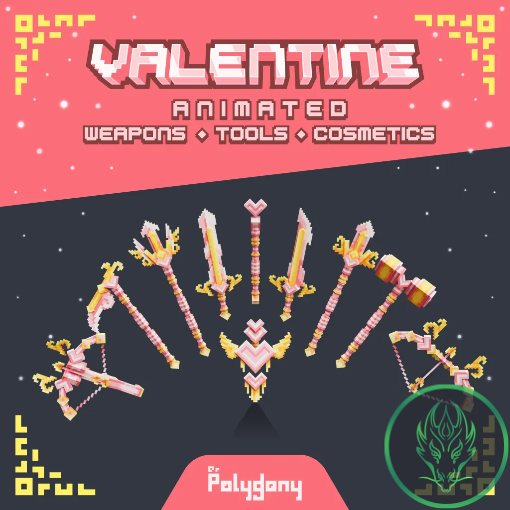 Valentine 2024 Animated Weapons And Tools Set Model reimagines weapons and tools with heart motifs, glowing effects, and whimsical animations. It’s perfect for games or 3D environments that want to celebrate Valentine’s Day with a mix of love and battle-ready flair.