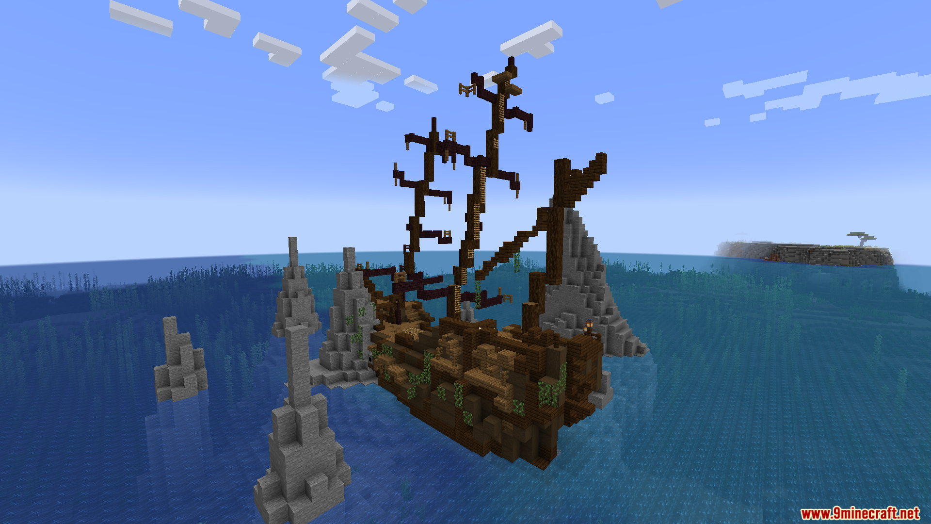- Shipwreck structures generate with treasure similar to pirate ships.