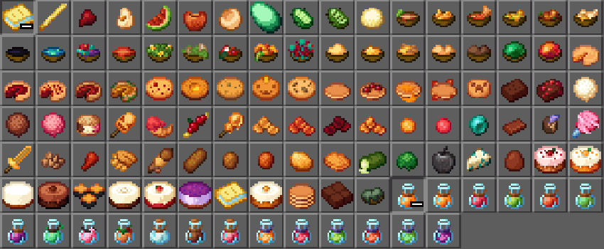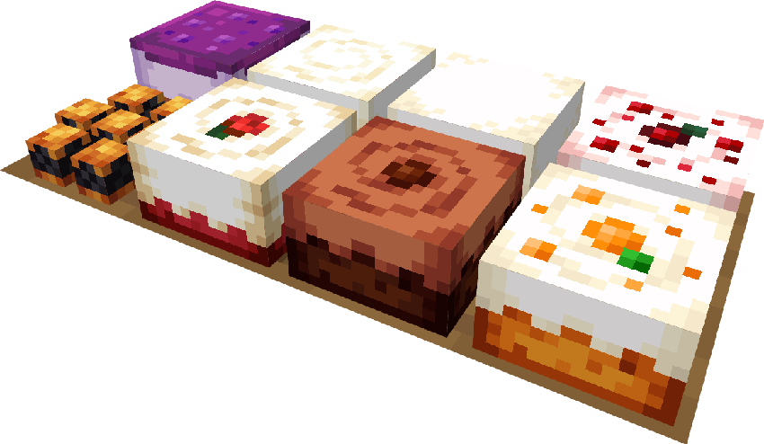 Vanilla Cookbook Addon (1.21) adds over 100 new dishes and 8 types of pastries based on available ingredients. Pancake stacks and brownie trays are designed to be placed directly on surfaces. Some foods, such as milk bottles, cheese, stuffed melon, and cheesecake, have the ability to remove similar potion effects as milk. These additions increase the number of foods and pastries available.