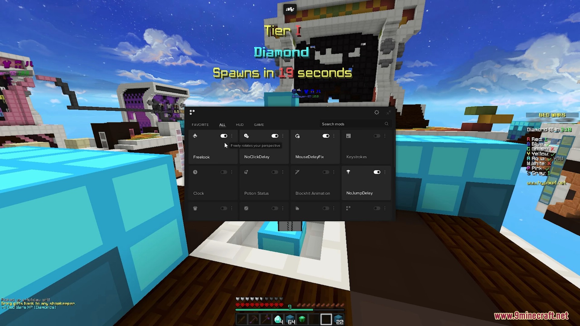 - Utility mods (such as keystrokes display, FPS improvements, text-based GUI)