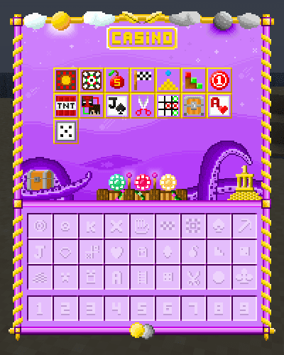 Vegas GUI Texture Pack (1.21) changes the skins like menu, shop, statistics, and many entertainments like roulette, darts, drums or card games.