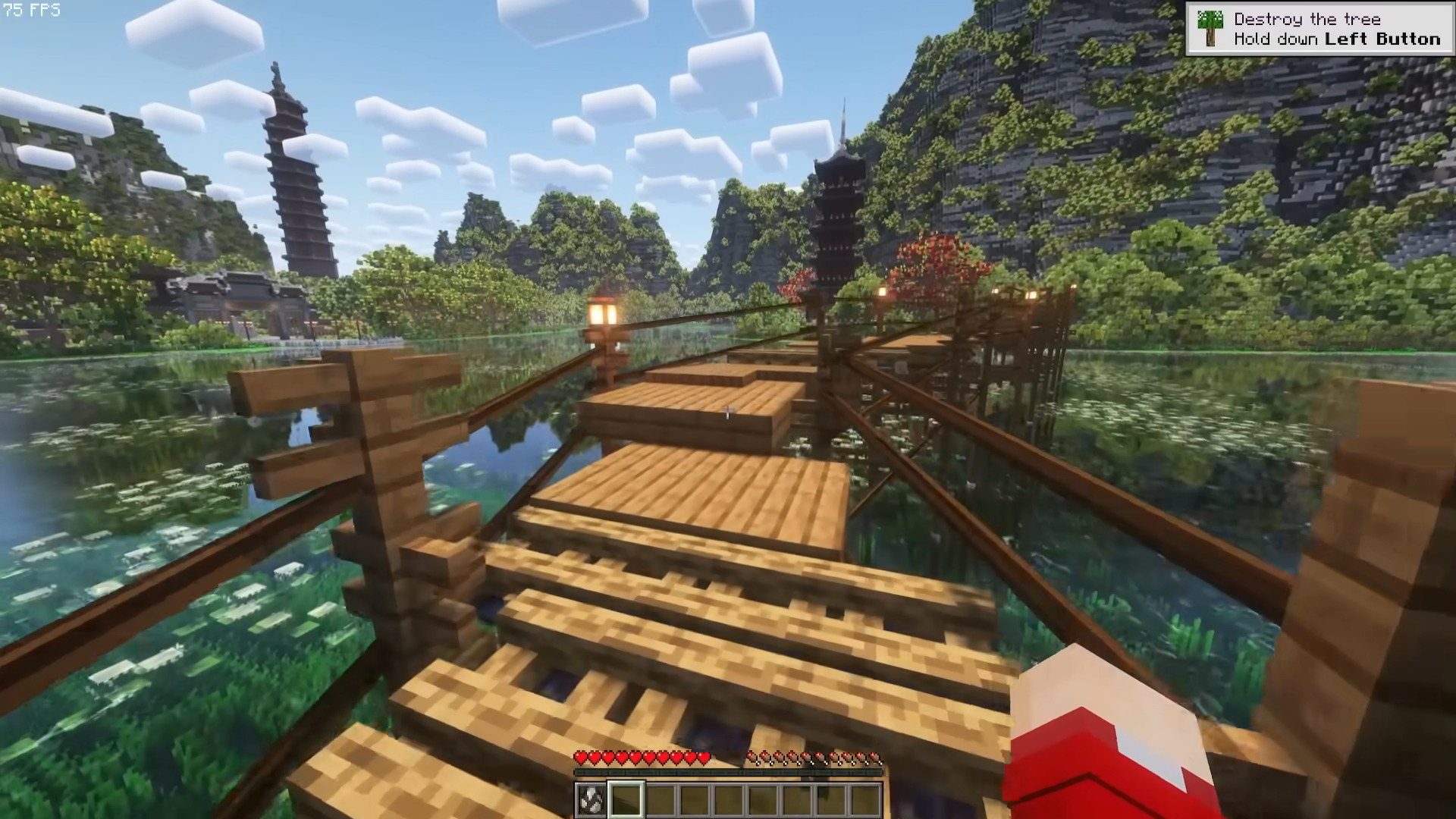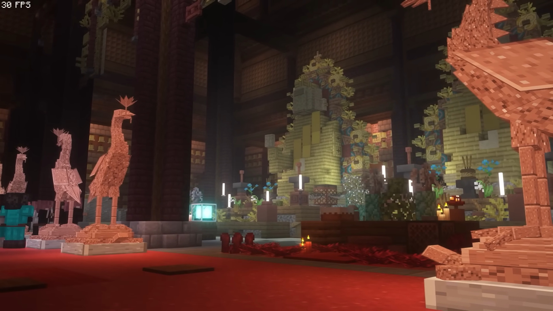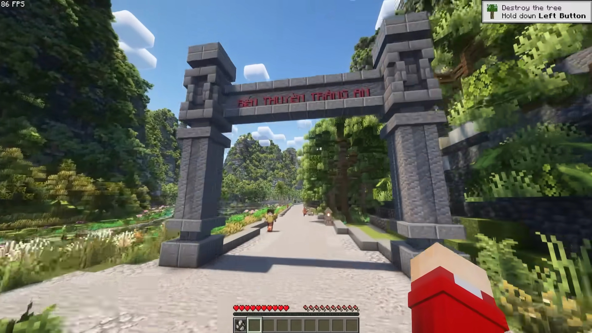 The exploration journey took viewers through many well-known locations in Ninh Bình, such as Múa Cave, Ngọa Long Mountain, the Tràng An Scenic Landscape Complex, lotus lakes, and Bái Đính Pagoda. The Vietnamese team also boldly used custom items-most notably decorative lamp posts that do not exist in vanilla Minecraft-to create a distinct impression of Vietnamese culture.