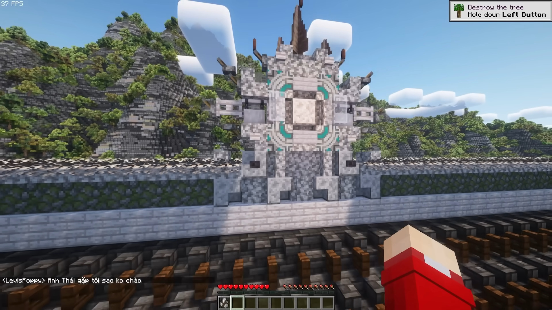 The first stop was the Vũ Lâm Royal Palace, which left a strong impression thanks to its colors and layout. MrBeast paid special attention to the lantern system-custom items added by the Vietnamese team to the map, even though they do not exist in the original Minecraft version. According to him, this demonstrated a serious level of investment, where not only the scale but even the smallest details were carefully crafted.