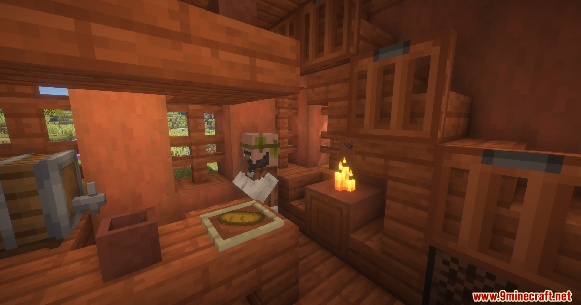 Village Taverns RPG Series Mod (1.21.1, 1.21) adds biome-themed tavern buildings to villages, complete with cozy interiors and a new bartender villager who sells food and potions.