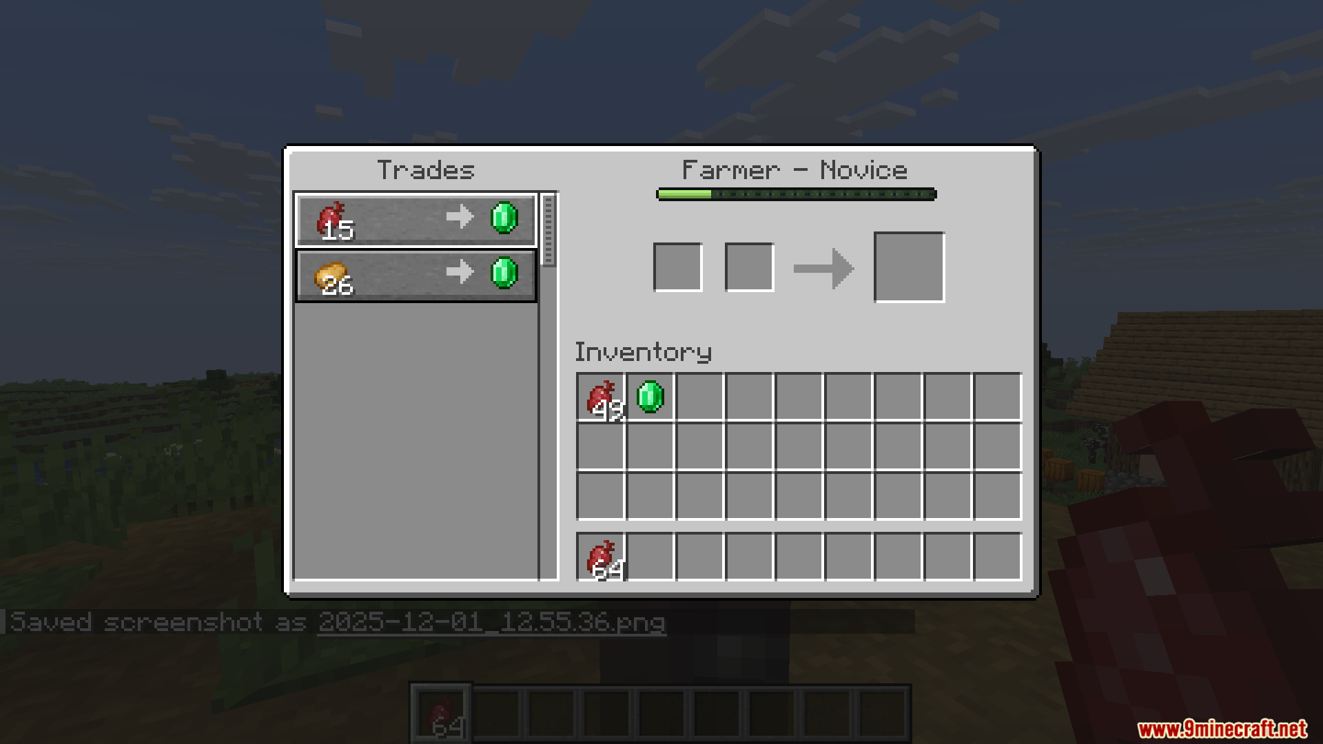 Villager Trading Plus Mod (1.21.10, 1.20.1) enables one-click trading with Villagers. It changes the villager trading interface to allow faster and bulk trades.