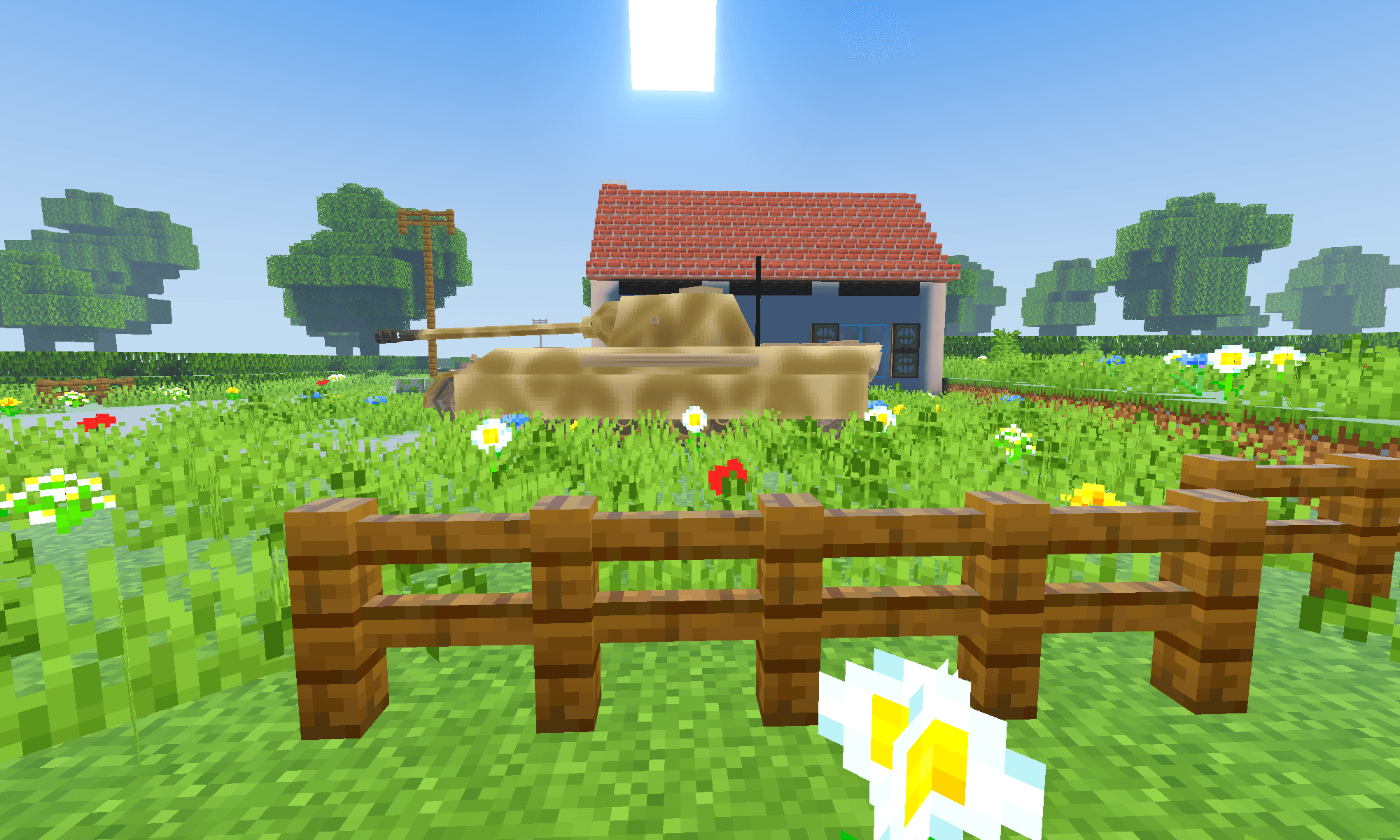 Warblocks Warthunder Addon (1.21) adds ground and air combat vehicles. The system features 17 types of vehicles and aircraft with realistic controls and movements. Content includes 10 tanks and 7 armed aircraft for combat use.