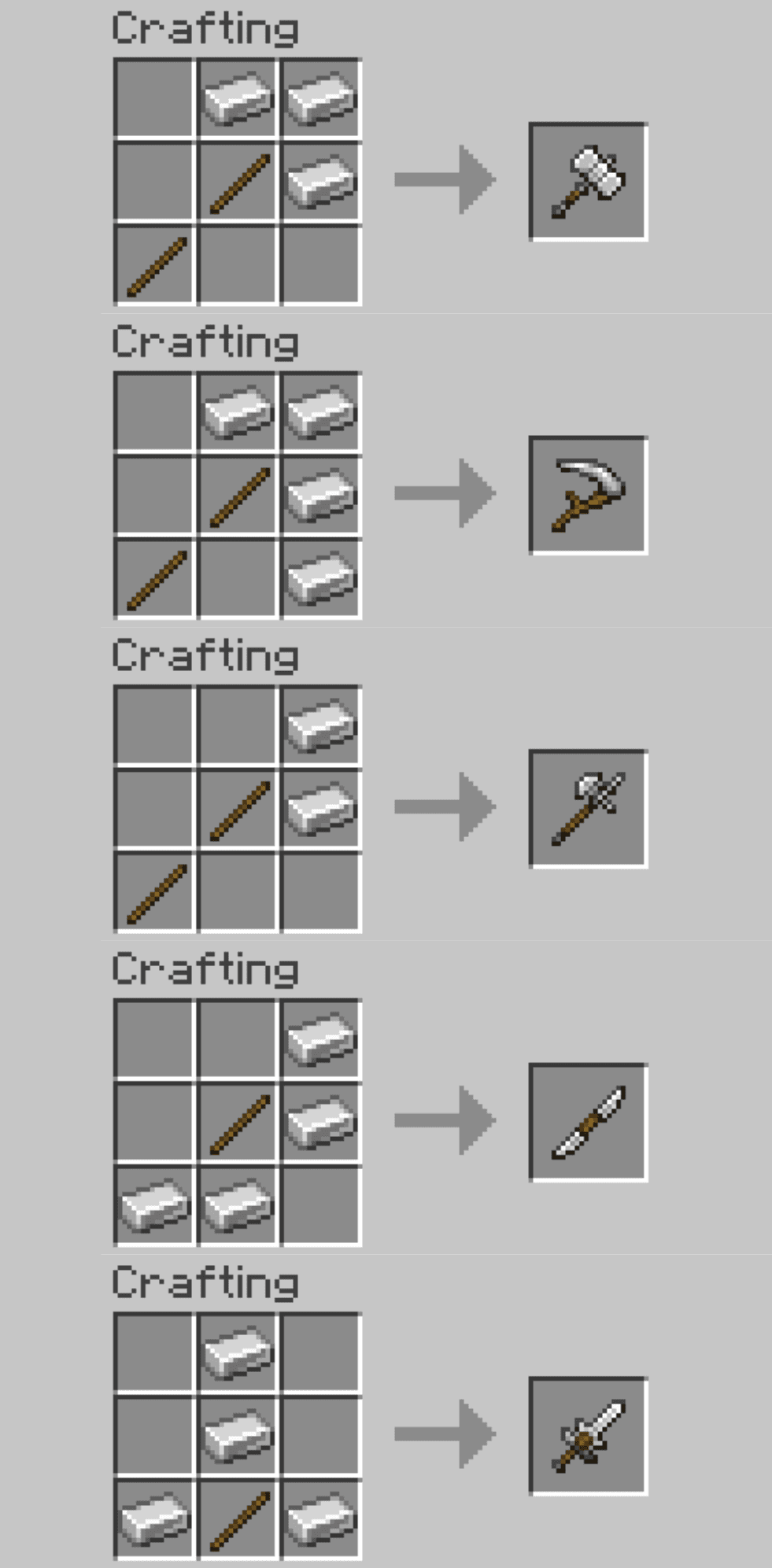 Weaponworks Mod (1.20.4, 1.20.1) adds five new weapon types into the game. These are the Greatsword, Halbers, Scythe, Hammer and the Warglaive. All of these weapons come in all six vanilla weapon tiers – wood, stone, iron, gold, diamond and netherite. Let us take a look at these five weapons in detail.