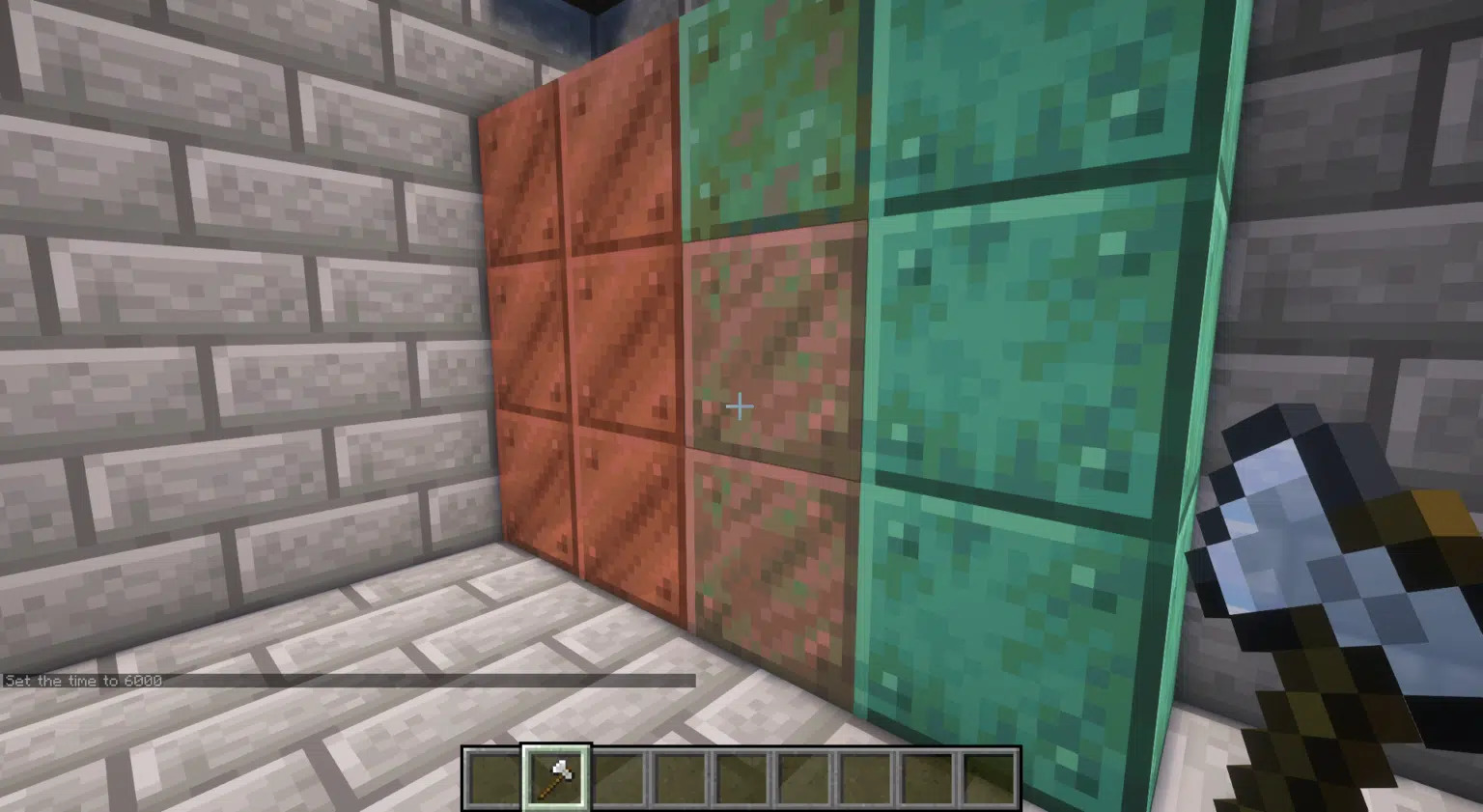 These blocks have a cool unique feature with them where they will oxidize if left out. The will slowly change from a bright orange to a dull green. If you’d rather not have your copper blocks oxidize you can wax them, but we’ll talk about this later.