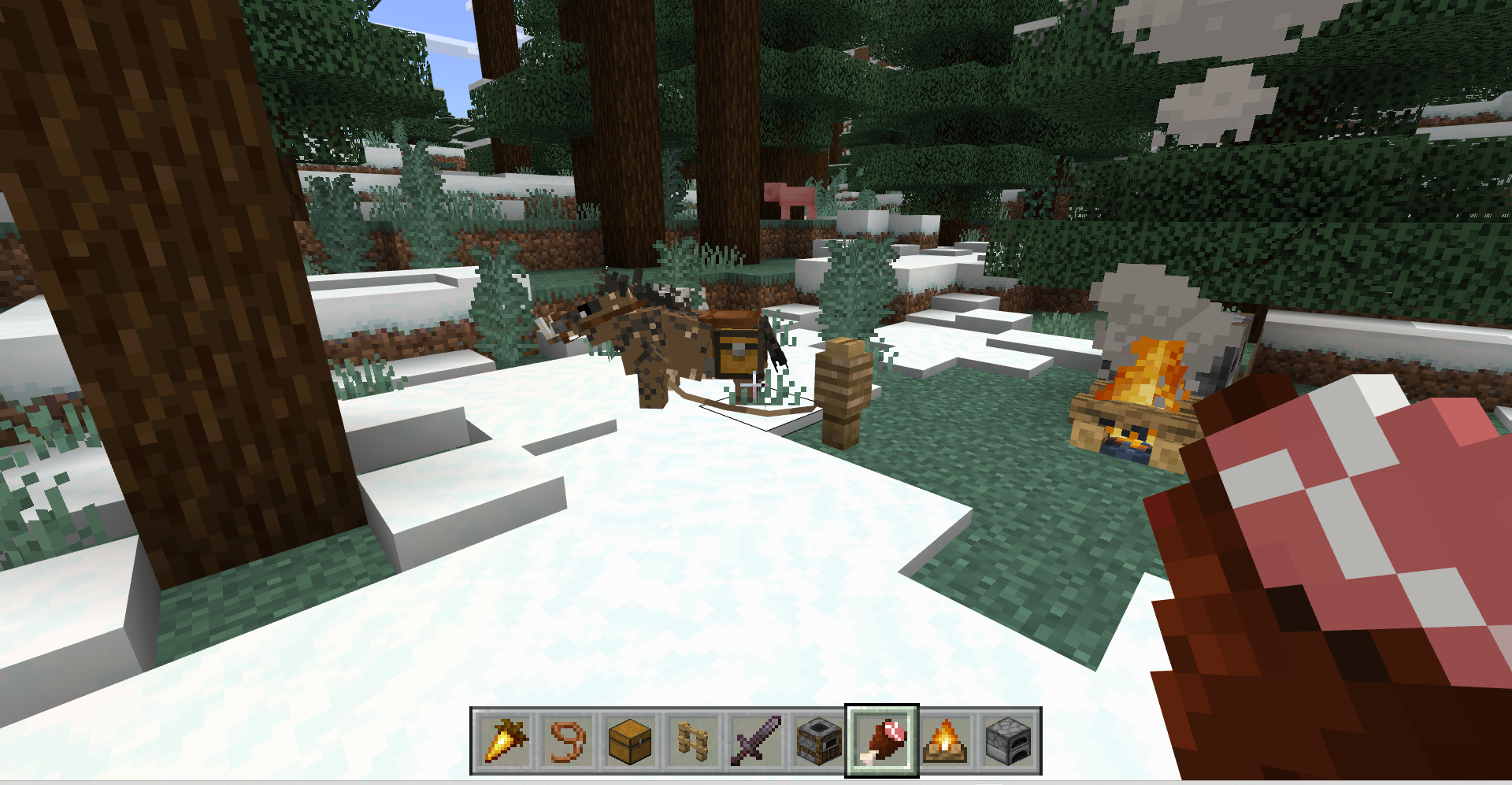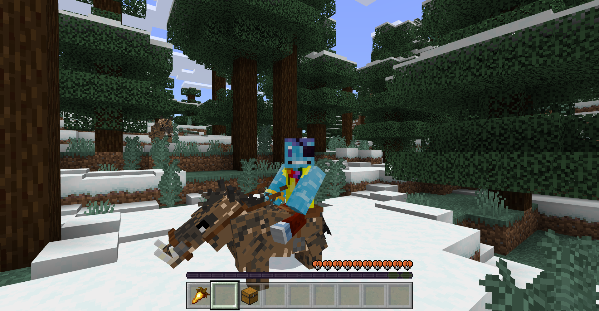 Wild Boar Addon (1.21, 1.20) adds wild boars that appear in cold, grassy regions. These animals can be ridden, saddled, and have chests attached to store items. Wild boars breed by eating potatoes, carrots, or beets and can turn soil into mud. The fur and tusks collected are used to craft armor that changes stats according to the climate, as well as weapons like spears or swords.