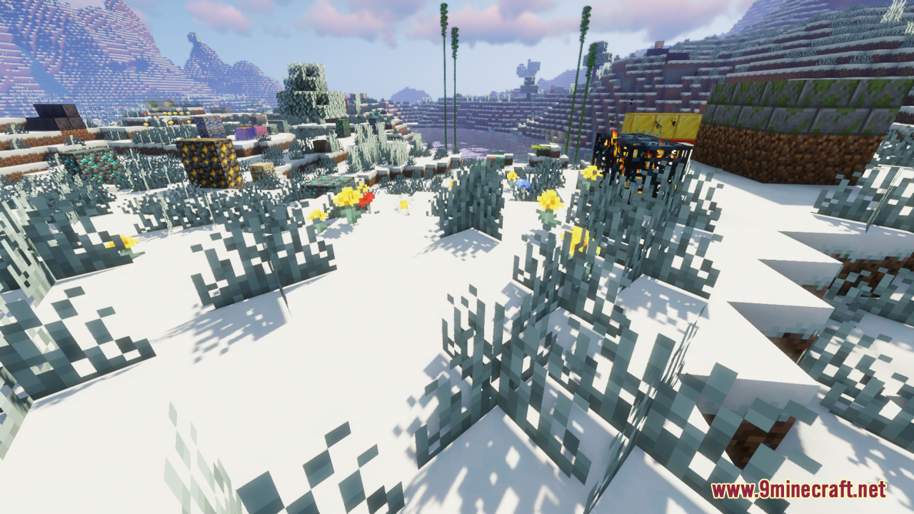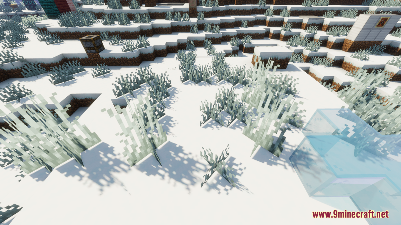 Winter Time Resource Pack (1.21.11, 1.20.1) is a winter-themed Minecraft resource pack that turns your world into a snowy wonderland by applying cold, wintry visuals to the environment. It recolors grass and foliage with white and blue hues, adds snow to saplings so trees look frost-covered, tweaks flowers and other plants to match the icy atmosphere, adjusts birch and spruce leaves to blend better with snow, and even gives water a more icy appearance for a cohesive winter vibe. It is perfect for players who want to evoke a peaceful seasonal or holiday feel in their world – especially for snowy builds, winter survival play, or festive landscapes without changing core gameplay.
