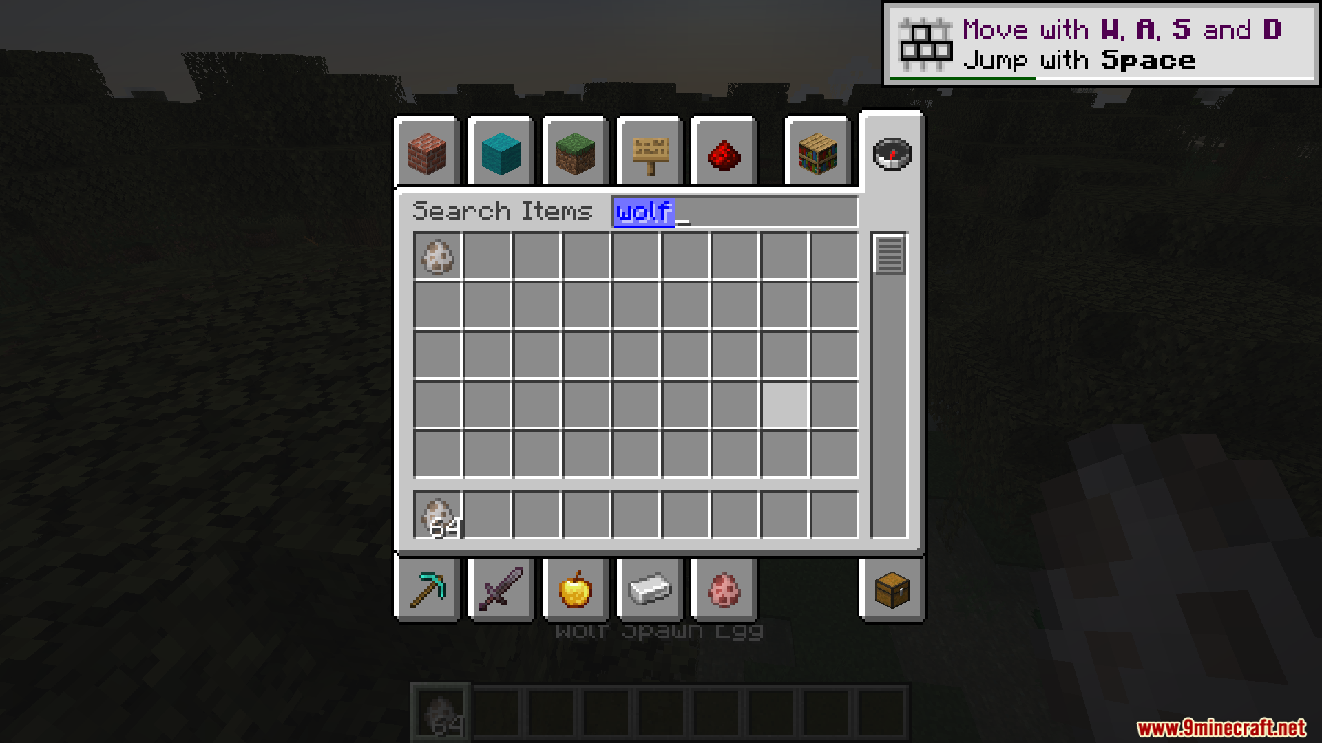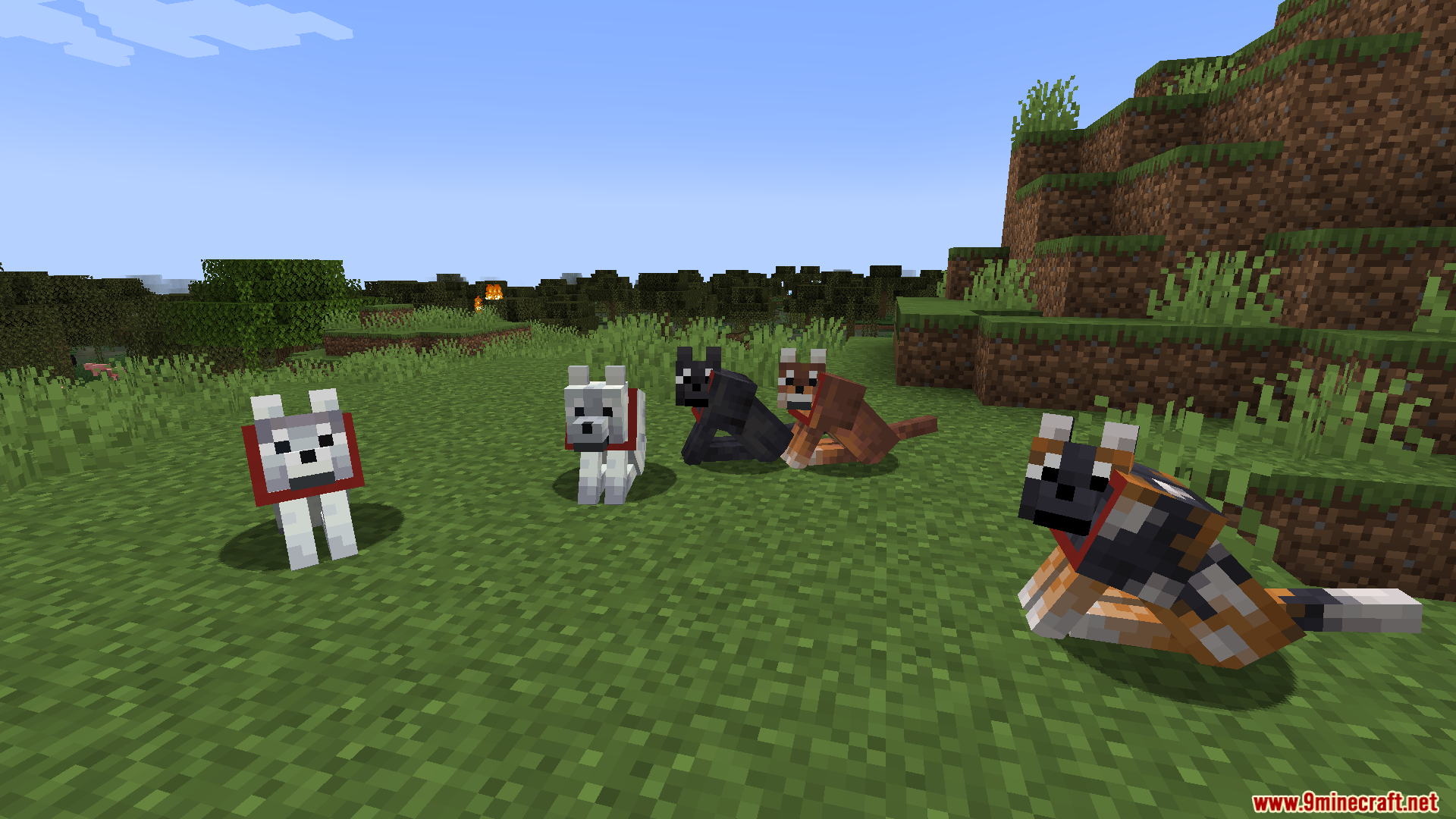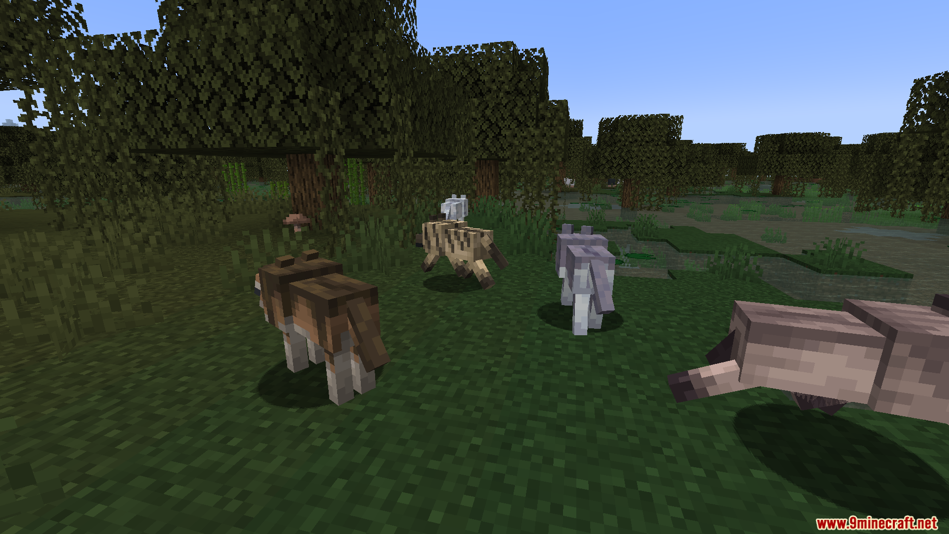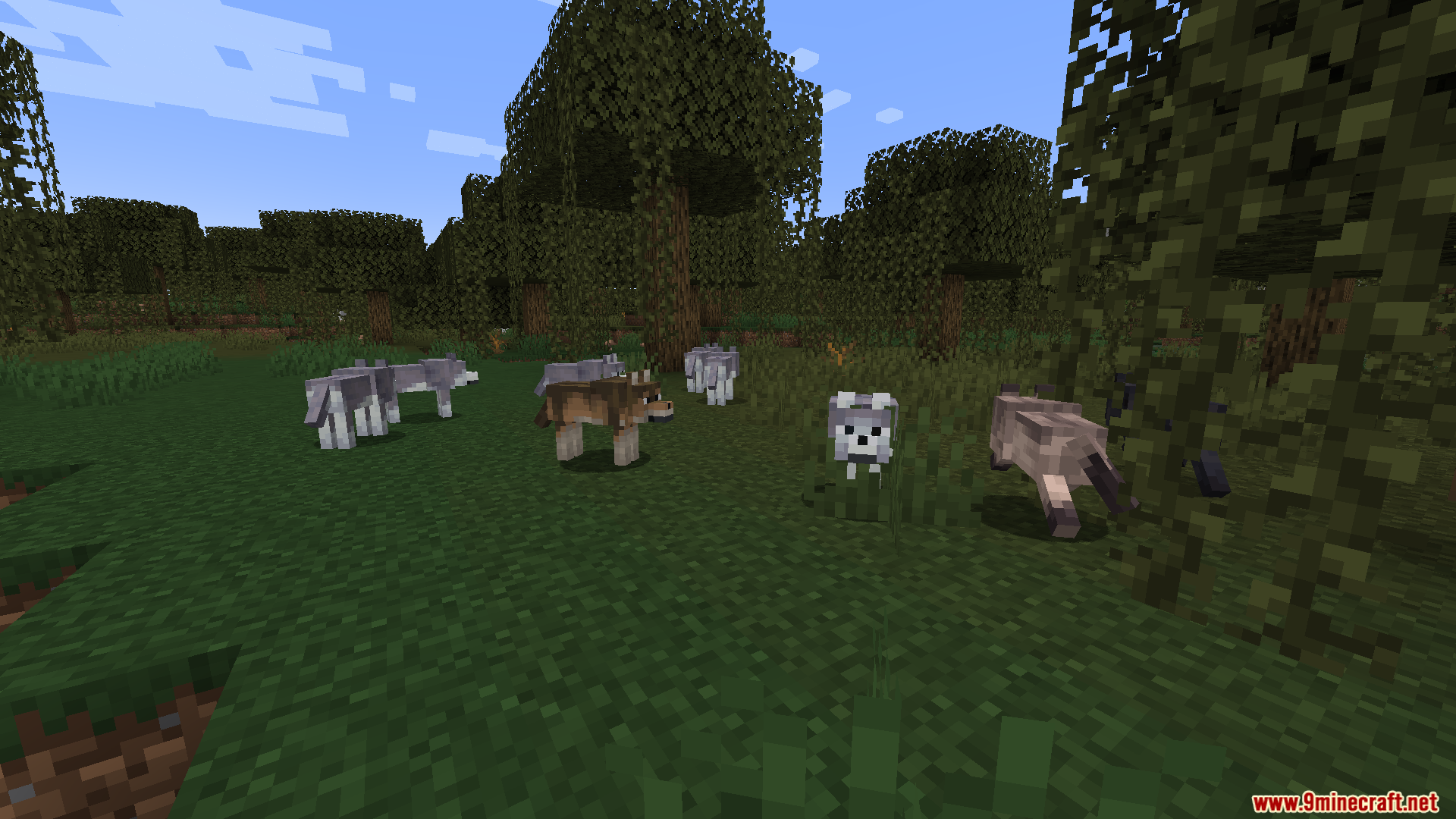 Wolf Port Mod (1.20.4, 1.20.1) replaces the classic wolves with the nine new wolf variants introduced in snapshot 24w10a+. It also increases the health of tamed wolves, making them sturdier companions.