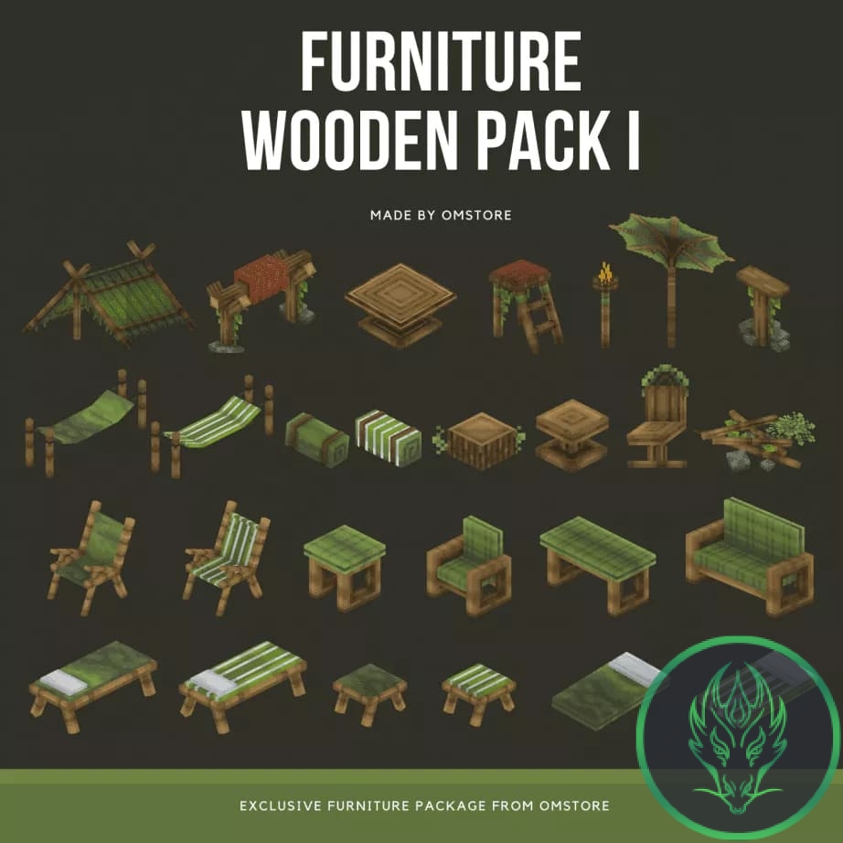 Wooden Pack Om 1 Model contains 28 furniture models that can be used as decorations, which comes with easy installation, just drag and drop.