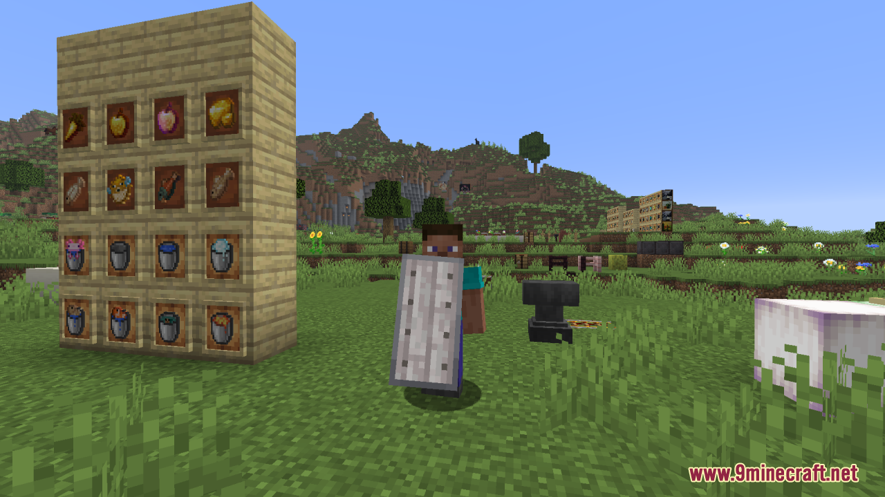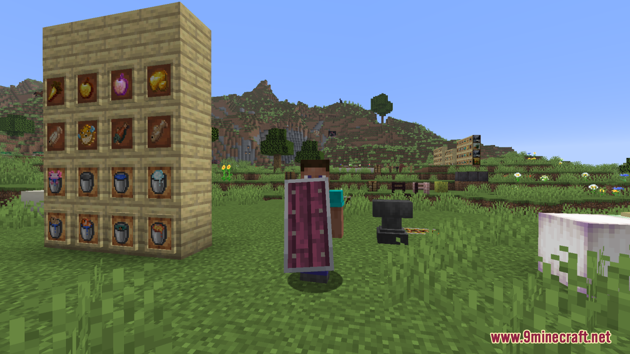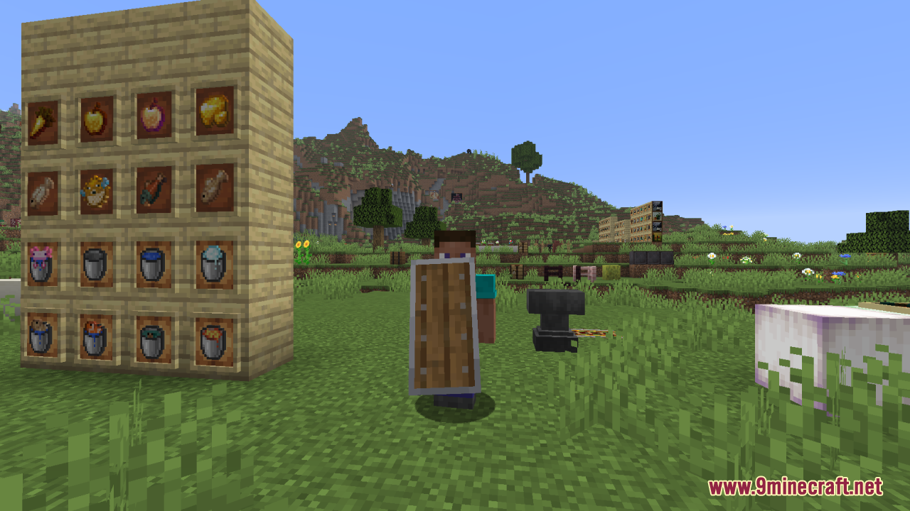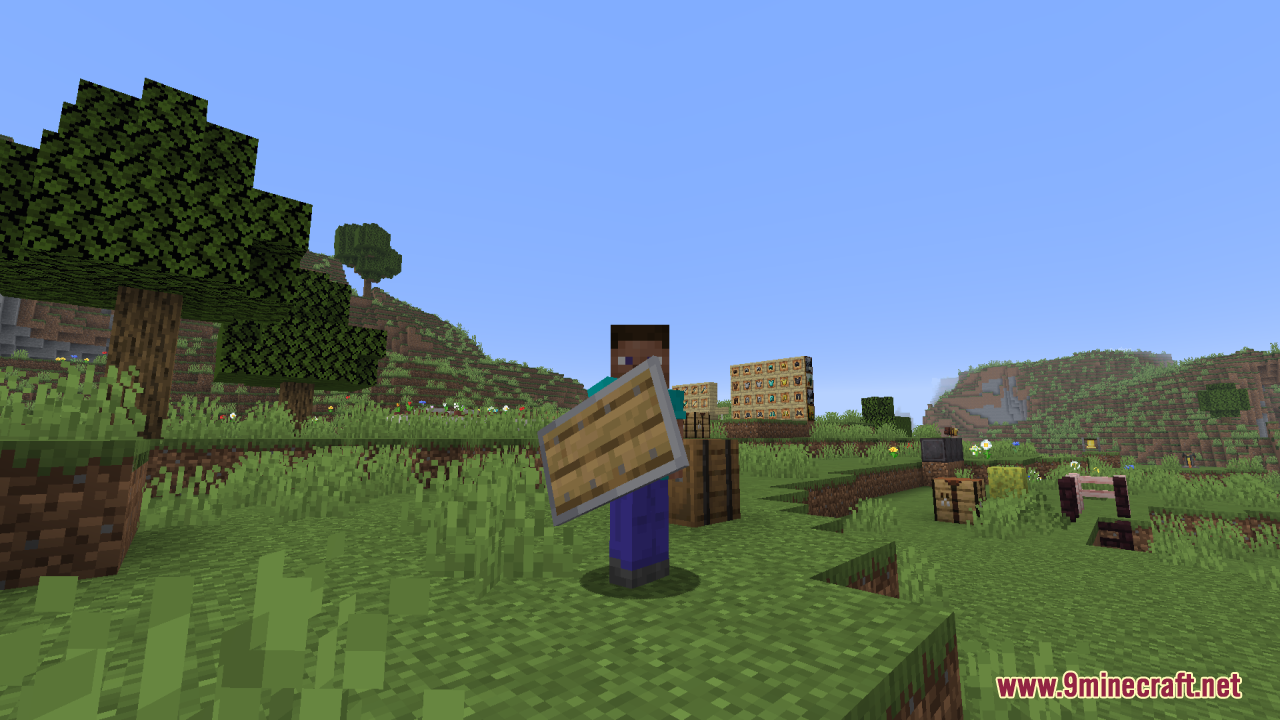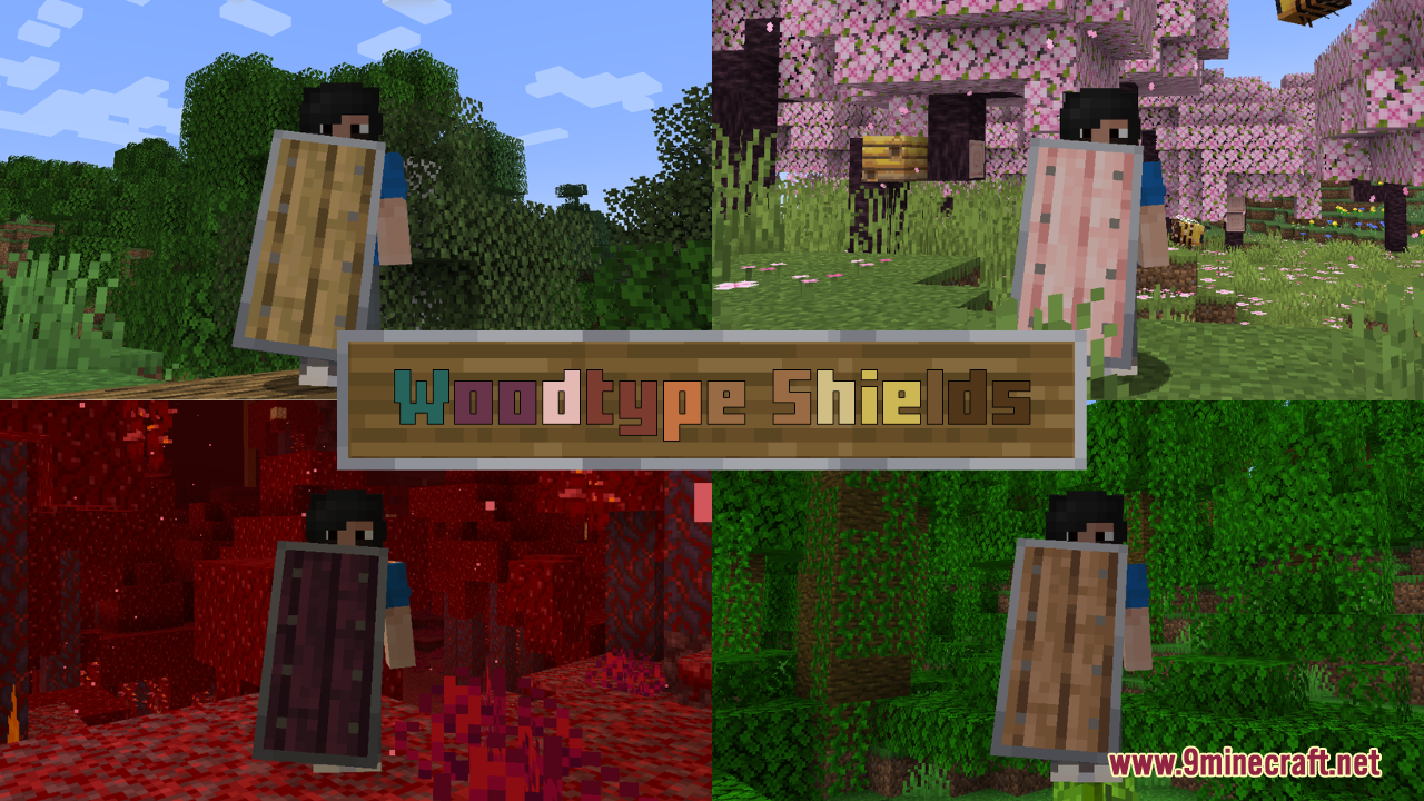 Woodtype Shields Resource Pack (1.21.10, 1.20.1) allows you to equip shields made from any wood type simply by renaming the shield in an anvil. The default “Oak Shield” is replaced visually, and when you rename a shield to “Birch Shield,” “Jungle Shield,” “Cherry Shield,” or any of the other supported wood types, the texture automatically updates to match that wood’s style. It also includes quality-of-life tweaks: the shield position is lowered in first-person view for better visibility, and no additional mods such as OptiFine or CIT Resewn are required when using Minecraft 1.21.5 or above. All in all, it’s an excellent pick for players or builders who value visual variety in their gear but don’t want to depart from Minecraft’s core style.