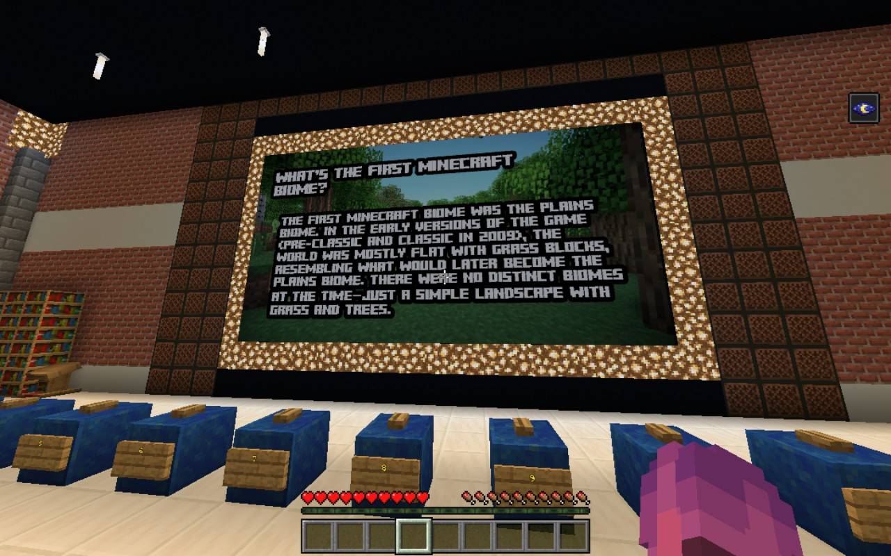 Working PowerPoint Presentation Creation Map (1.21, 1.20) has over 16 pages, designed to change content with the click of a button. Each page displays information such as the first block or the first biome in the game.