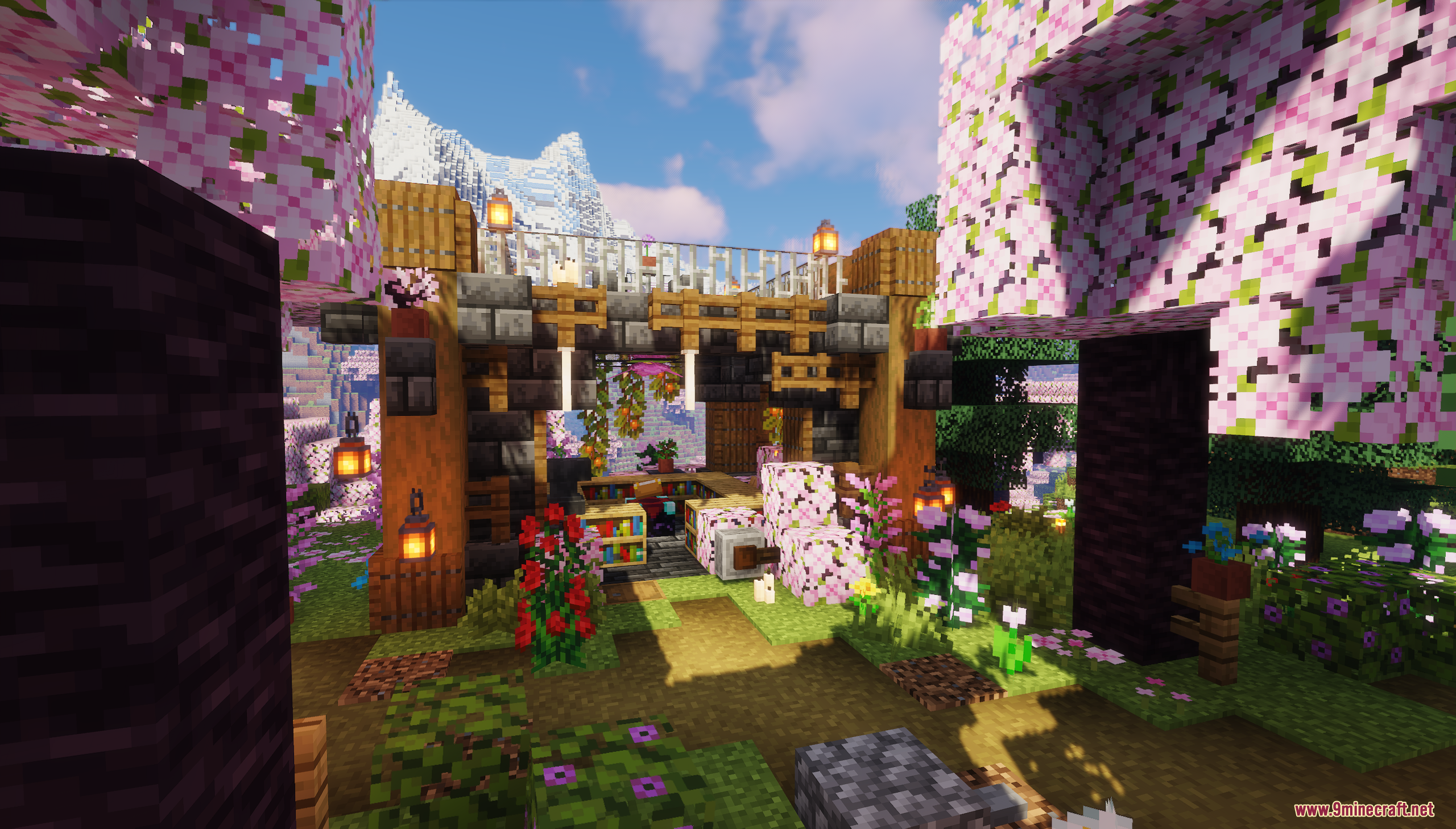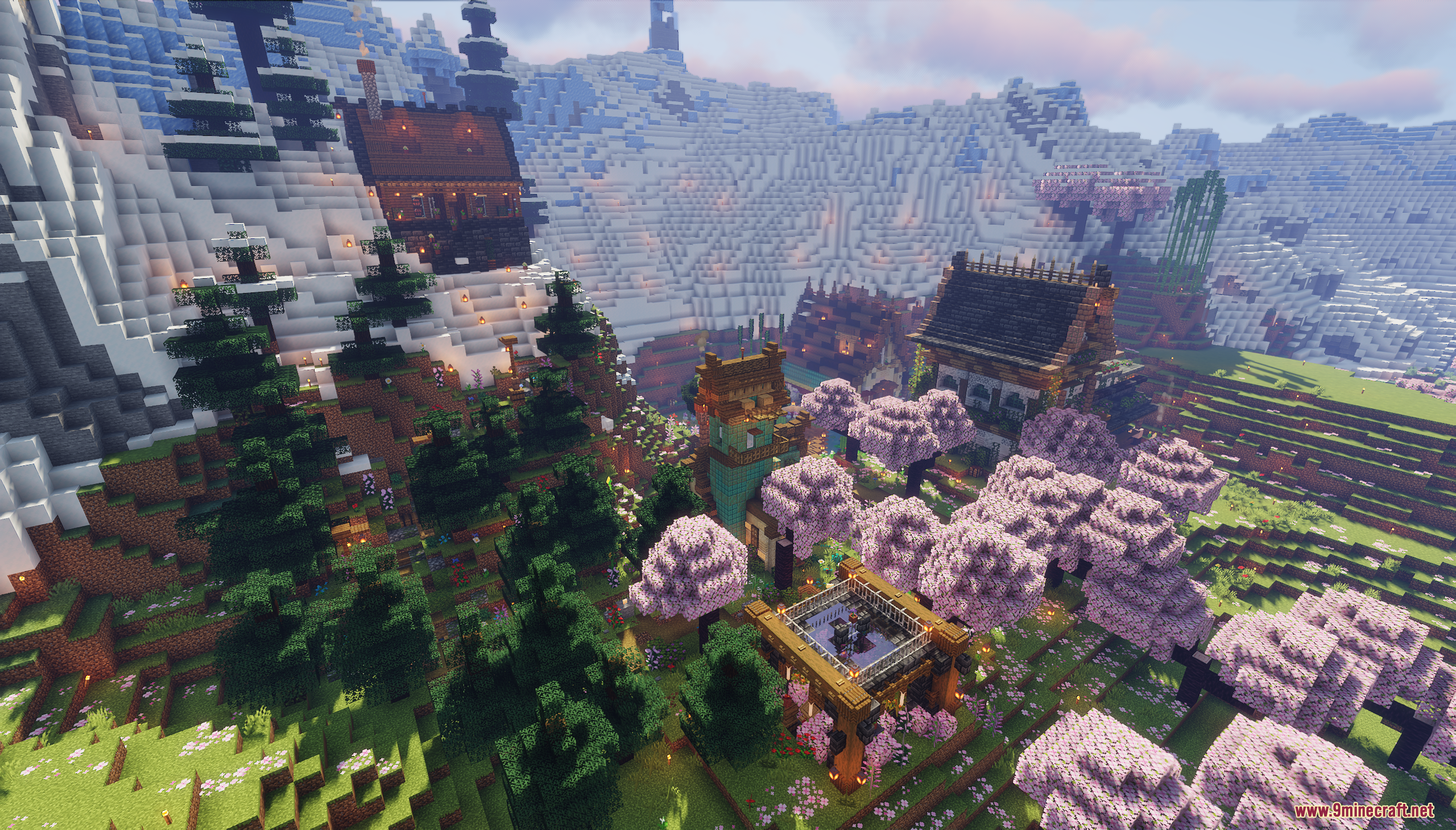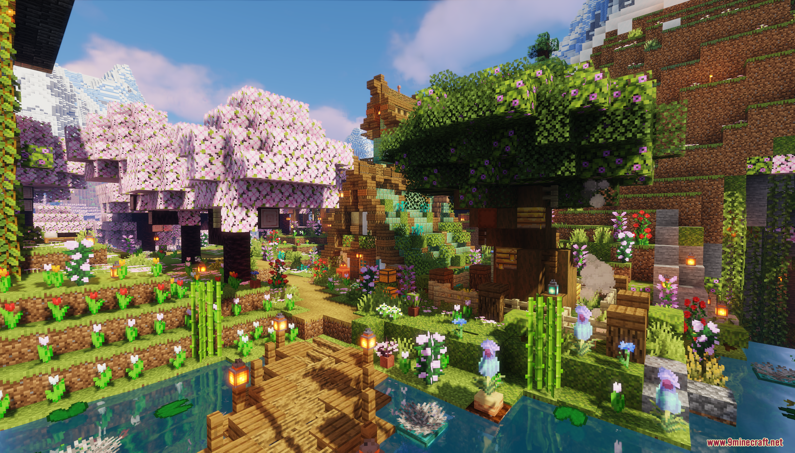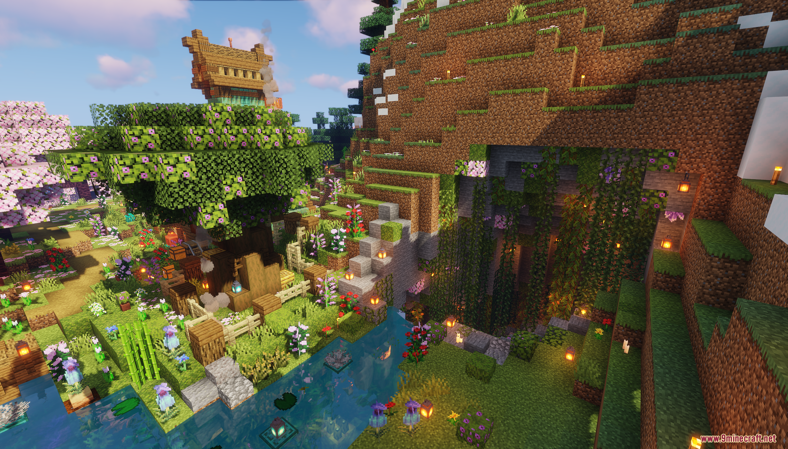 XiaoCraft Survival Town Map (1.21.11, 1.20.1) is a serene and beautifully detailed survival world that blends cozy architecture with vibrant natural scenery. Nestled among lush greenery, flowering trees, and gentle pathways, the town features warm wooden builds, decorative bridges, lantern-lit paths, and thoughtfully placed details that make every corner feel alive. The environment feels calm and welcoming, perfect for slow exploration, continued survival play, or creative inspiration.