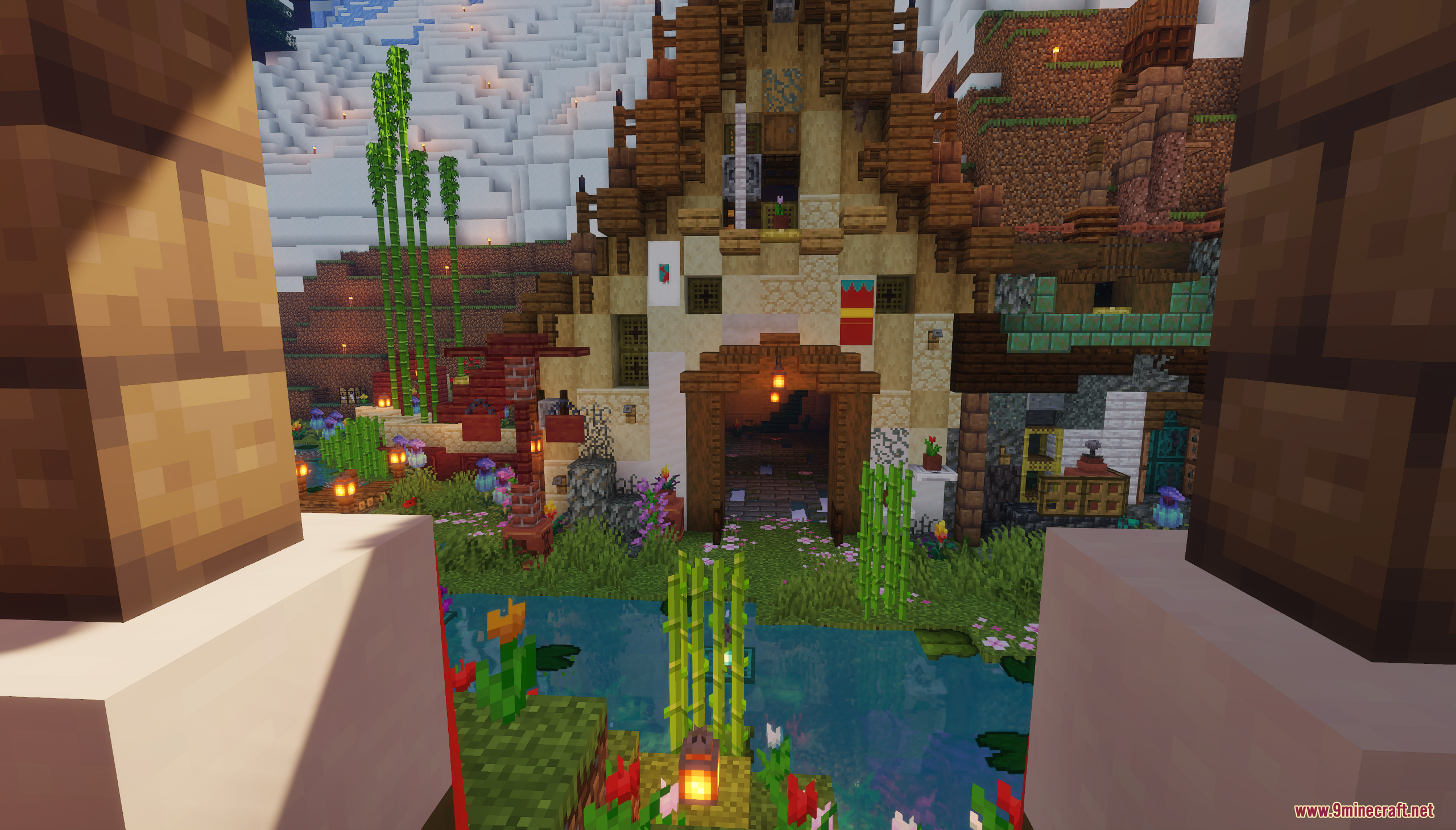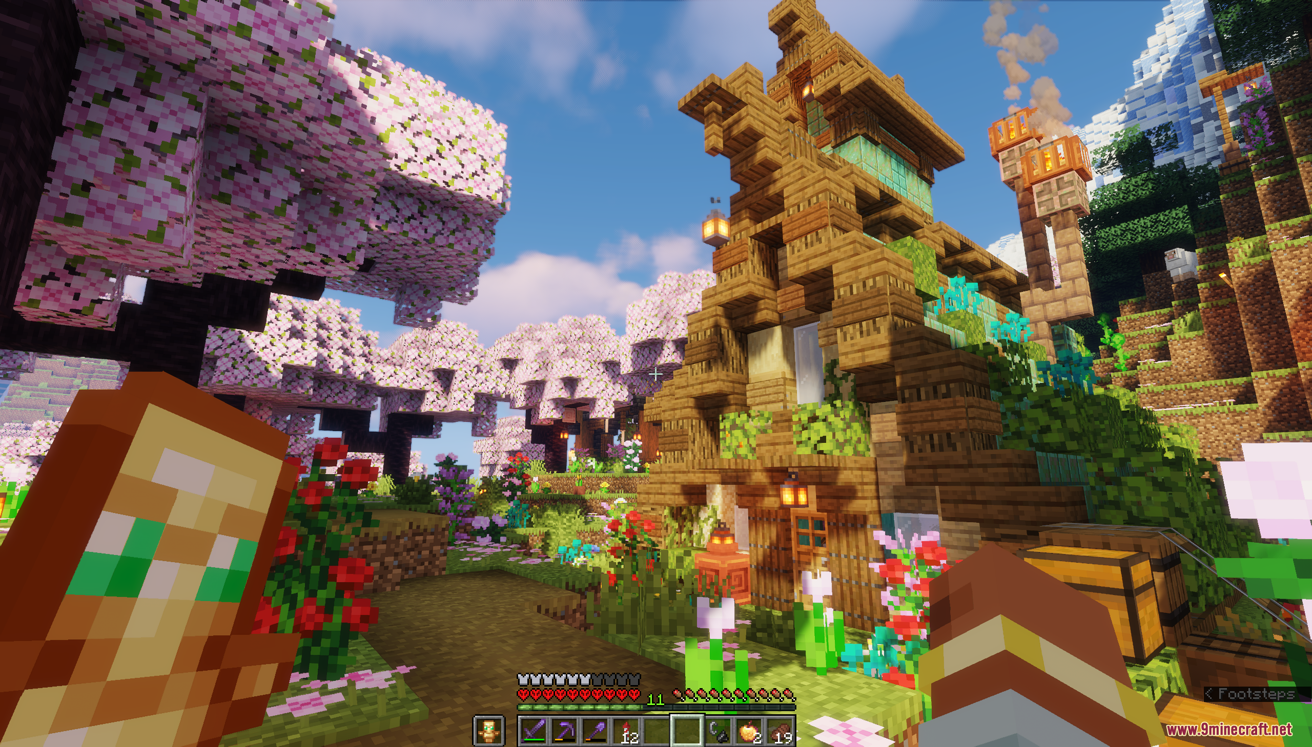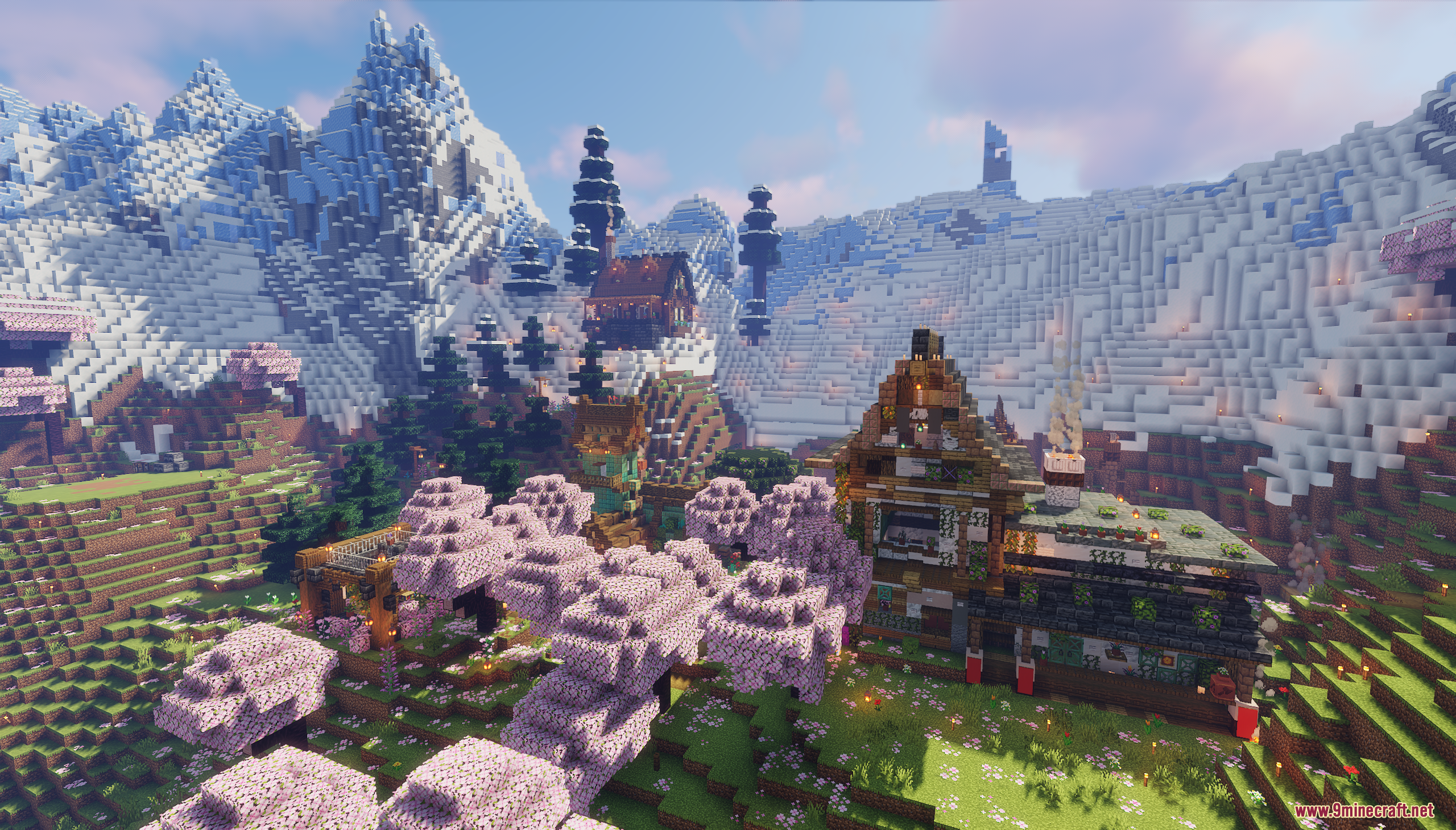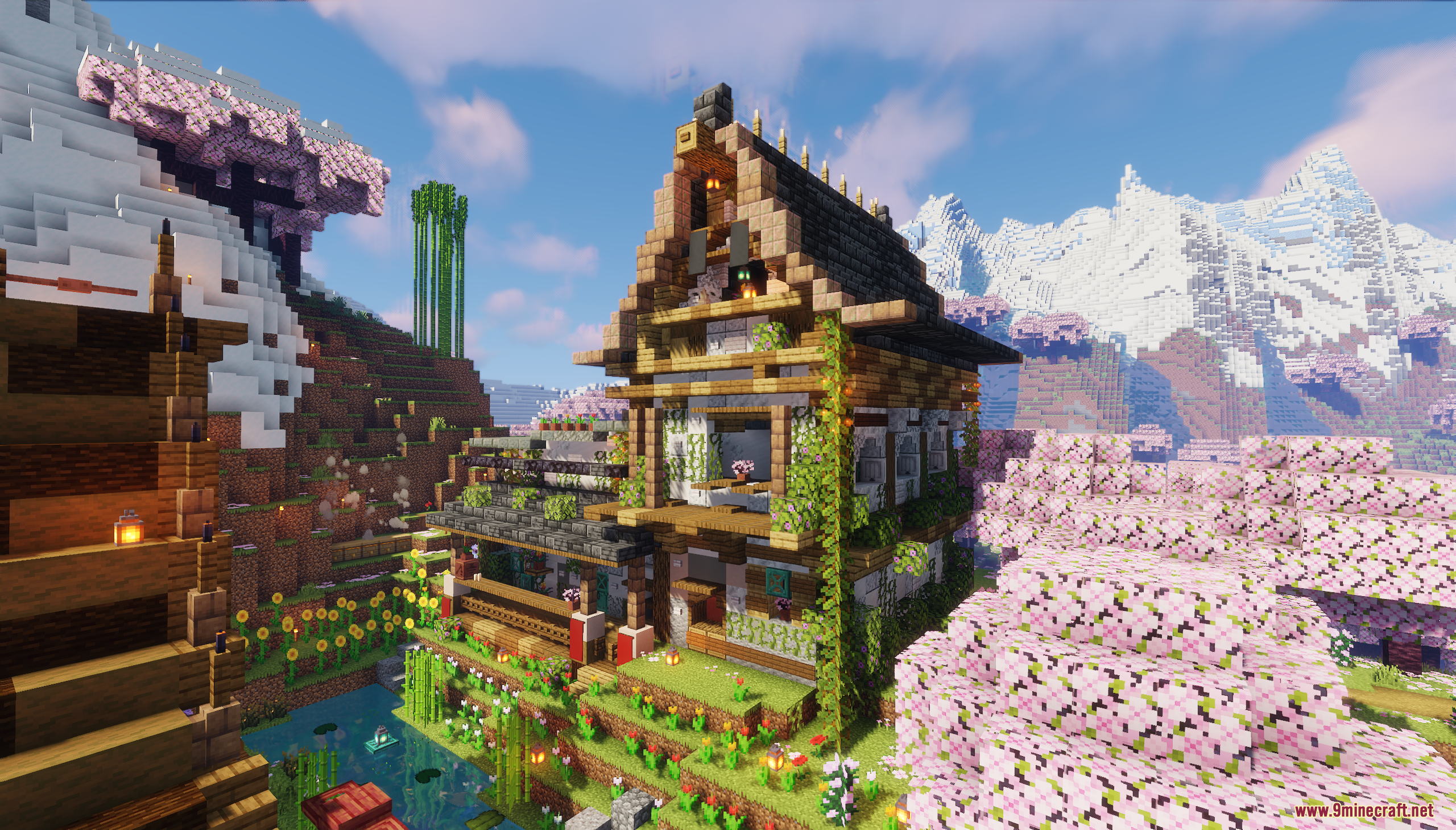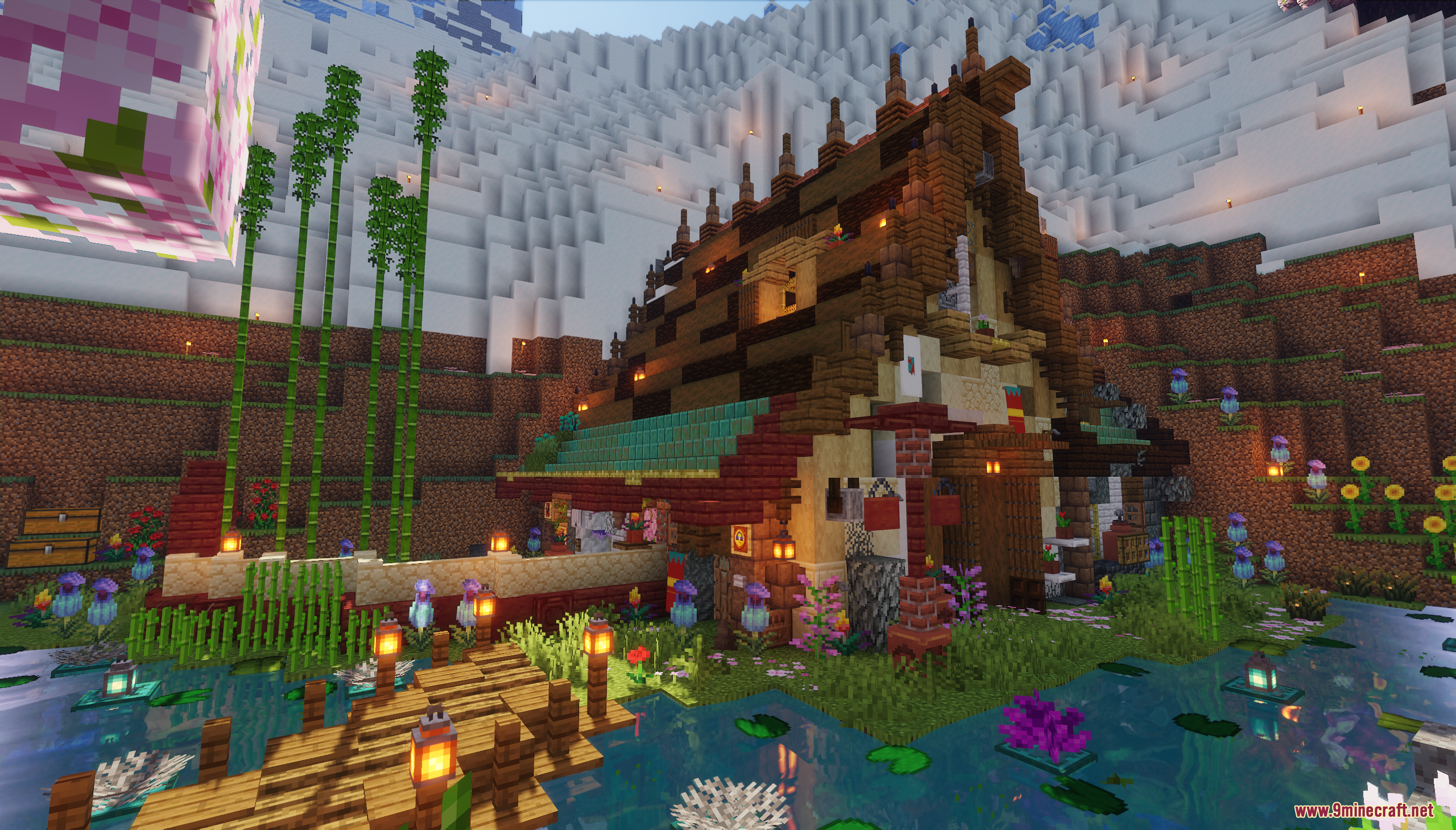 XiaoCraft Survival Town Map (1.21.11, 1.20.1) is a serene and beautifully detailed survival world that blends cozy architecture with vibrant natural scenery. Nestled among lush greenery, flowering trees, and gentle pathways, the town features warm wooden builds, decorative bridges, lantern-lit paths, and thoughtfully placed details that make every corner feel alive. The environment feels calm and welcoming, perfect for slow exploration, continued survival play, or creative inspiration.