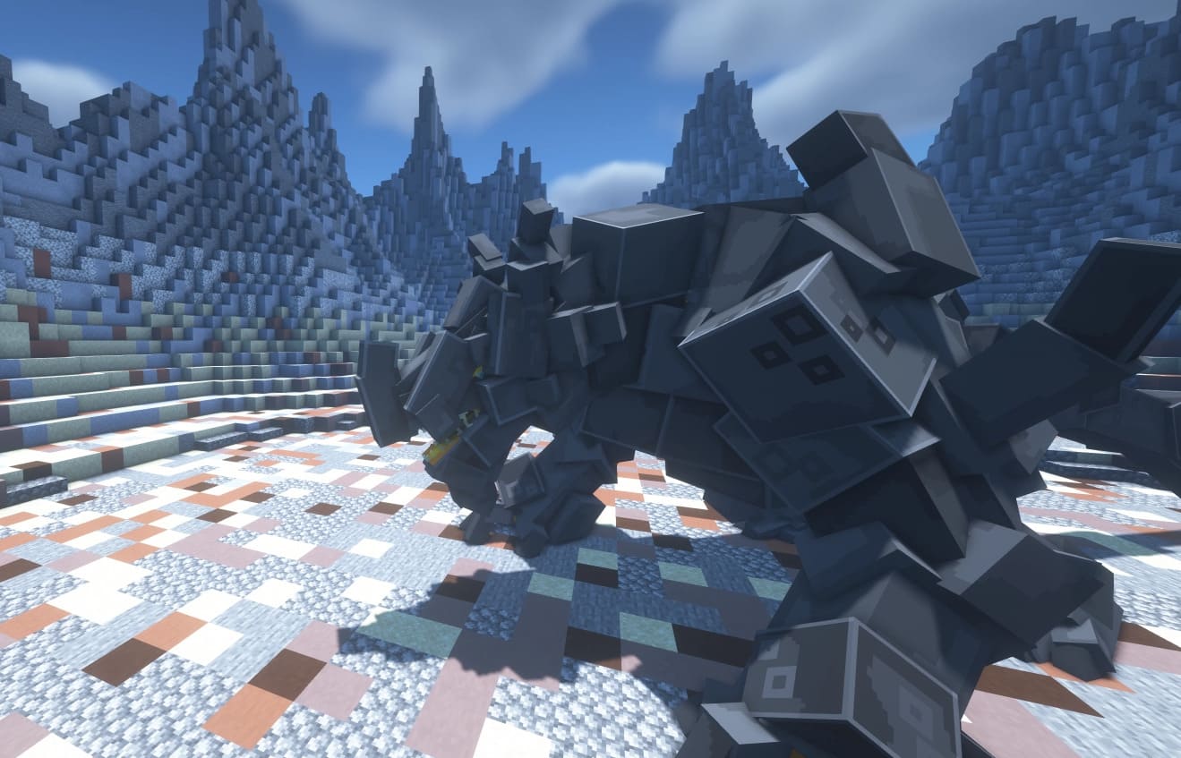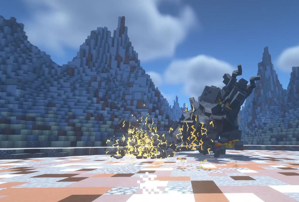Xiddri will have increased defense against all attacks. Breaking the stone armor on its limbs and body will expose the corresponding body part, and attacks on exposed parts will deal increased damage. Broken stone armor leaves stone fragments on the ground, which can be mined with a pickaxe.
